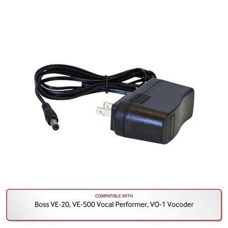 This 9V Power Supply is compatible with the Boss VE-20, VE-500 Vocal Performer, and VO-1 Vocoder.