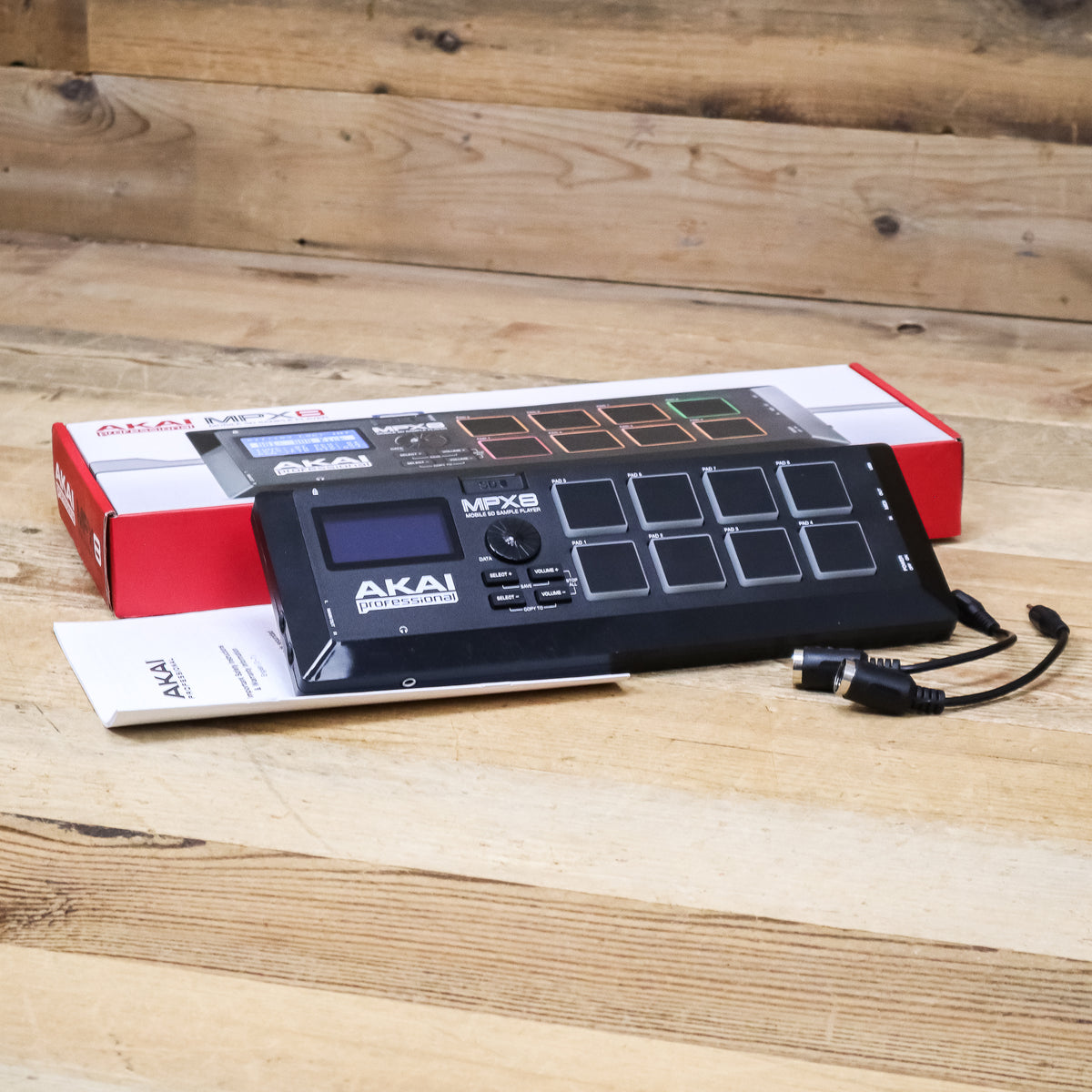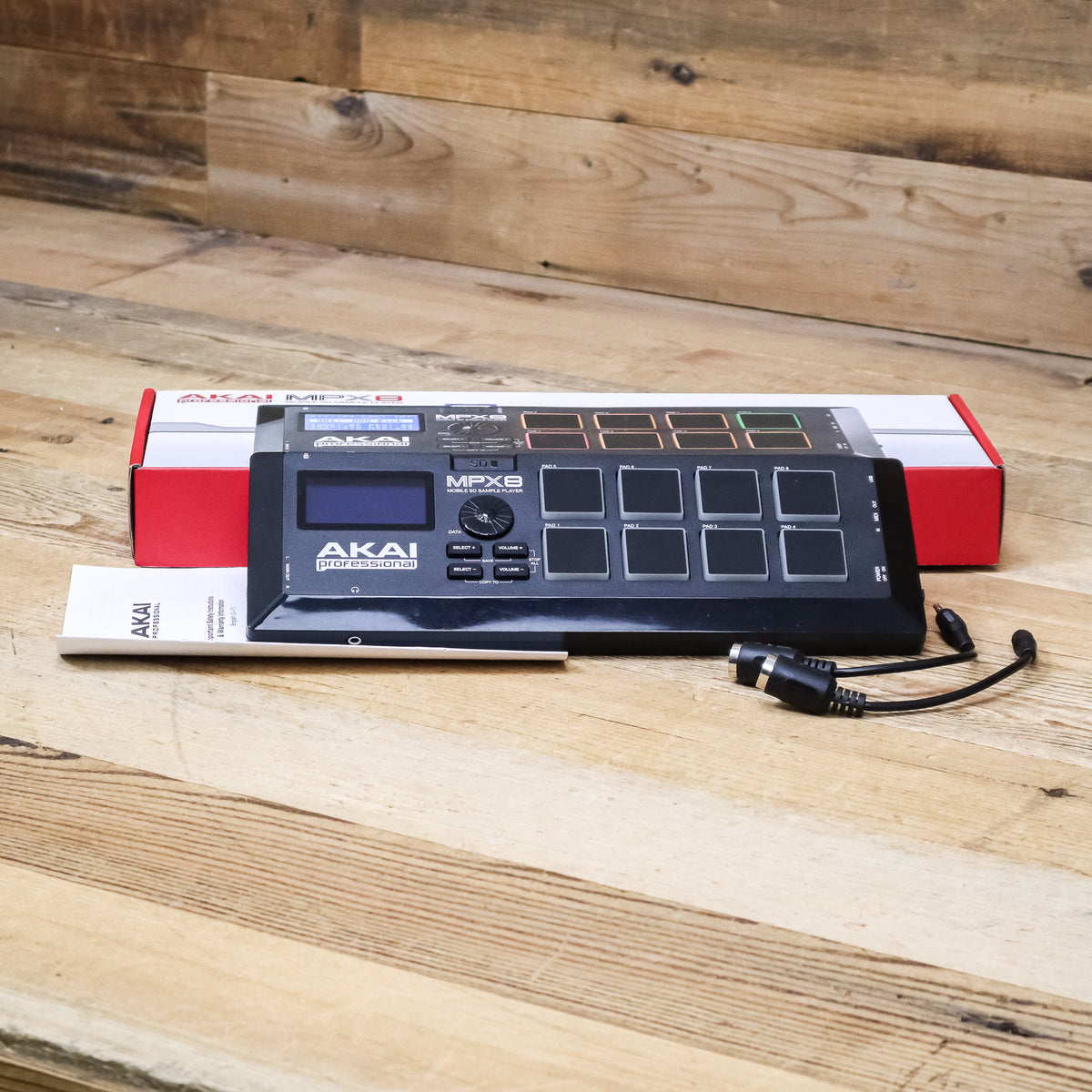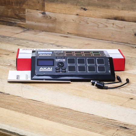 This used Akai MPX8 Mobile SD Sample Pad Controller comes with the Original Box, Safety Guide, and two (2) TRS to 5-pin MIDI Adapters.