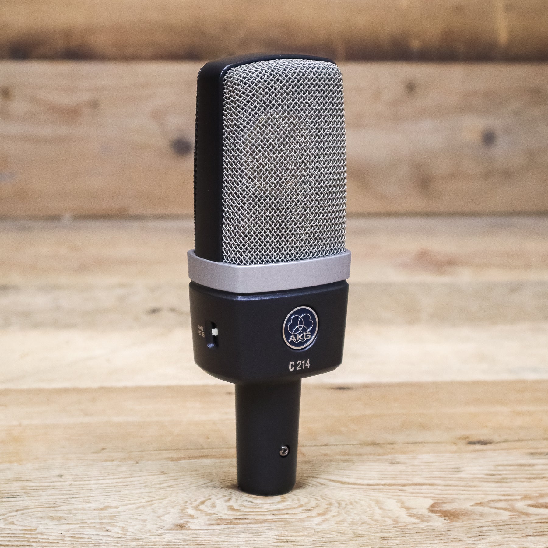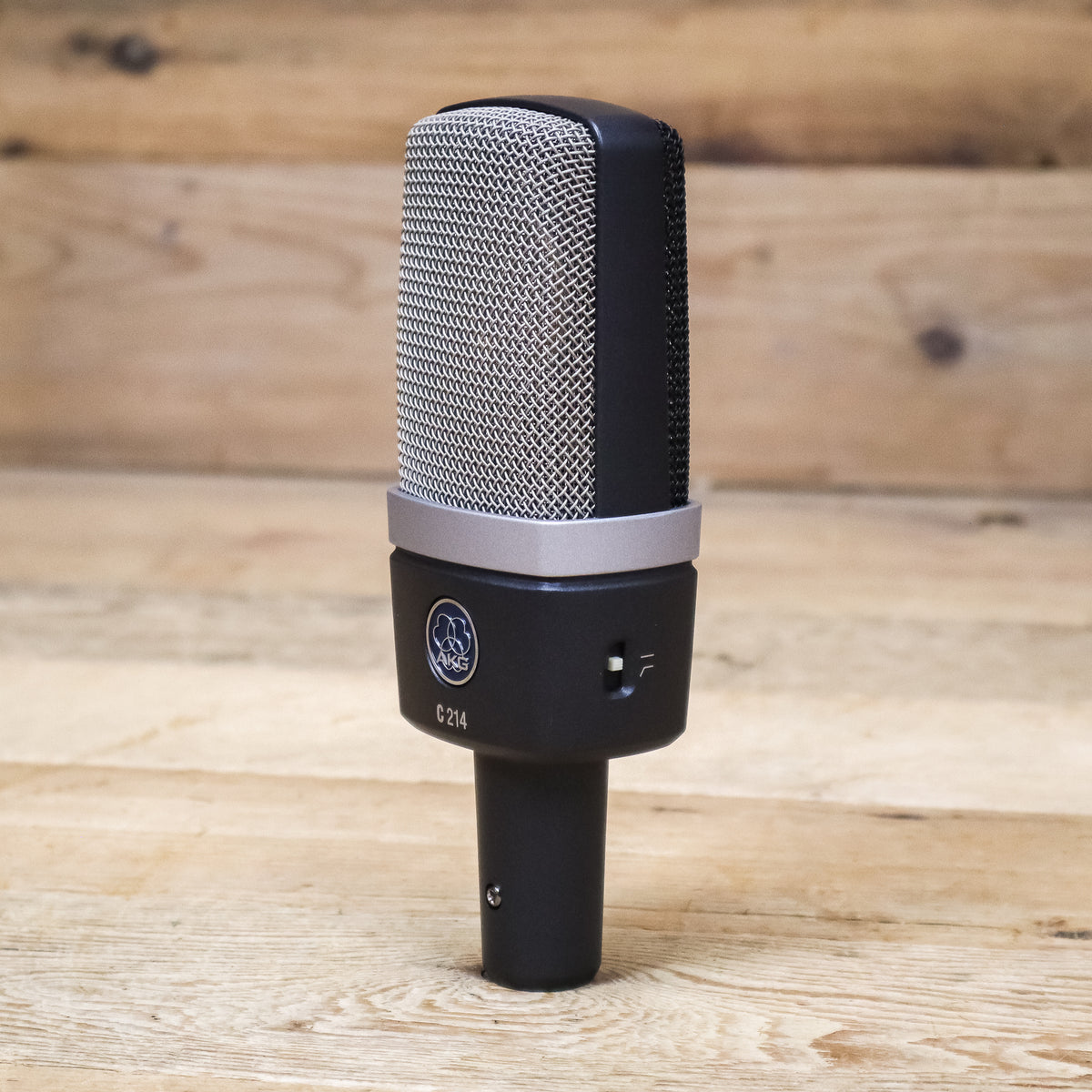 The C214 professional large-diaphragm condenser microphone has been designed as a cost-effective alternative to the high-end C414 family. Like the C414, the C214 offers a supreme one-inch capsule on an integrated suspension to reduce mechanical noise. A switchable 20dB attenuation pad allows recording of loud sources of up to 156dB SPL. A switchable bass-cut filter allows close-up recording with almost no proximity effect. The C214 captures sound by combining one capsule of the legendary C414 dual-capsule system and the patented AKG Back-Plate Technology, resulting in an outstanding performance close to the famous C414 XLII.