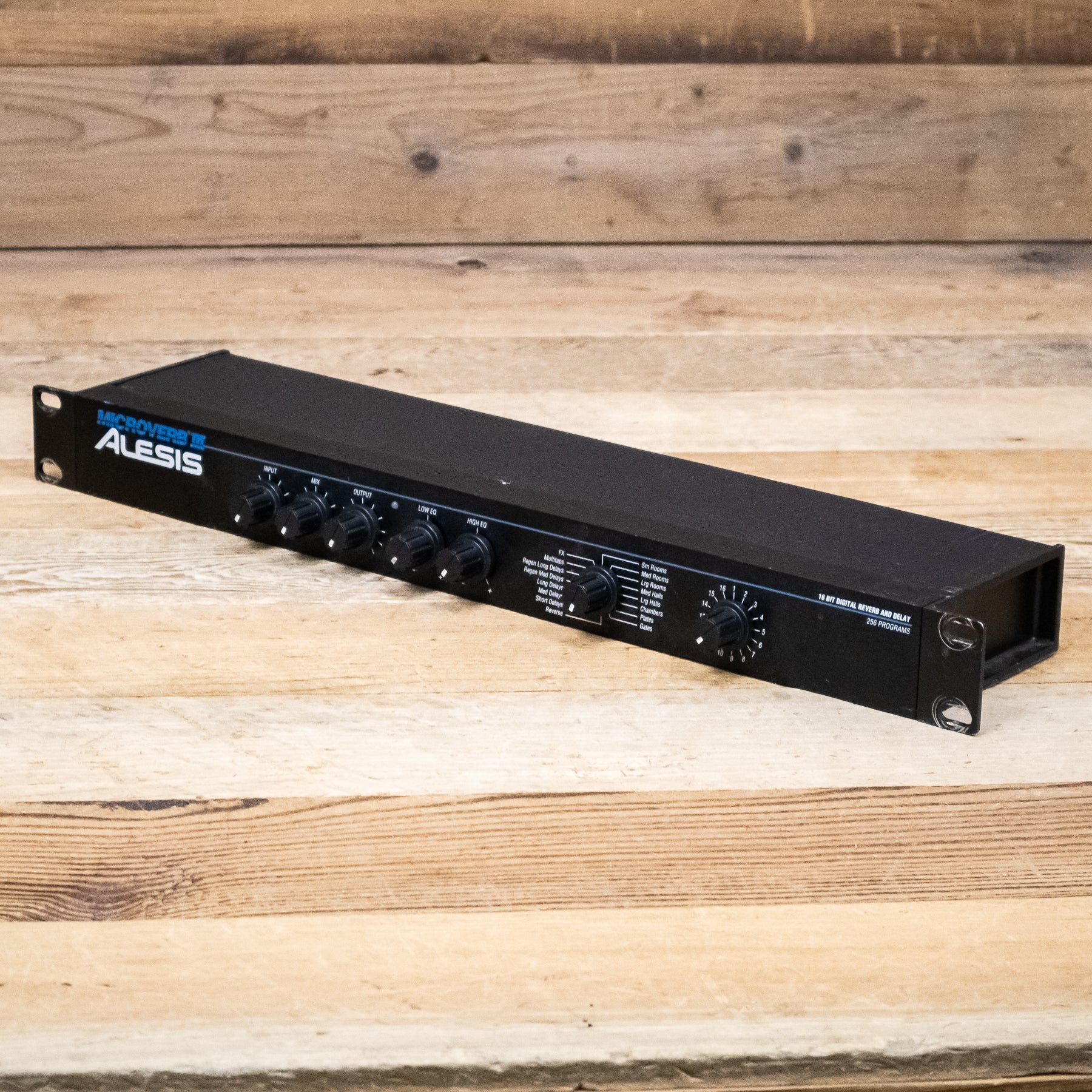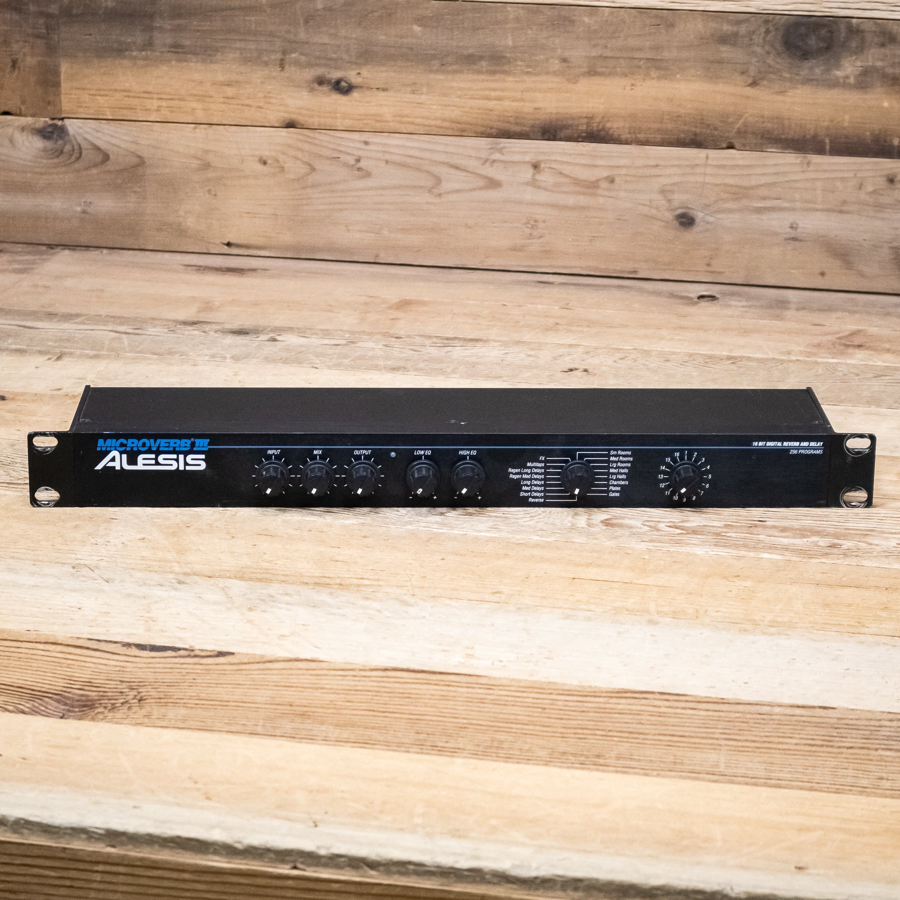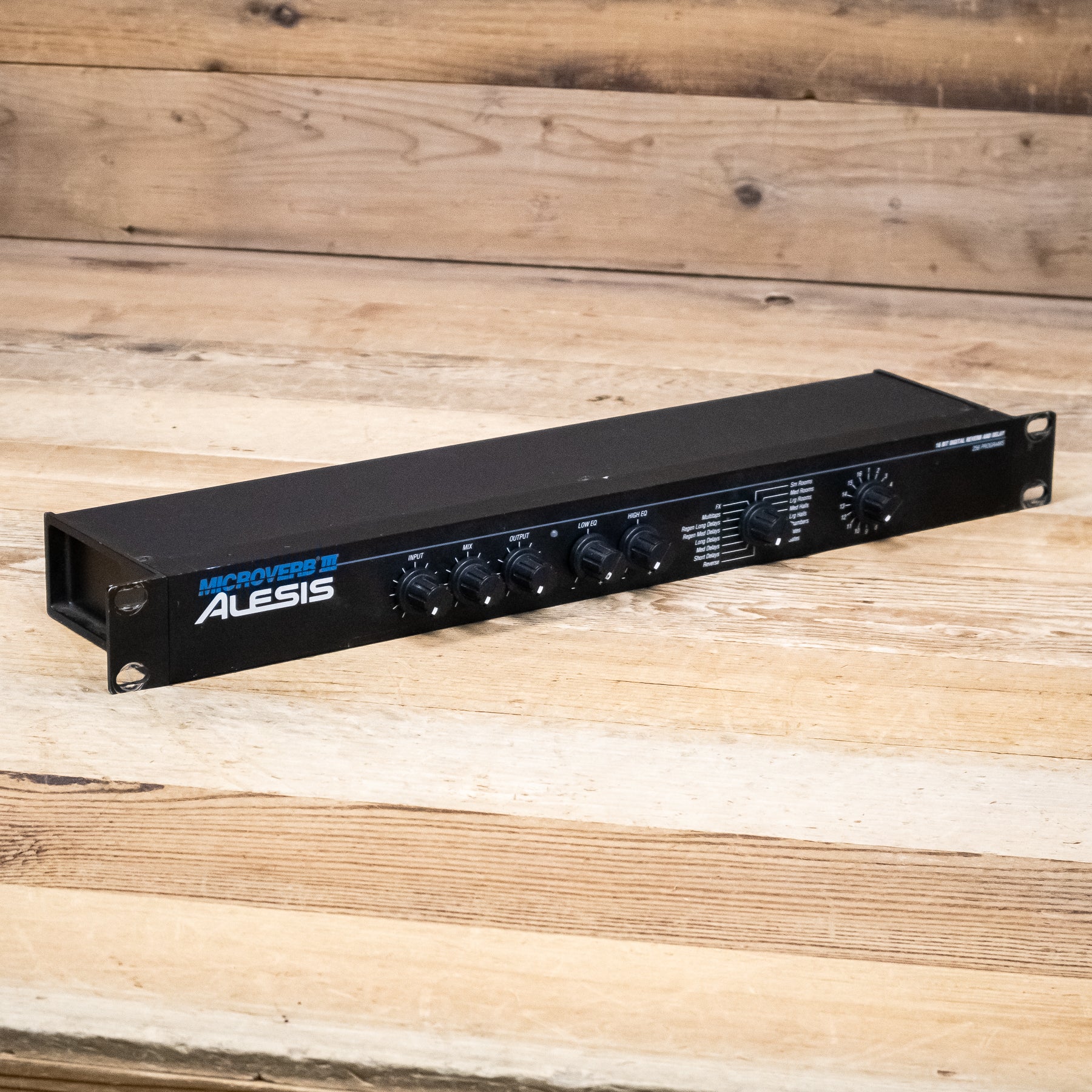 Born from the original Alesis Microverb and Microverb II, the Microverb III carries on the same tradition of world class performance at a phenomenal price. Using 16-bit linear PCM processing like its predecessors, Microverb III has 256 programs. These include 144 reverb programs, 96 delay programs, and 16 special effects programs as well as High and Low Frequency Equalization. Microverb III delivers awesome power to the recording efforts of every engineer, from 4 track home studios to world class recording facilities. And, of course, Microverb III is full stereo, full 15kHz bandwidth, and absolutely musical.