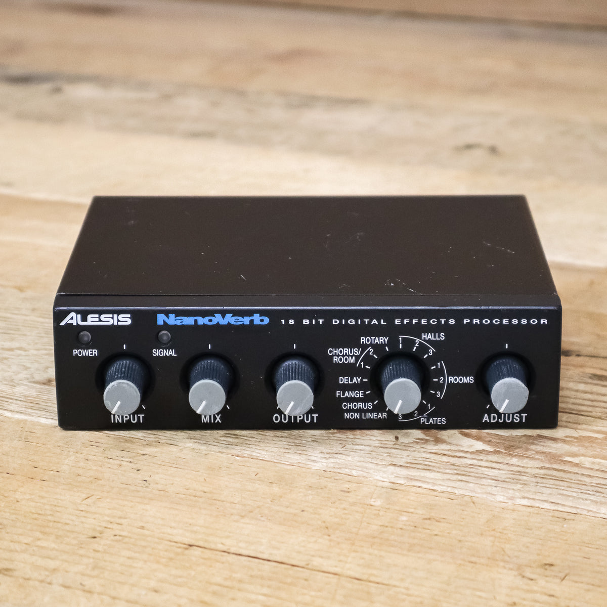 The NanoVerb gives you sixteen of Alesis' best preset effects algorithms in a compact, easy-to-use and incredibly affordable package. You'll enjoy its lush hall, plate and room reverbs, rich true stereo chorus, flange, delay, rotary speaker emulation and useful multieffects. Plus, NanoVerb's 18 bit digital converters ensure the sonic quality that allows you to use it for any effects application from guitar rigs to studio recording. The front panel adjust knob allows you to tweak NanoVerb's great-sounding programs until they're just right for your music, while the Input/Output levels and Mix controls ensure proper effect levels for a wide variety of applications. Plus, with its amazing low cost, you can afford to put two or three NanoVerbs in your rack for dedicating to multiple sources.