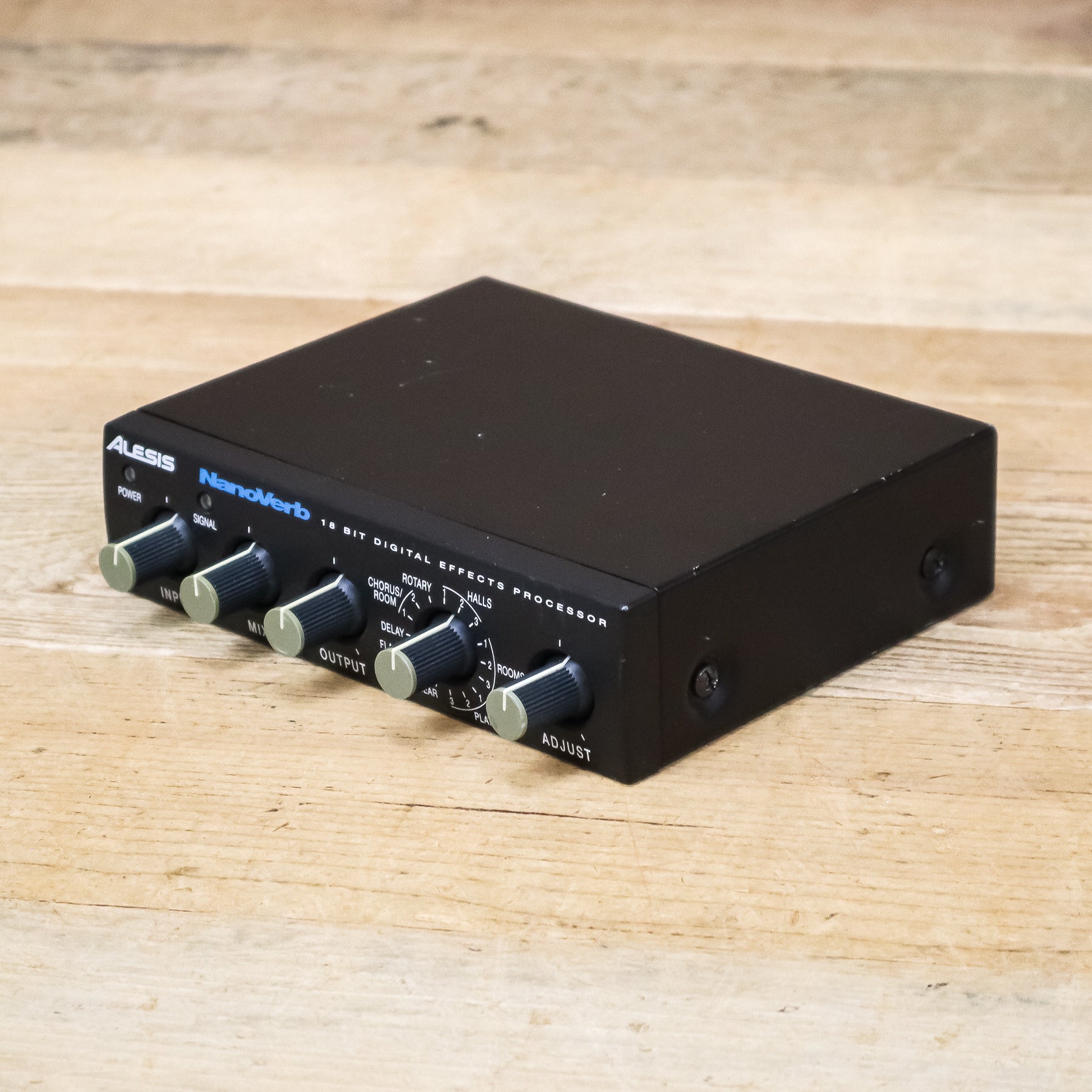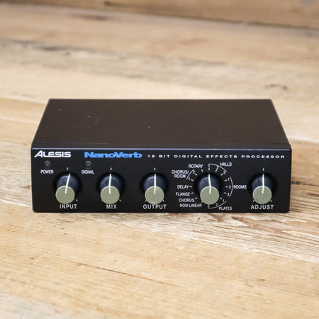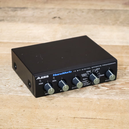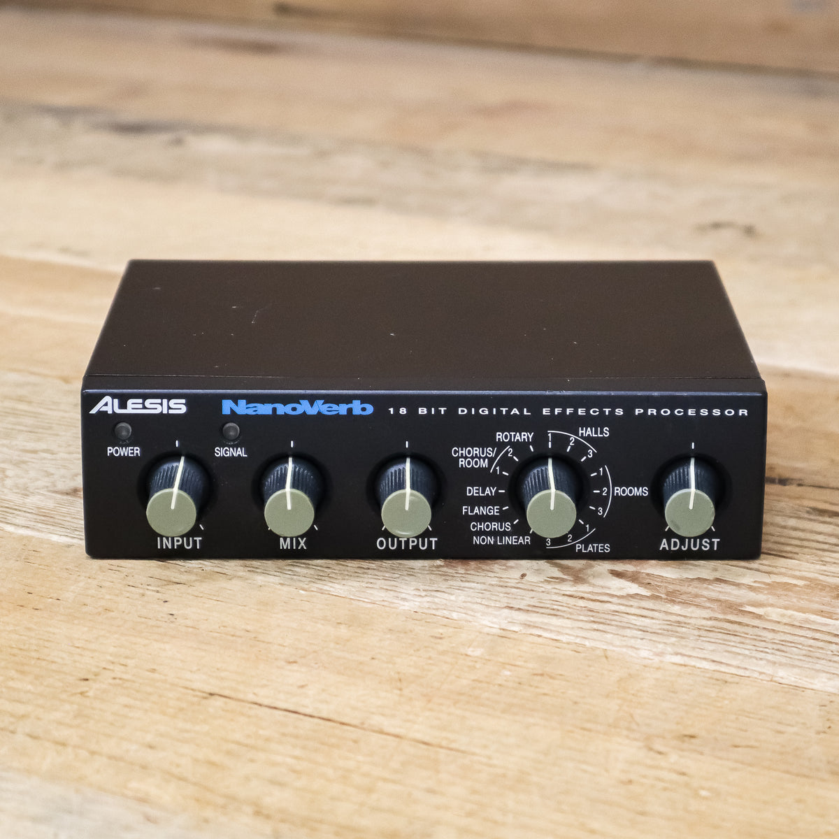 The NanoVerb gives you sixteen of Alesis' best preset effects algorithms in a compact, easy-to-use and incredibly affordable package. You'll enjoy its lush hall, plate and room reverbs, rich true stereo chorus, flange, delay, rotary speaker emulation and useful multieffects. Plus, NanoVerb's 18 bit digital converters ensure the sonic quality that allows you to use it for any effects application from guitar rigs to studio recording. The front panel adjust knob allows you to tweak NanoVerb's great-sounding programs until they're just right for your music, while the Input/Output levels and Mix controls ensure proper effect levels for a wide variety of applications. Plus, with its amazing low cost, you can afford to put two or three NanoVerbs in your rack for dedicating to multiple sources.