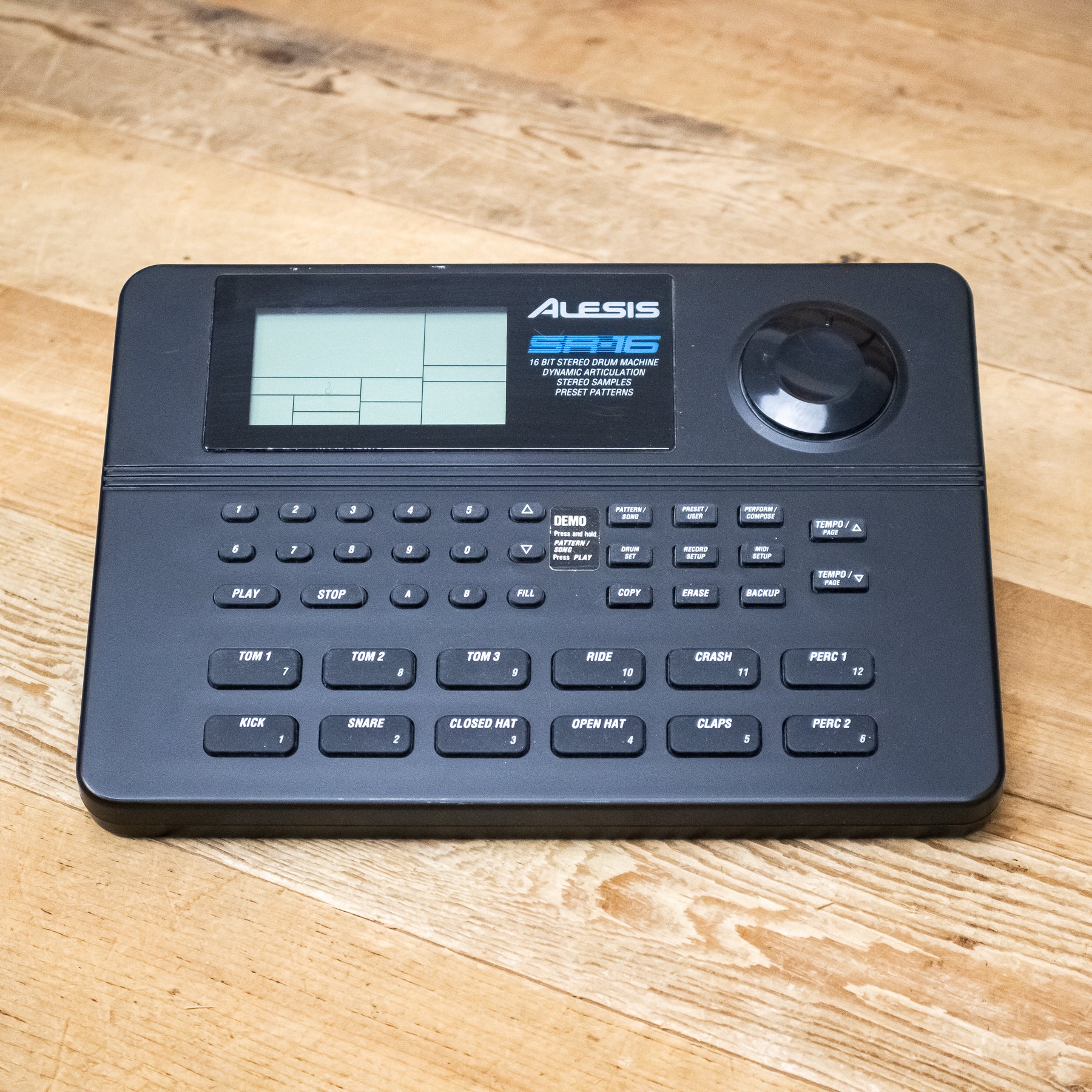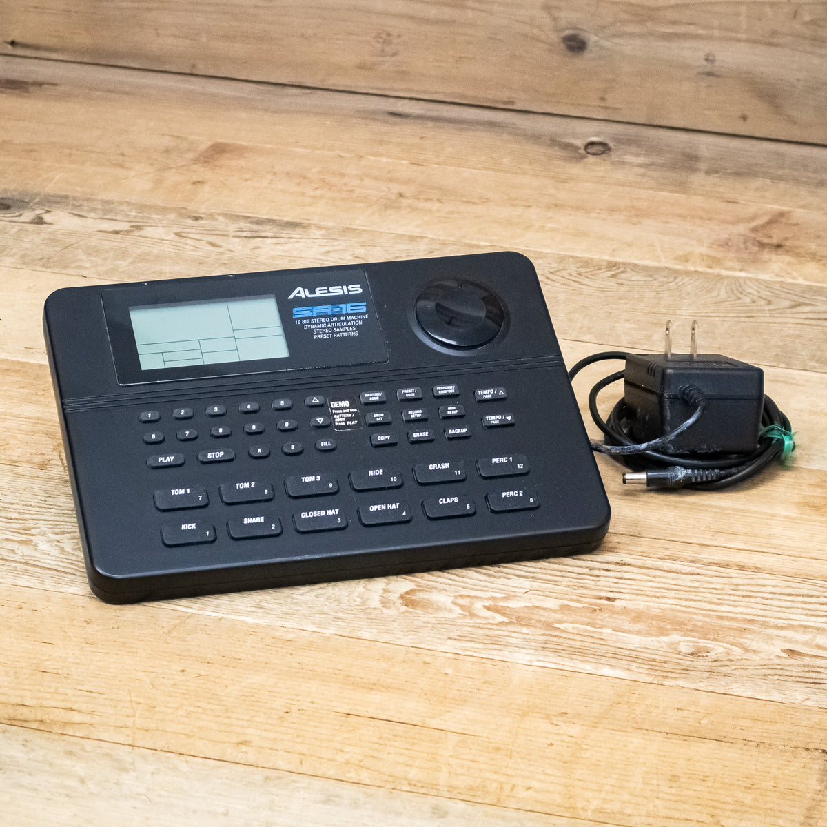 This used Alesis SR-16 Drum Machine comes with a Power Supply.