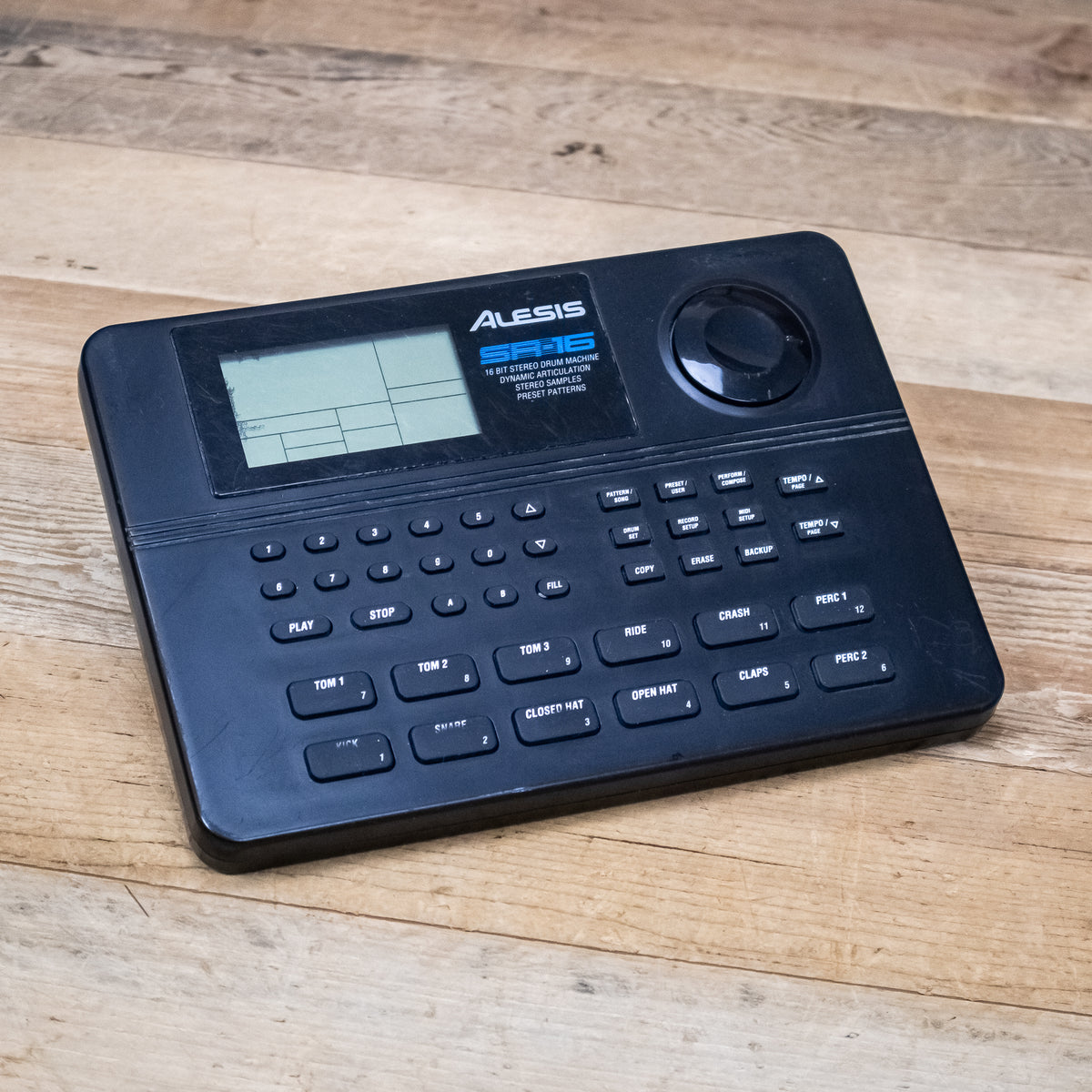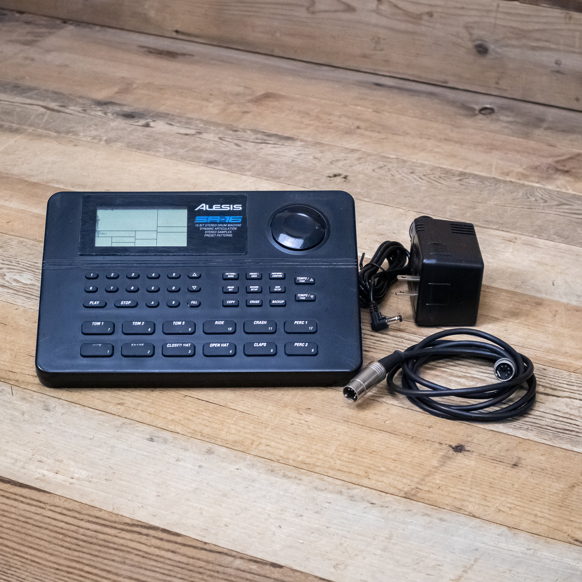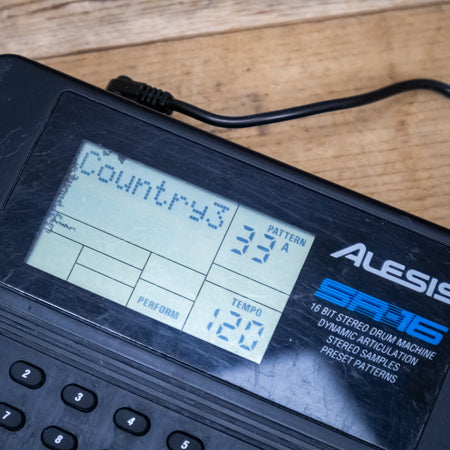 This used Alesis SR-16 Drum Machine comes with a Power Supply.