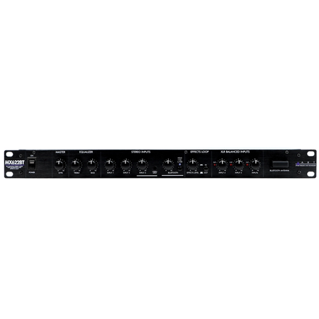 The MX622BT is a rackmount mixer with Bluetooth® connectivity, an effects loop, and onboard EQ.