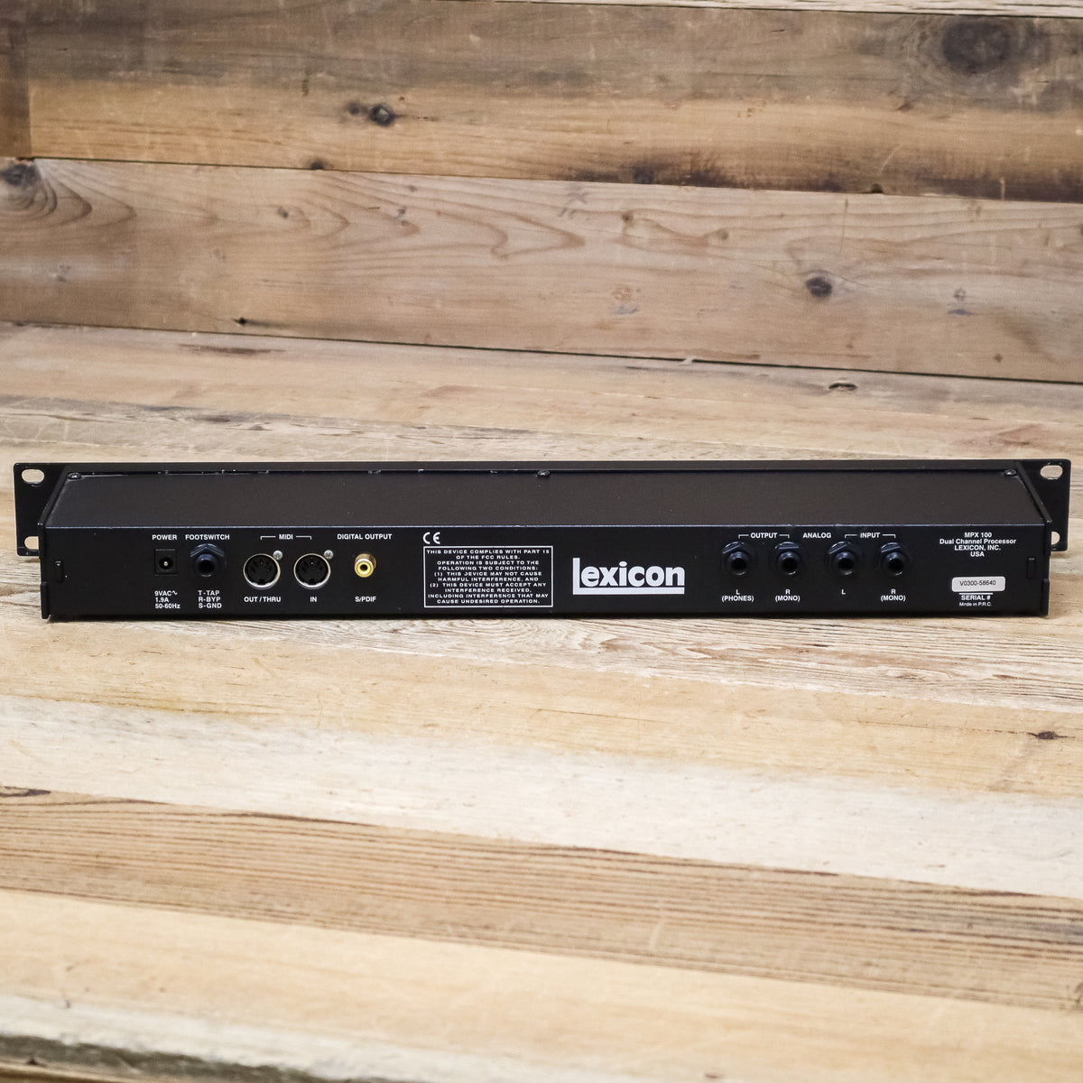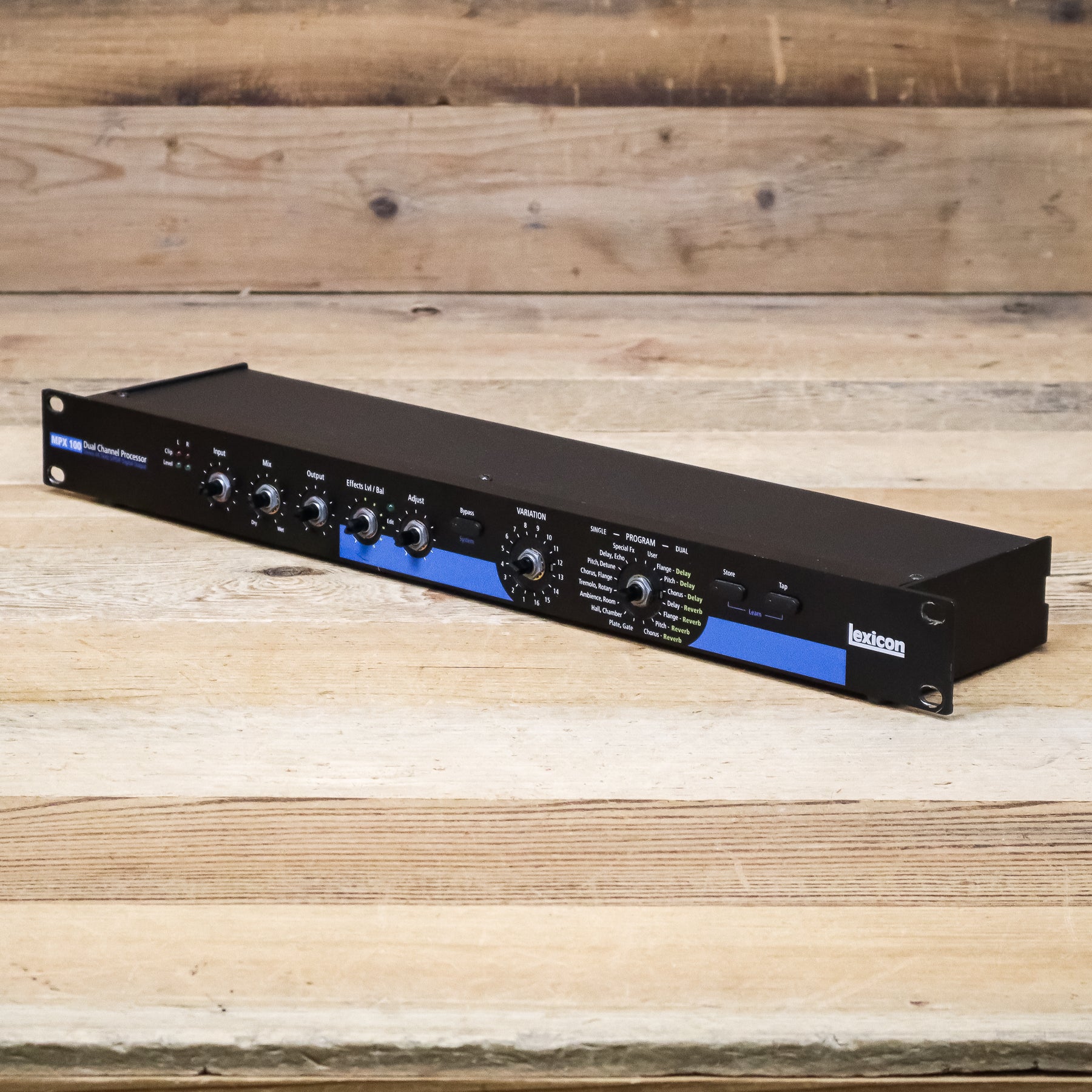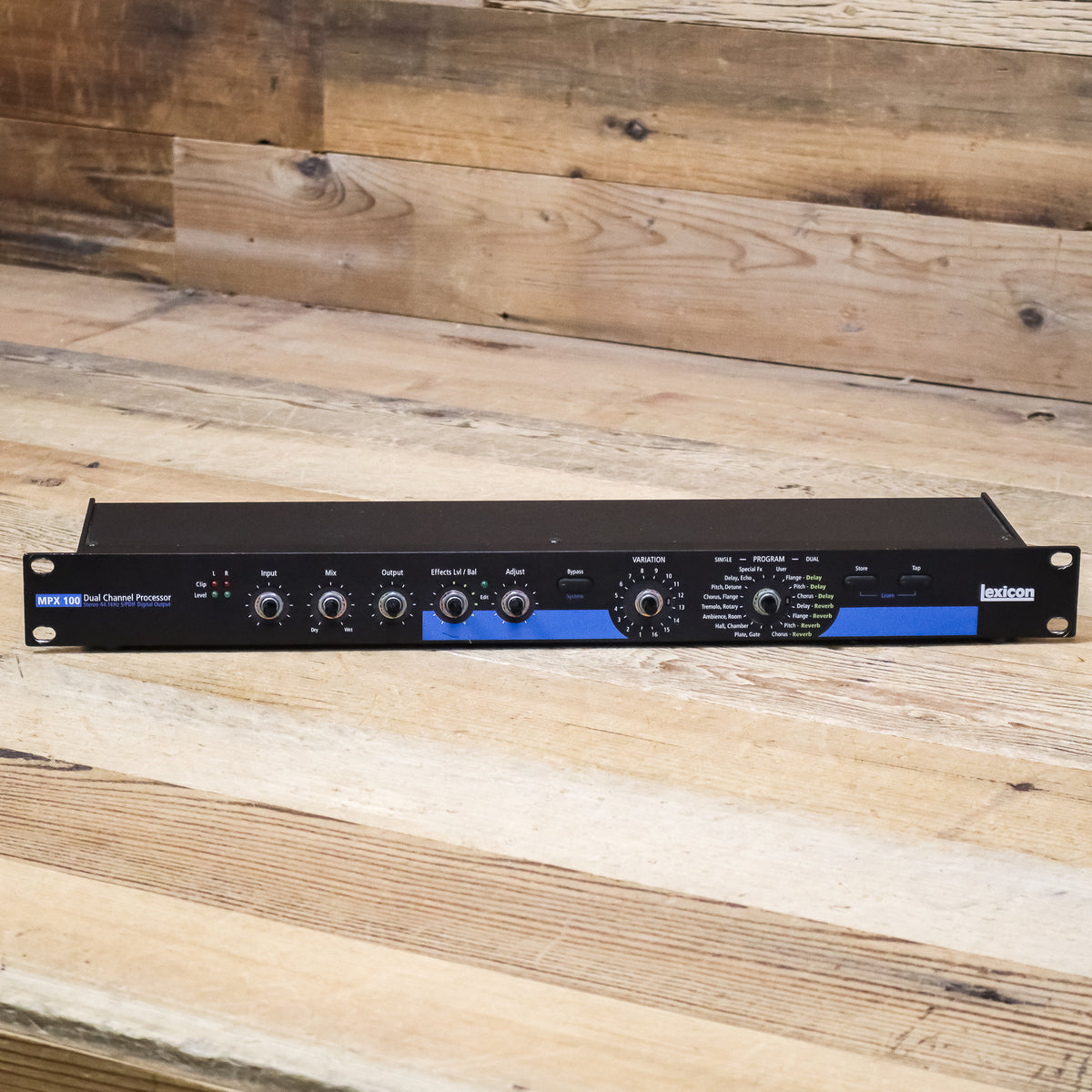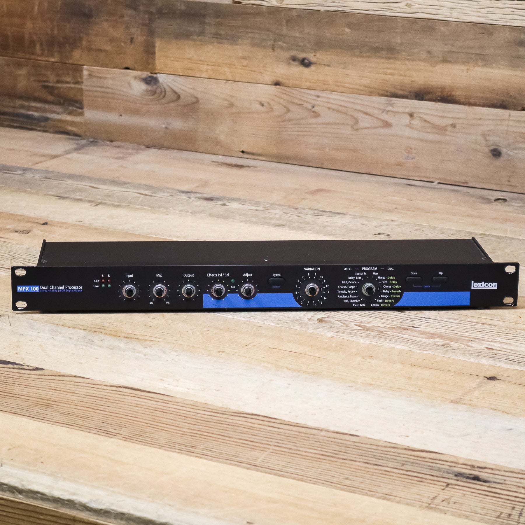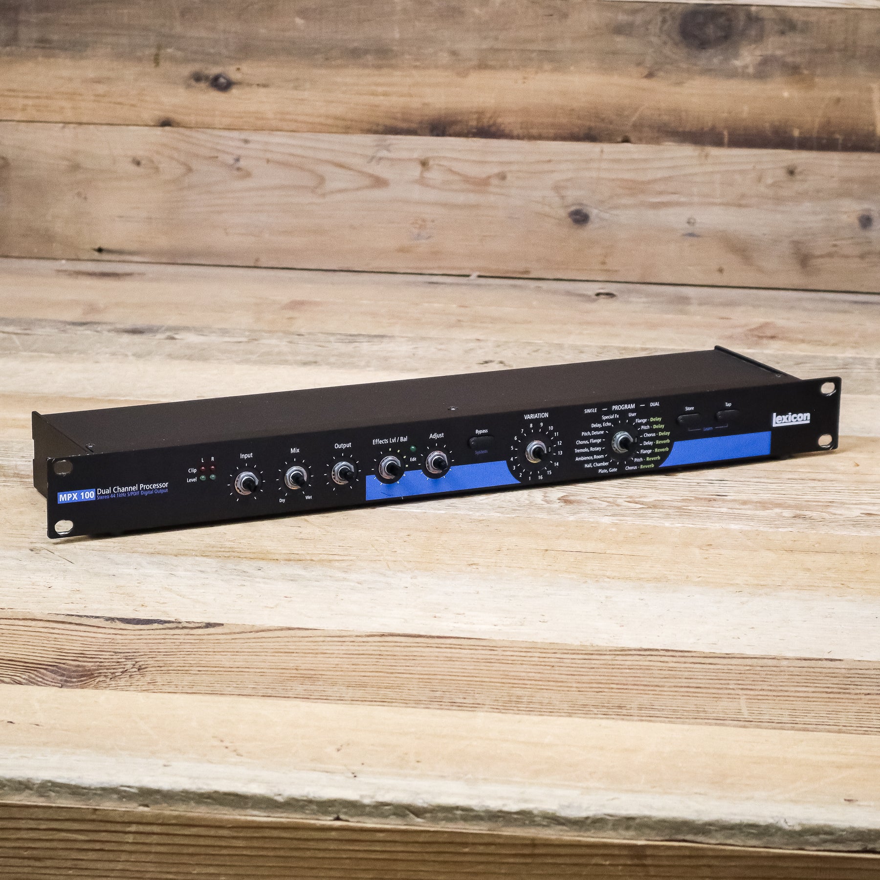 The MPX 100 is a true stereo dual-channel processor with 24-bit internal processing, 20-bit A/D-D/A and S/PDIF digital output for a very affordable price. Utilizing a new version of Lexicon's proprietary Lexichip, the MPX 100 offers 240 presets with classic, true stereo reverb programs such as Ambience, Plate, Chamber and Inverse as well as Tremolo, Rotary, Chorus, Flange, Pitch, Detune, Delay, and Echo. Dual-channel processing allows control of completely independent effects on the left and right channels.