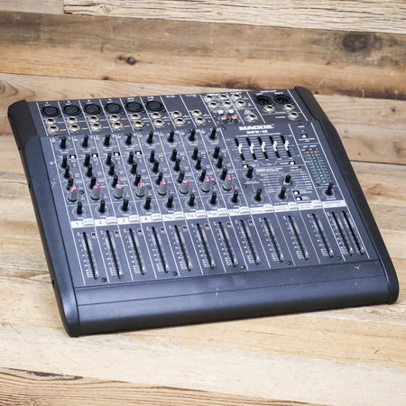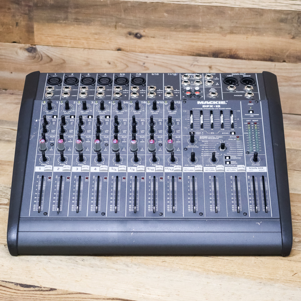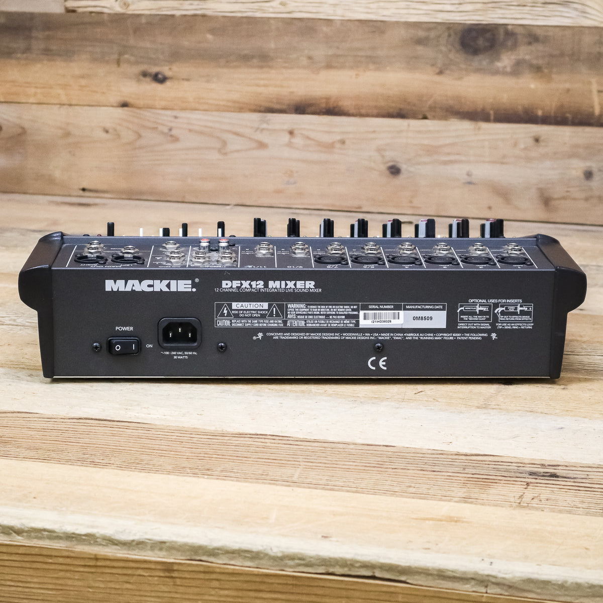 The Mackie DFX12 12x2 Mixer with EFX is a killer audio mixer for many applications. It offers 12 input channels (4 mono mic/line, 2 mono mic/stereo line, and 2 stereo/mono line); low-noise, high-headroom mic preamps with +50dB gain range and switchable phantom power on channels 1 & 2; 32-bit EMAC digital EFX processor with 16 effects; 5-band stereo graphic equalizer with 12dB boost/cut; 2-band channel strip shelving EQ; 75Hz low-cut filters and inserts on channels 1 & 2; tape and CD inputs and Tape output; vocal eliminator; break switch for playing music between sets; and lots more.