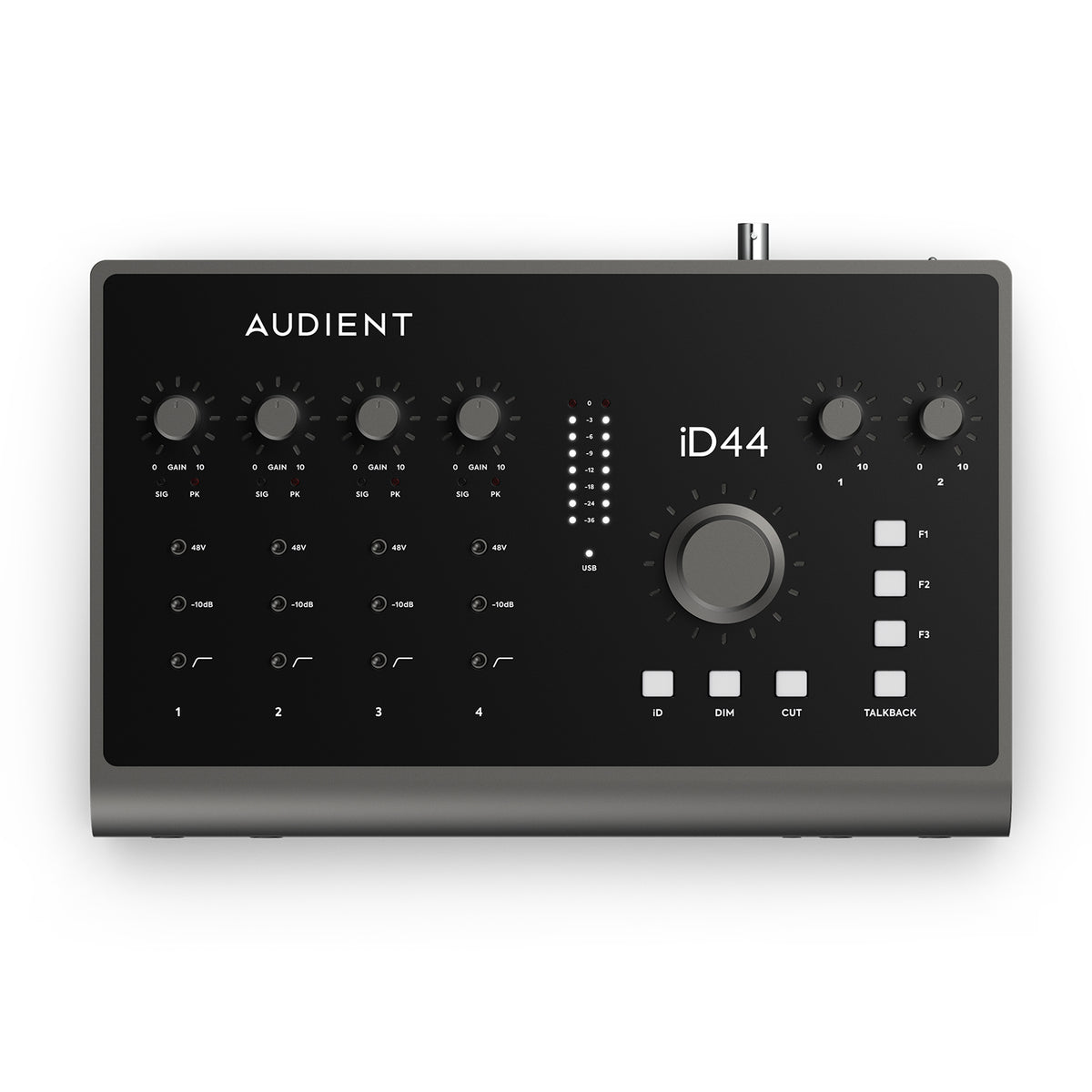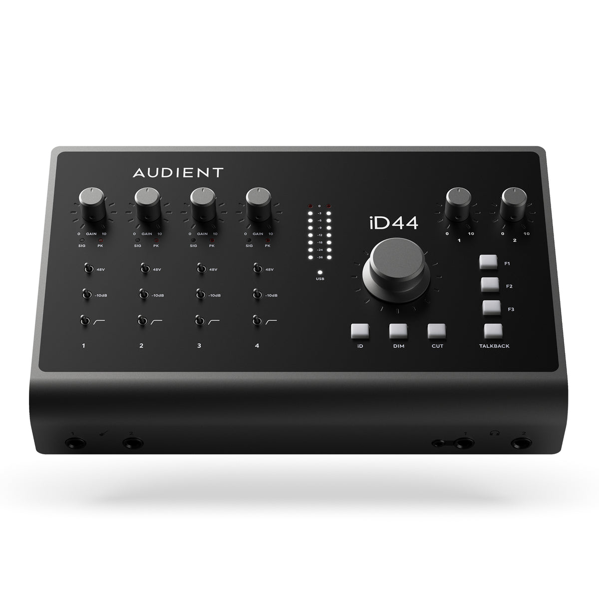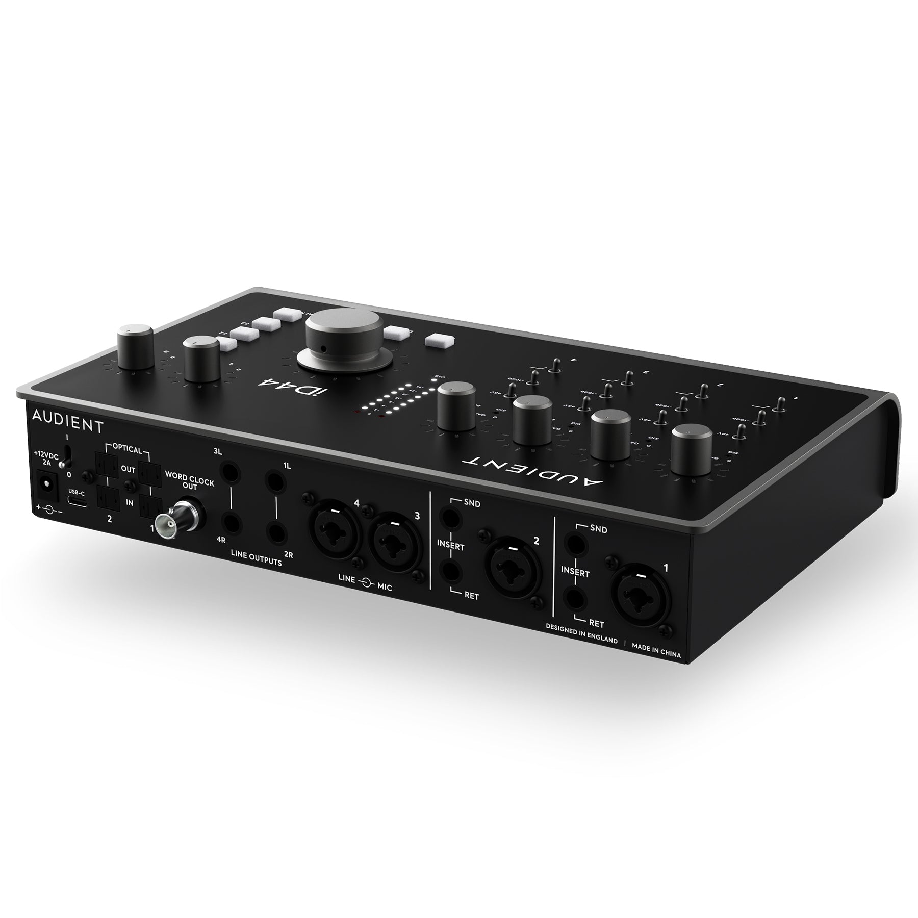 Introducing iD44, the audio interface made for producers and engineers. Featuring four Audient Console Mic Preamps, Advanced 32-bit AD/DA Converters and two fully balanced analogue inserts - iD44 effortlessly combines astonishing audio performance with ease of use. Add to that professional must have features like dual headphone outputs, ADAT expandability and customizable monitor control, iD44 makes getting studio quality results easy.