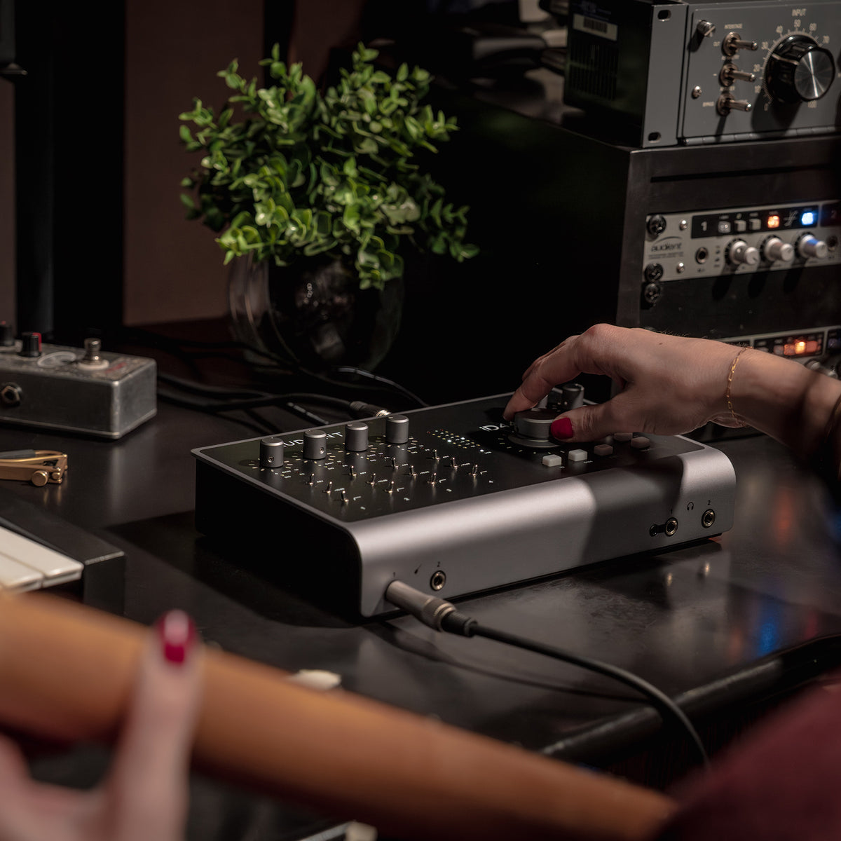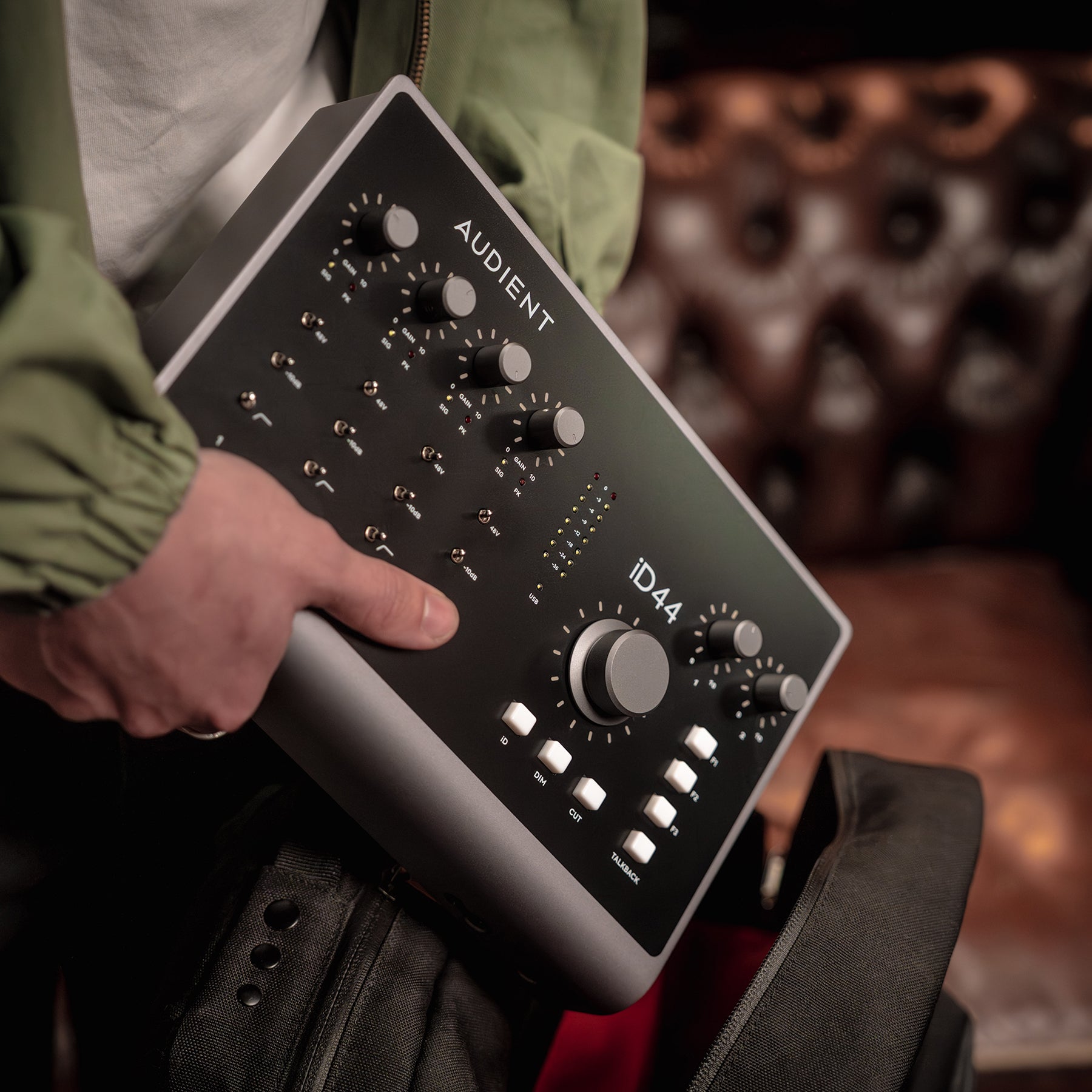 iD44 not only looks good but feels good too. Its all-metal design, hand-milled aluminum knobs and high-grade component selection make it perfect for everyday use, whether you're recording at home or on the go.