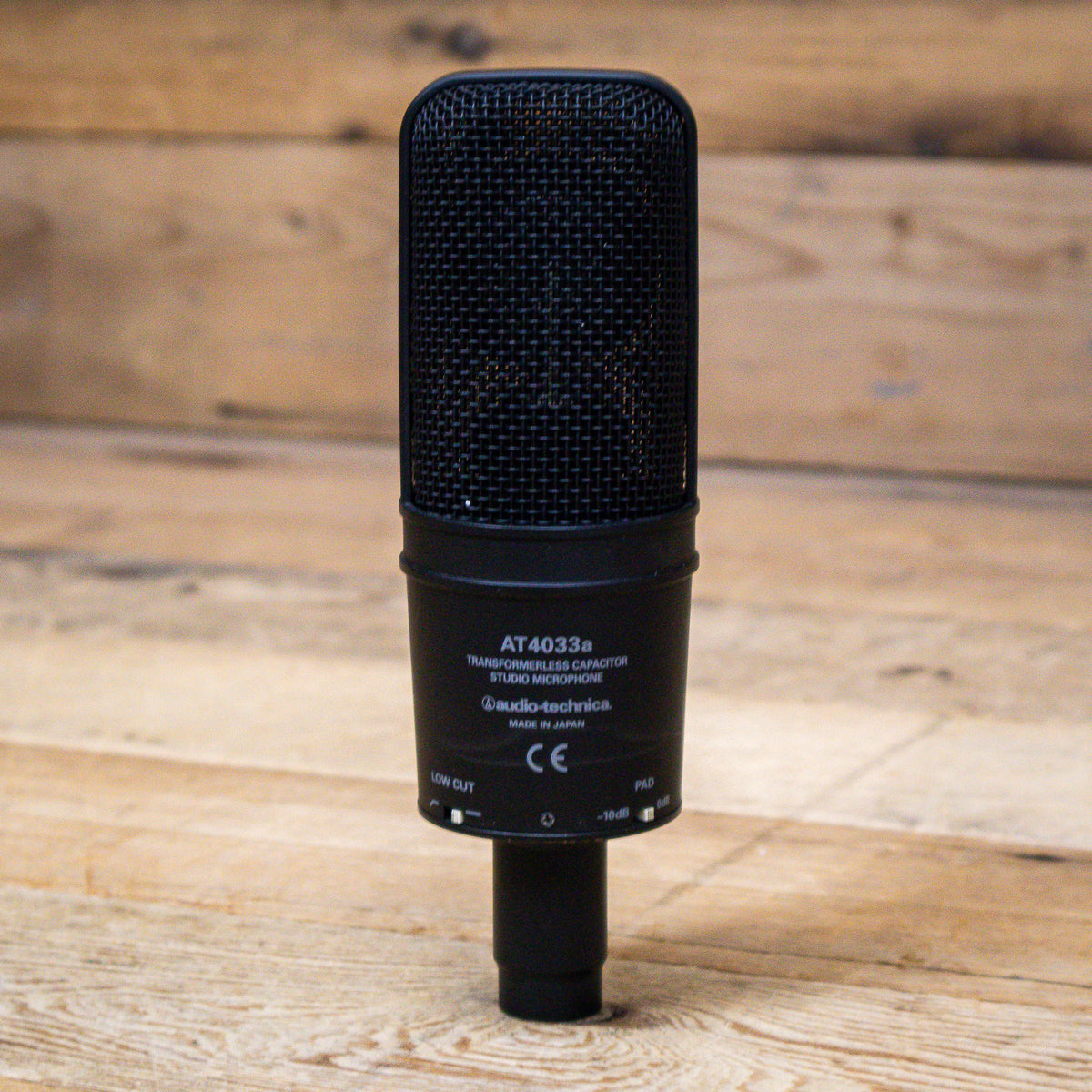 This used Audio-Technica AT4033a Condenser Microphone comes with a Shock Mount.