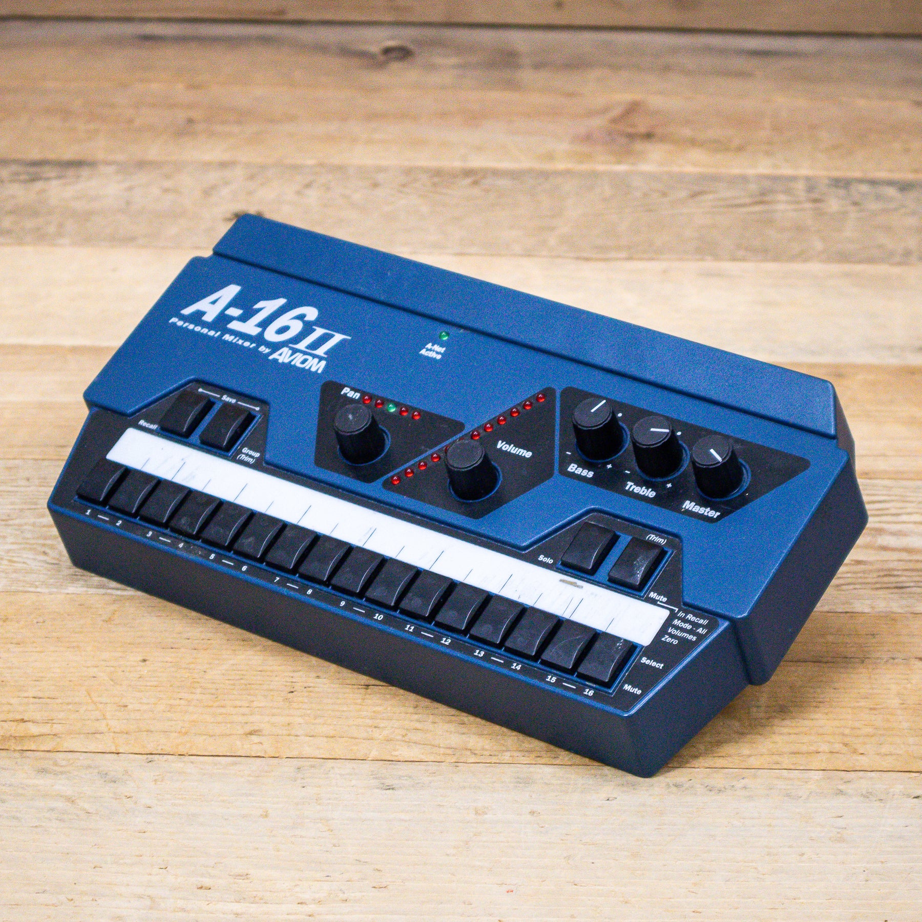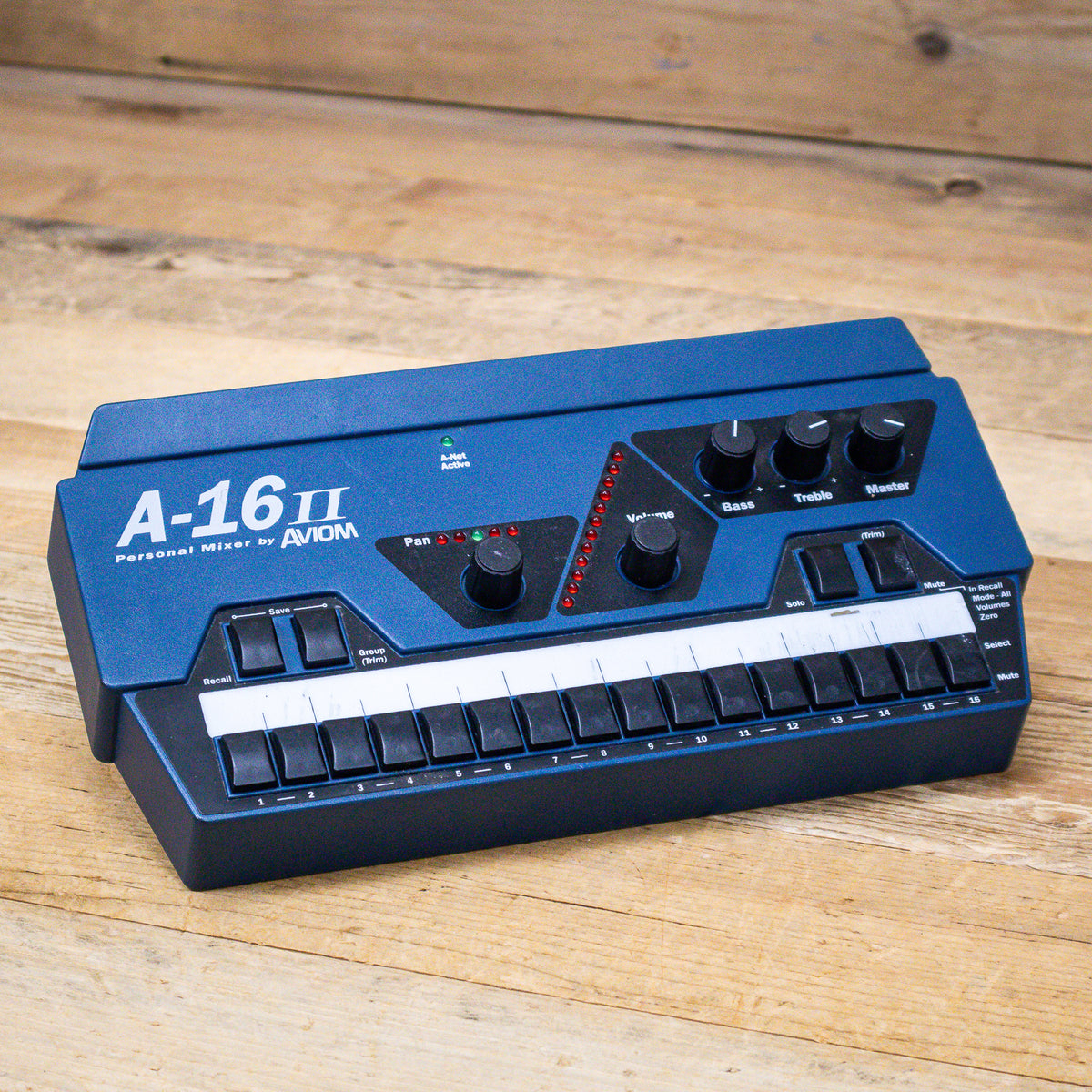 The Aviom A-16II Personal Mixer allows individual performers to create custom monitor mixes tailored to their individual needs. Designed for use in live performance or in the studio, the A-16II Personal Mixer is a 16-channel digital mixer which gives each performer completely independent control over channel volume, grouping, pan, and stereo spread, as well as master volume and tone. Every performer gets a completely customized monitor or cue mix. Each user can save and recall up to sixteen custom mixes as presets in their Personal Mixer.