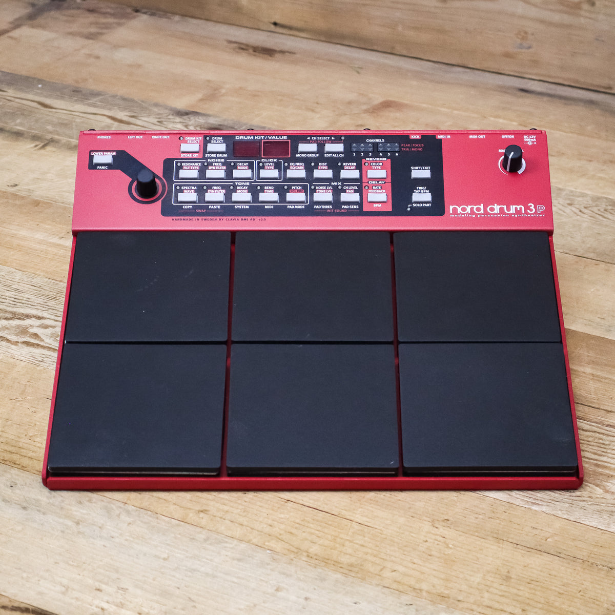 The super compact new Nord Drum 3P combines stunning playability with unlimited sound design possibilities! New features include integrated multi-pad, Reverb and Delay effects, a simplified sound selection mode and new Sound Banks for quickly creating custom kits on the fly.