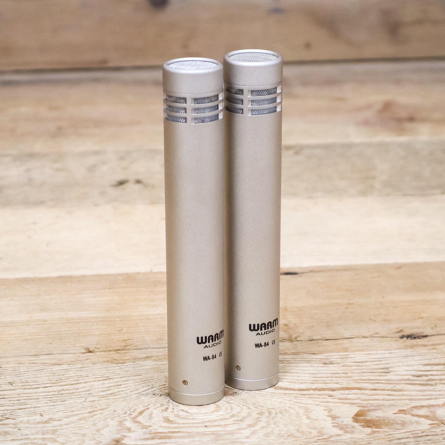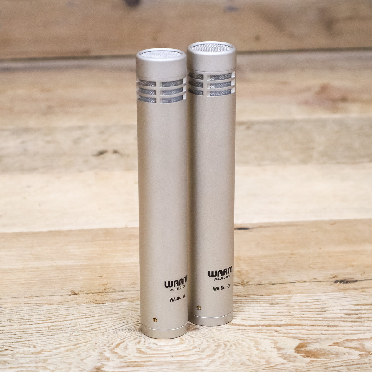 This is a B-stock Stereo Pair of Warm Audio WA-84 Nickel Small Diaphragm Condenser Microphones with both the Cardioid and Omni Capsules.