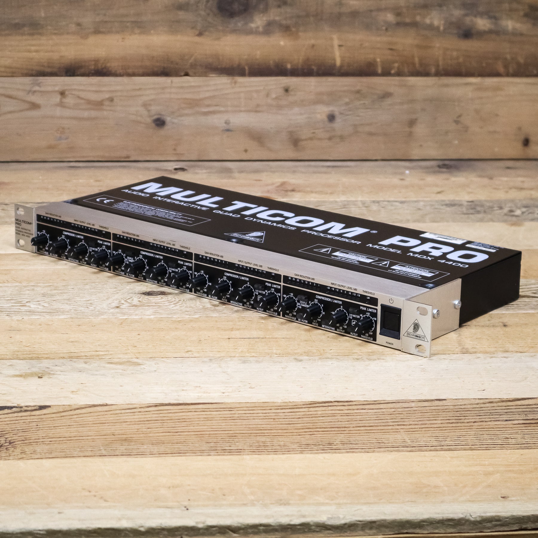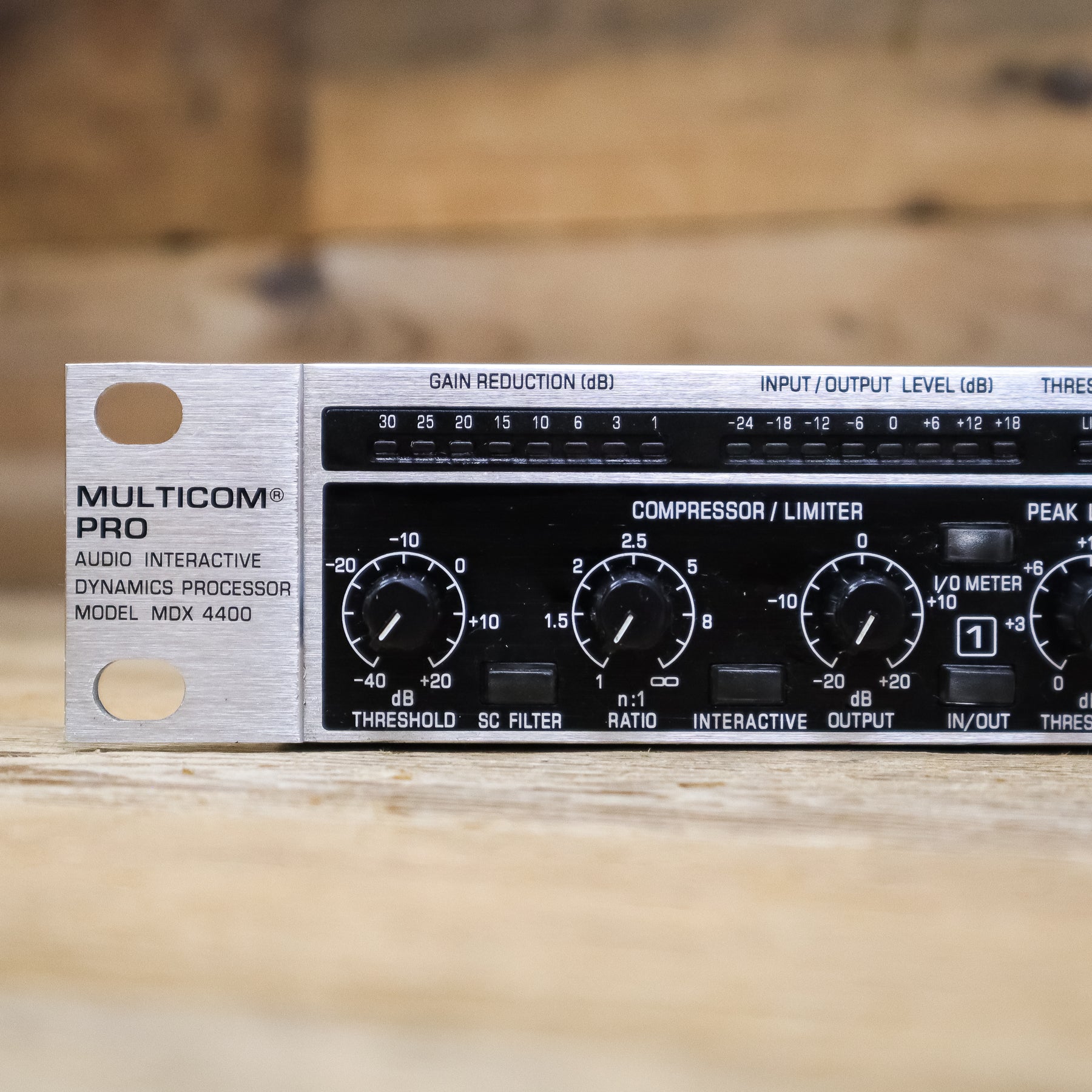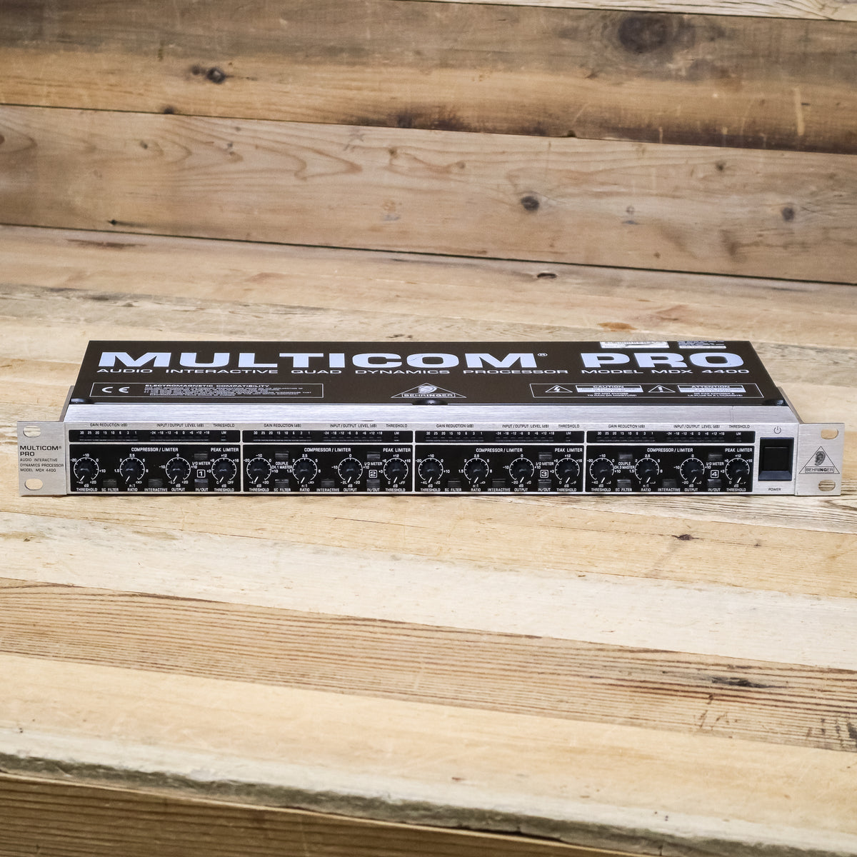 This used Behringer Multicom Pro MDX4400 4-Channel Compressor/Limiter/Peak Limiter comes with a Power Cable.