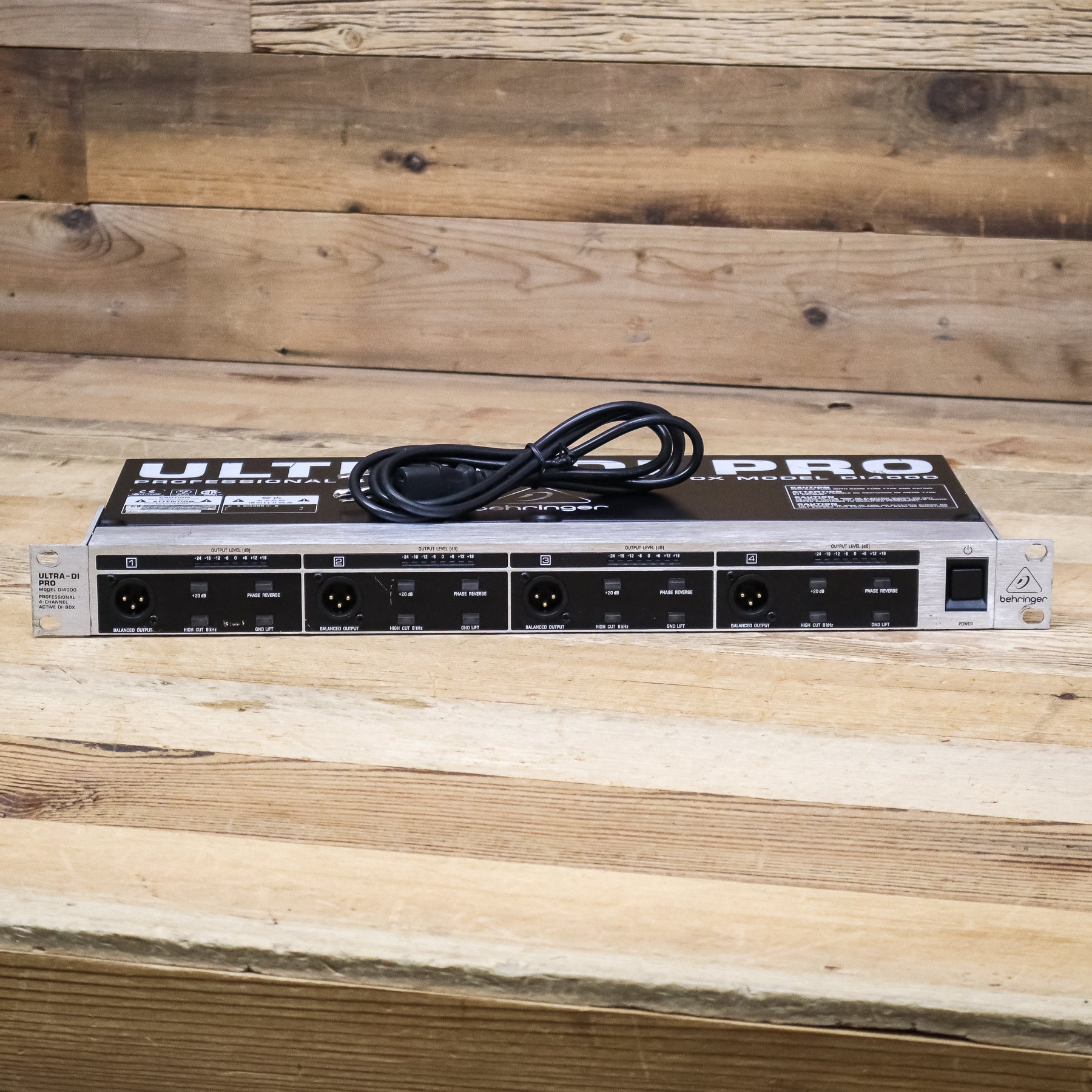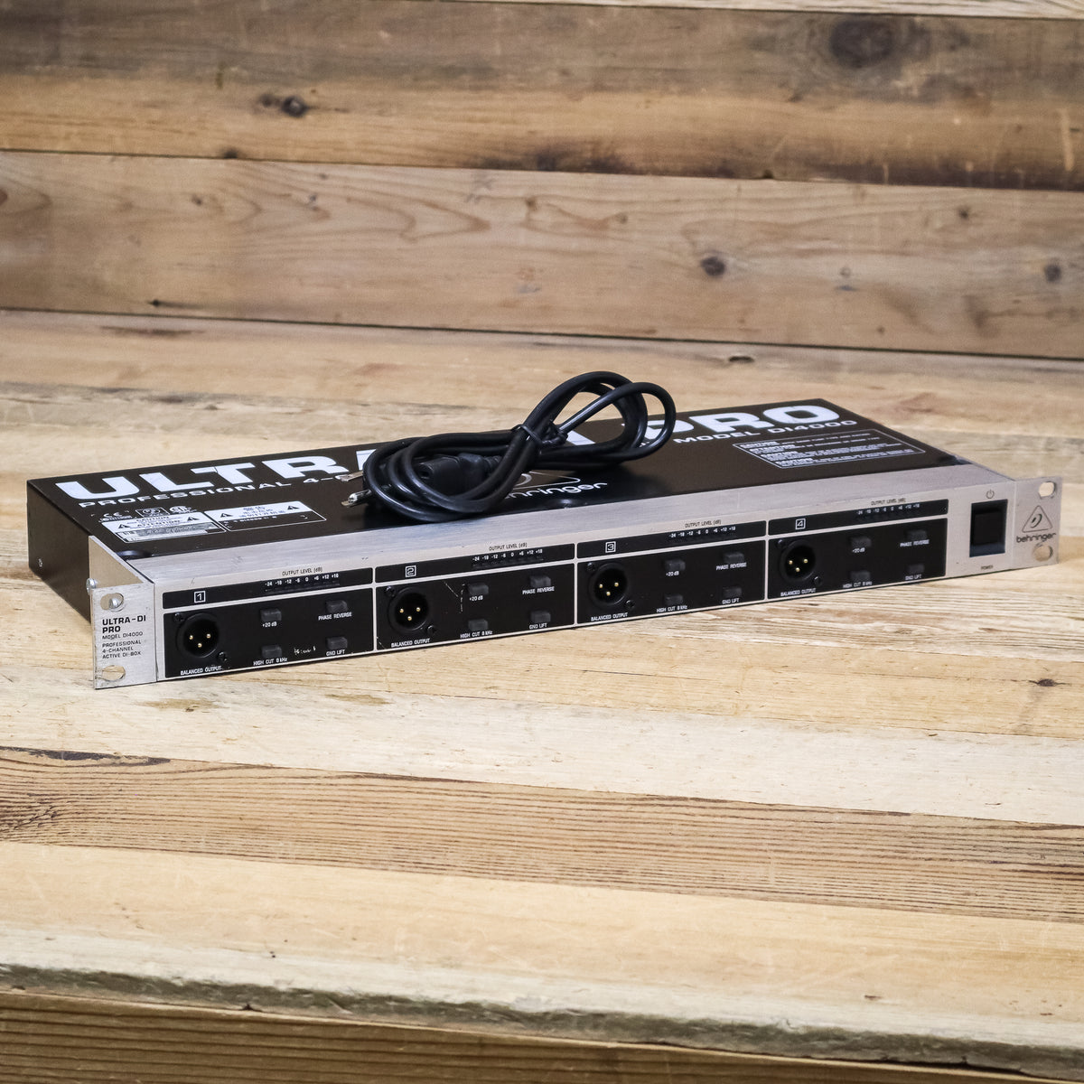 This used Behringer DI4000 4-Channel Active DI Box comes with a Power Cable.