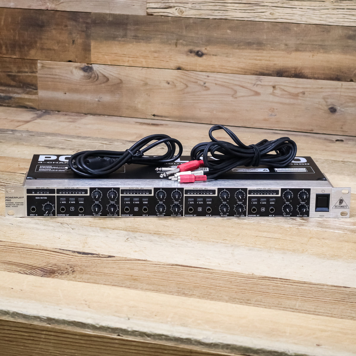 This used Behringer Powerplay Pro HA4600 4-Channel Headphone Distribution Amplifier comes with a dual RCA to 1/4" TS Cable and a Power Cable.