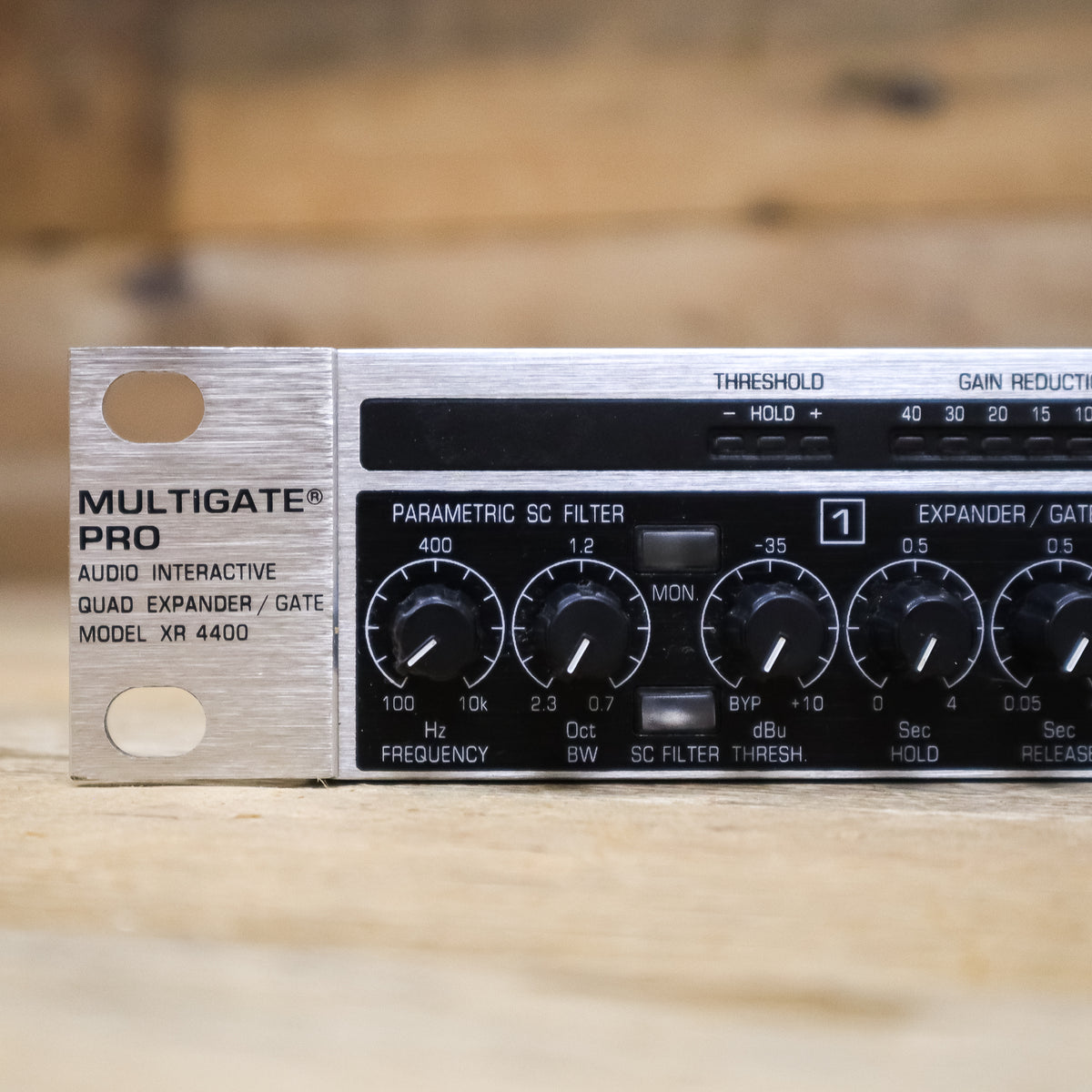 The Behringer Multigate Pro XR4400 is a high-quality 4-channel expander/gate ready for use in your rig. Keep noise to a minimum with this dynamic gate. Each channel of the XR4400 gives you controls for threshold, ratio, hold, release, frequency, and bandwidth. With a lightening-fast attack time, you'll easily gate even the speediest drum parts. The sidechain's filters let you really dial in the control signals to nail gate functionality, only letting it react when you want it to. Every channel features servo-balanced I/O with XLR and TRS connectors for maximum flexibility.