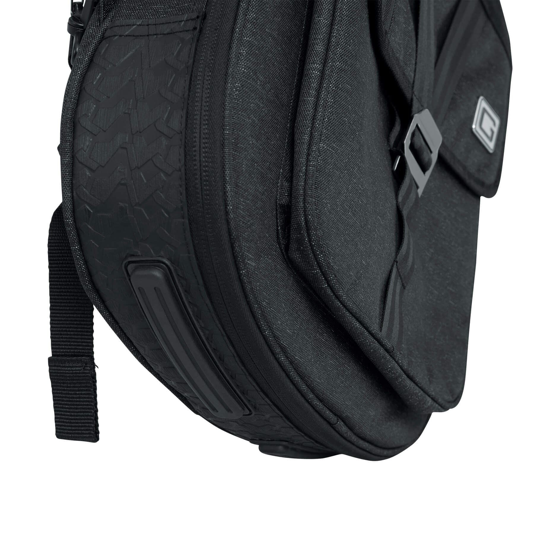 - Weather-Resistant Build: The blended fabric exterior is designed to withstand the elements, while the thick rubber tread on the bottom protects the bag from wear, small puddles, and spilled drinks.