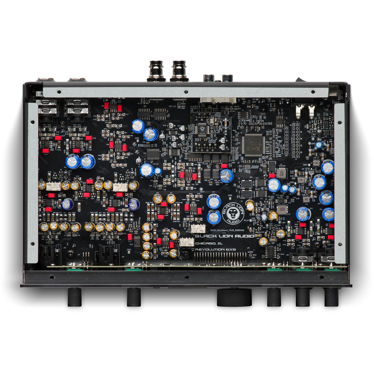 We’ve put everything we’ve learned about interfaces from years of boutique modding into the Revolution 6x6… as we like to say, it’s modded out of the box for crystal-clear audio that will move you and your fans. Rarified tech found in Revolution 6x6 includes the Macro-MMC clock for maximum converter quality, yielding reduced jitter and enhanced harmonics for a glossy, airy top-end you won’t hear in lesser interfaces. Proprietary PG-i filtering technology and highly-filtered power rails work with full-circuit power decoupling to further reduce noise contamination. And for the best possible capture and playback, Revolution 6x6 sports the most cutting edge, high-end ICs and Vishay, Nichicon, and Wima capacitors throughout with all internal gain-staging optimized for the best possible signal-to-noise ratio. Last but not least, all analog I/O is fully decoupled and balanced - right to the very core of the converter!