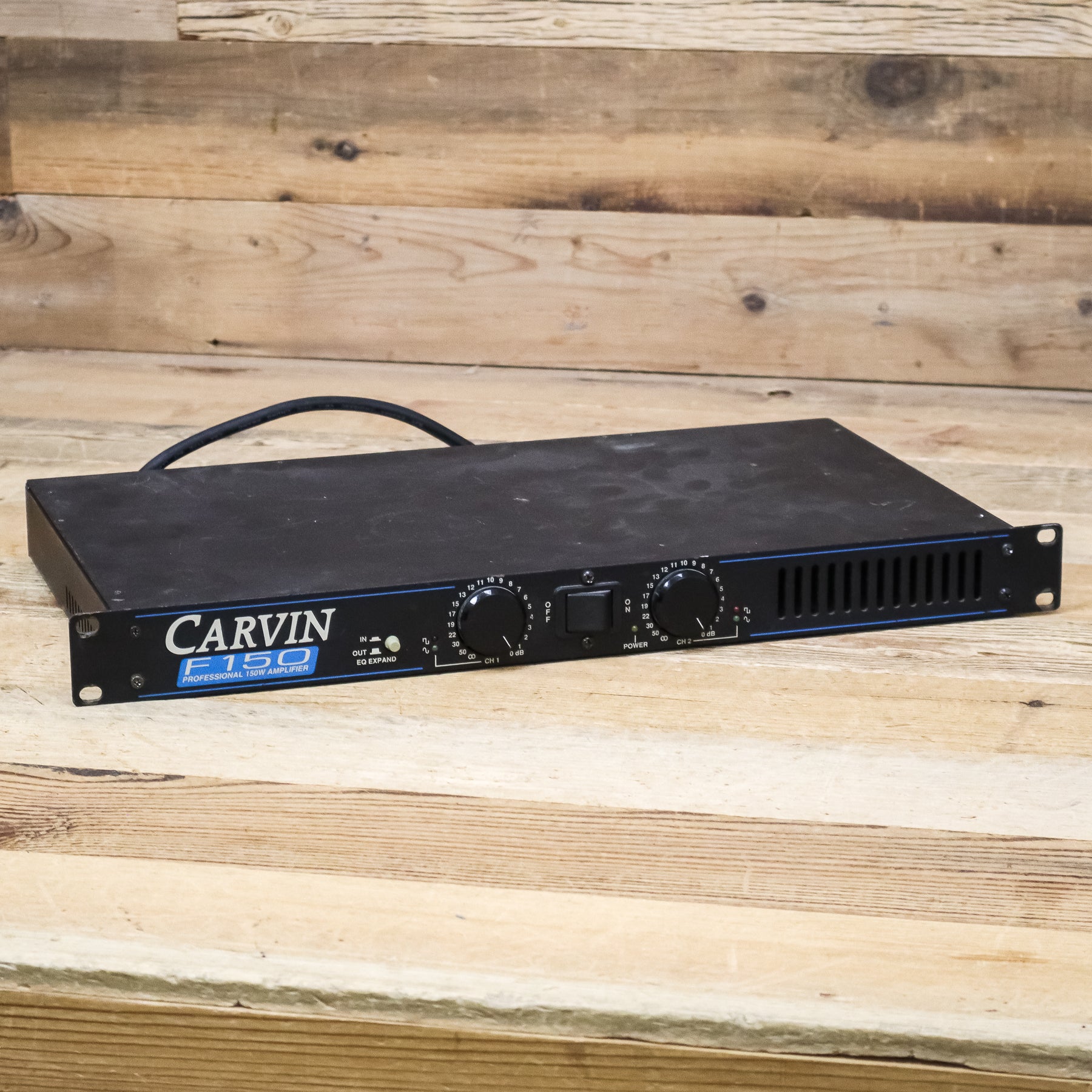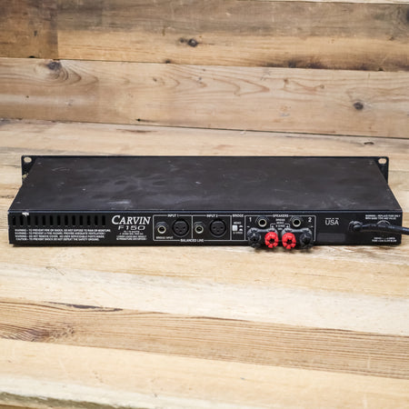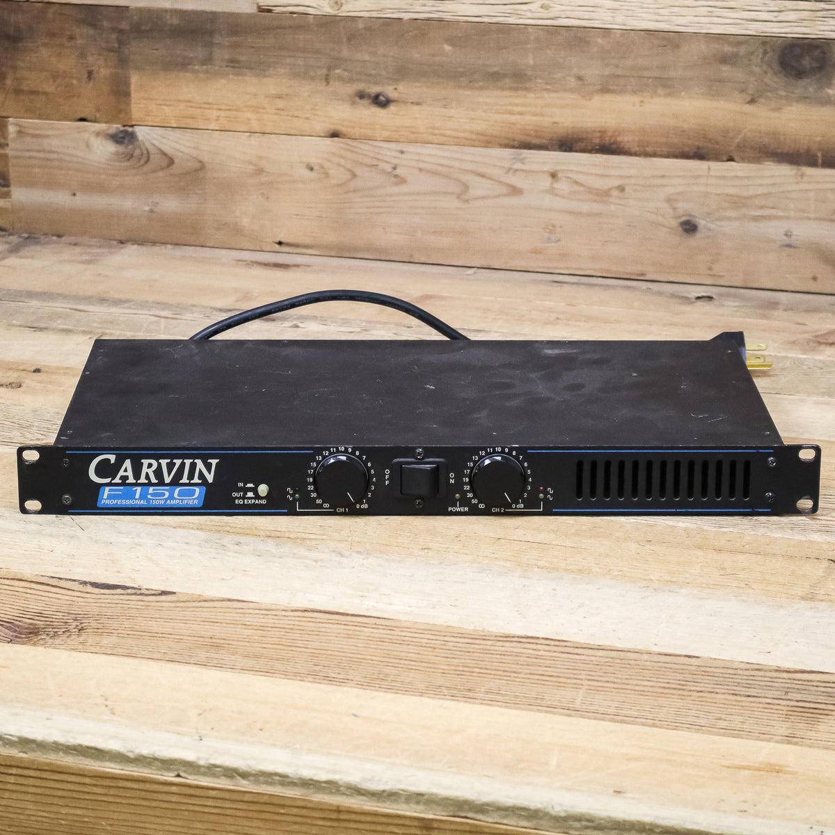 This used Carvin F-150 2-Channel 150W Power Amplifier comes with an attached Power Cable.