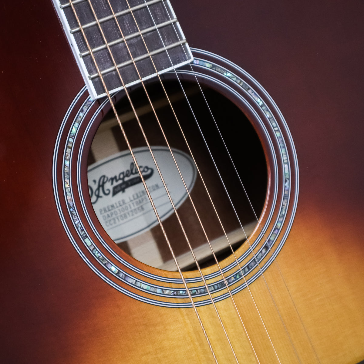 This used D'Angelico Premier Lexington Acoustic Electric Guitar comes in an Iced Tea Burst finish.