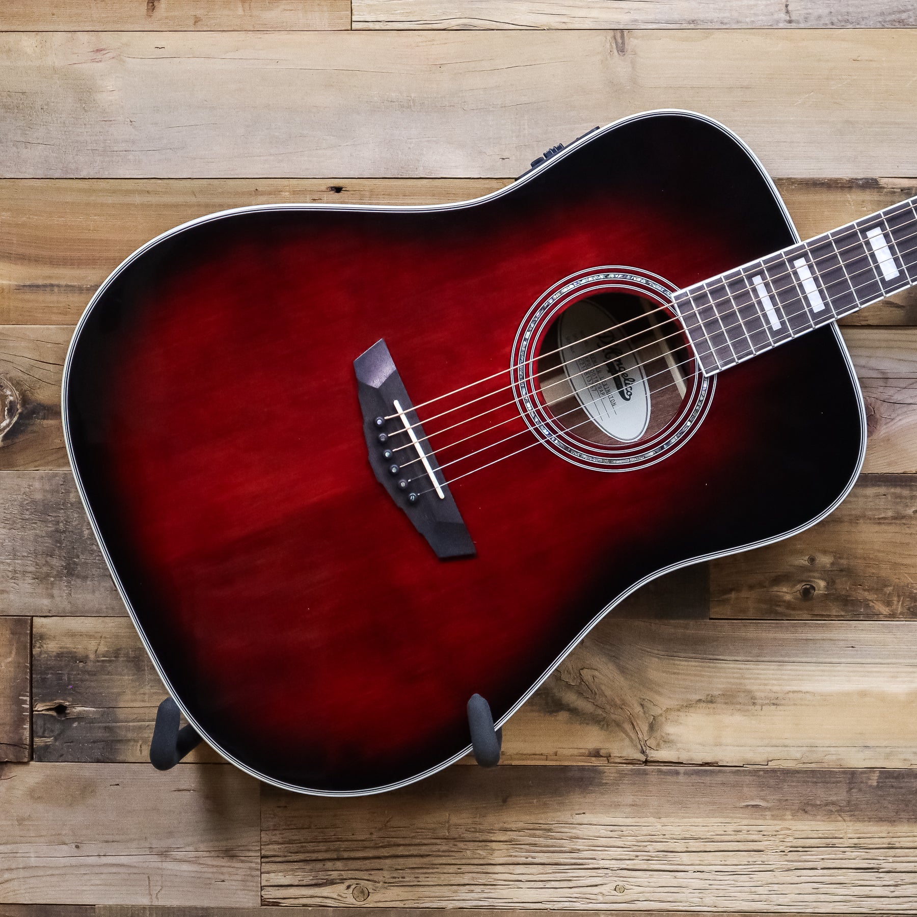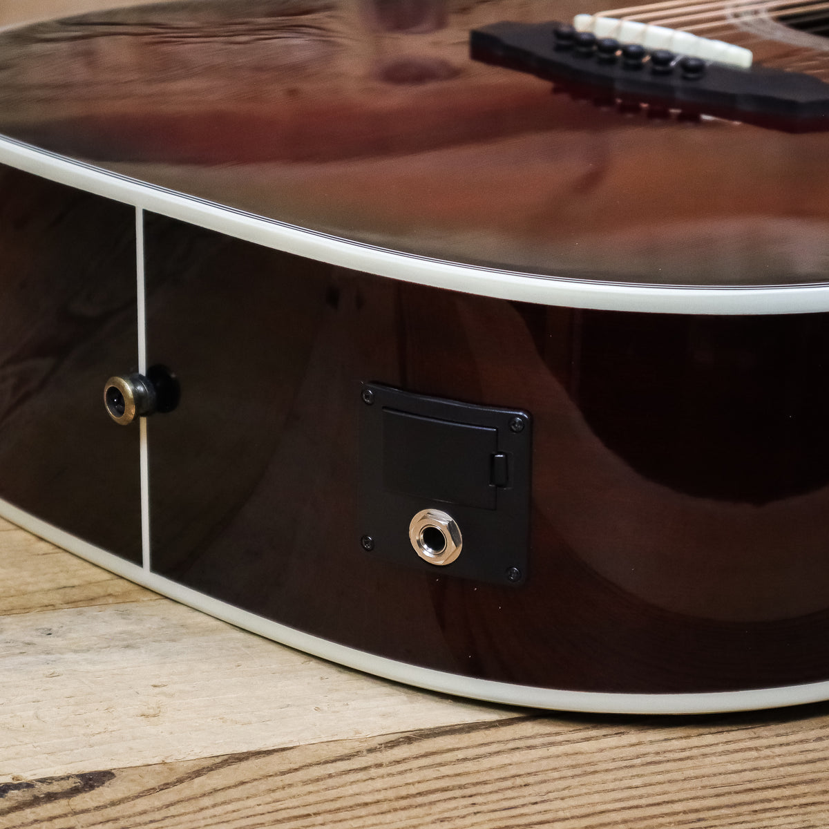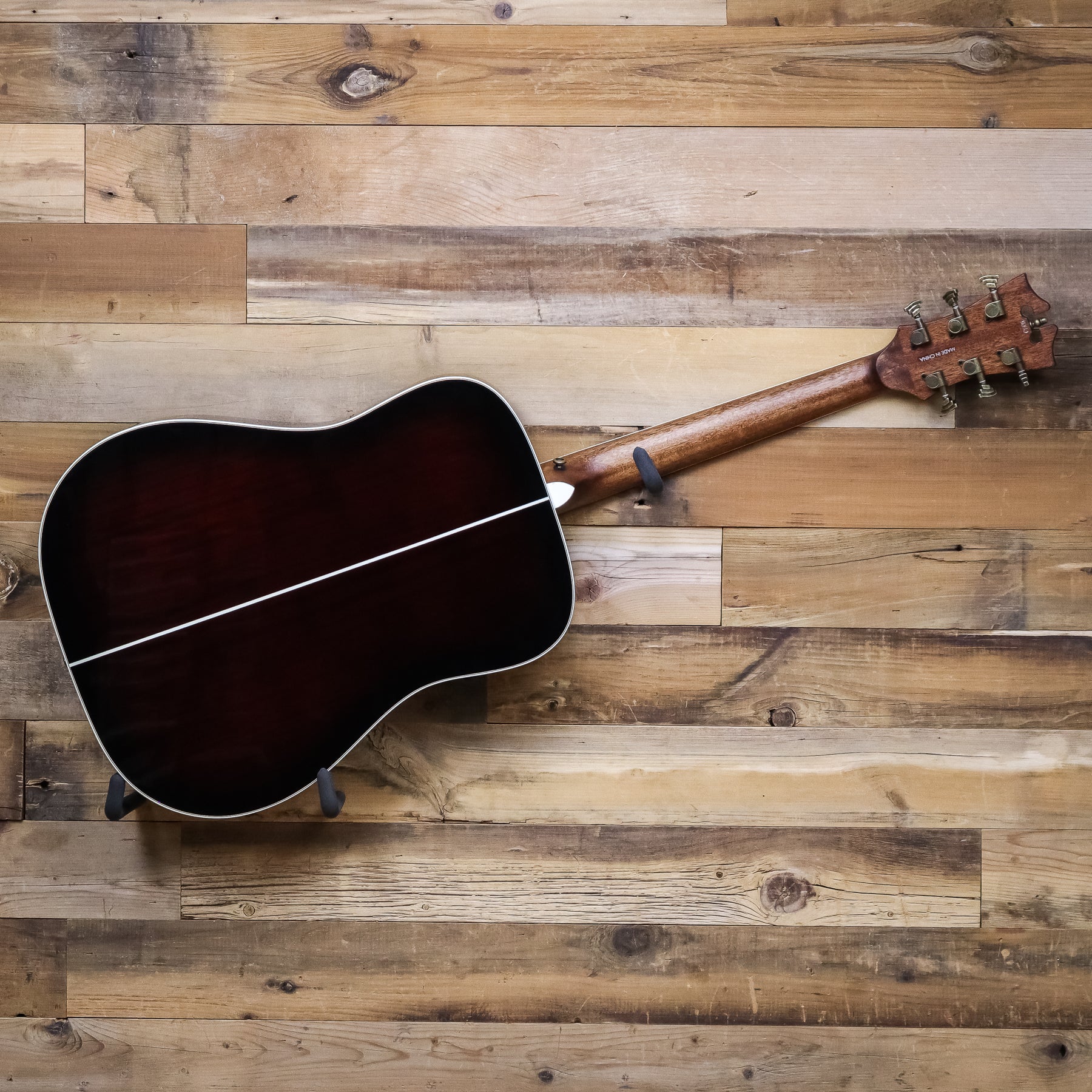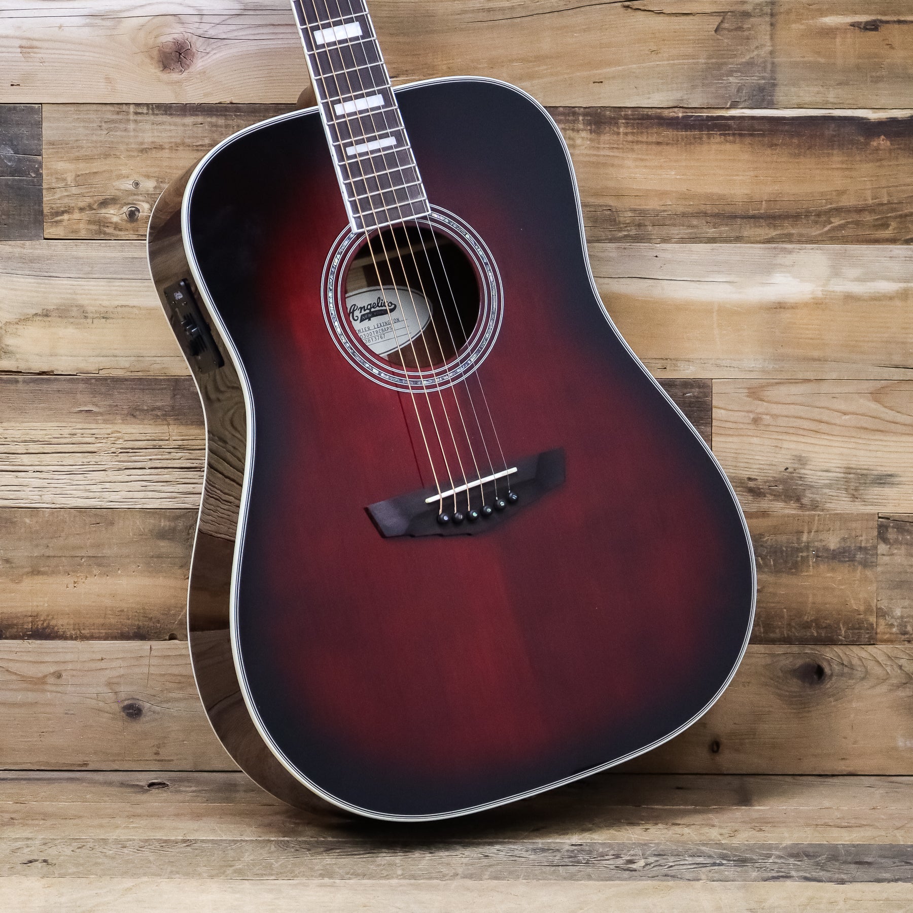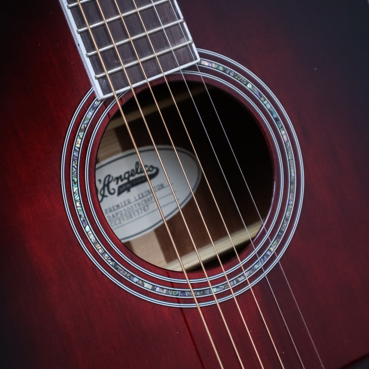 This used D'Angelico Premier Lexington Acoustic Electric Guitar comes in a Trans Black Cherry Burst finish.