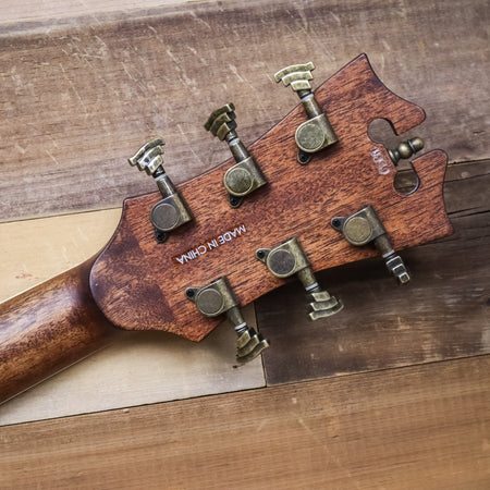 A solid spruce top offers rich, resonant tone, while a slim, satin-finished mahogany neck offers exceptional playablity and prevents the fretting hand from sticking to the neck.