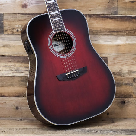 This used D'Angelico Premier Lexington Acoustic Electric Guitar comes in a Trans Black Cherry Burst finish.