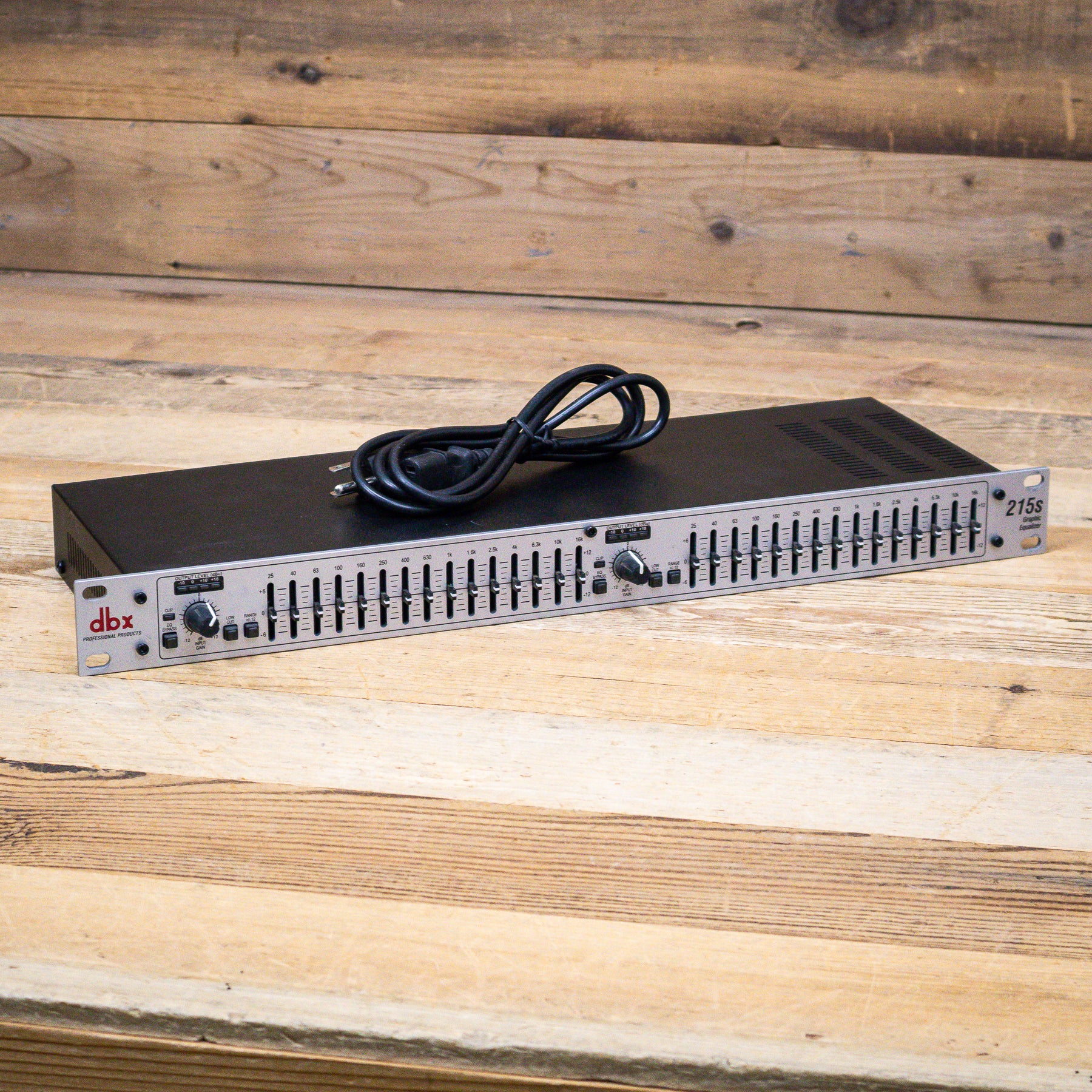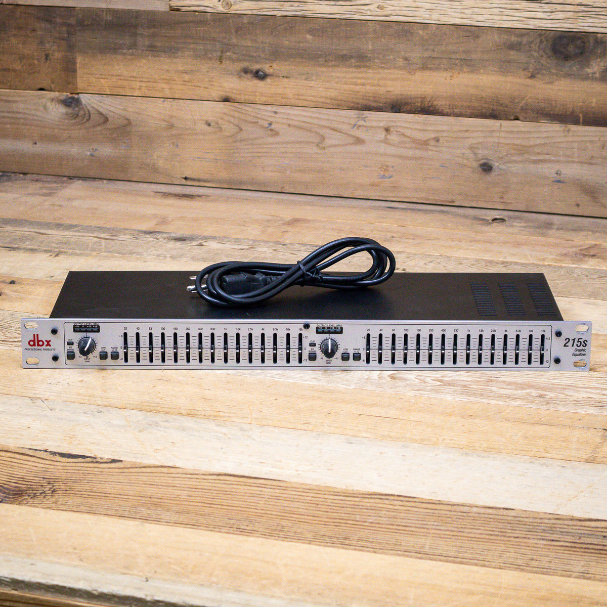 This used DBX 215s 2-Channel 15-Band Graphic Equalizer comes with a Power Cable.