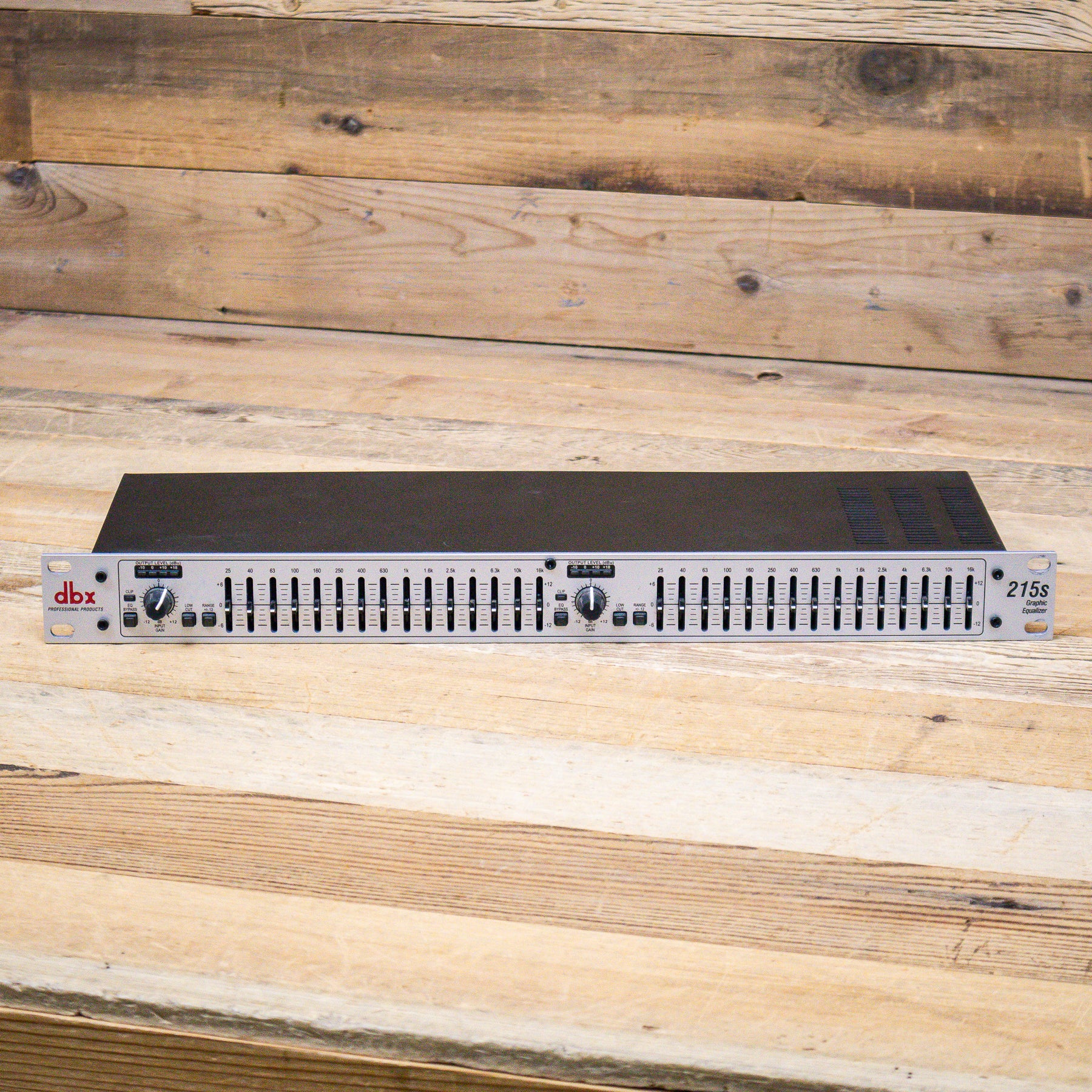 The dbx 215s includes two 15-band channels of 2/3-octave equalization, ±12 dB input gain, switchable ±6 dB or ±12 dB boost/cut range, 20mm nonconductive sliders, an intuitive user interface, and output level metering. From its extended 10Hz to 50kHz frequency response and 112 dB dynamic range to the quality componentry and meticulous attention to detail, the 215s offers exceptional sound and rugged reliability that guarantees you will always sound your best.