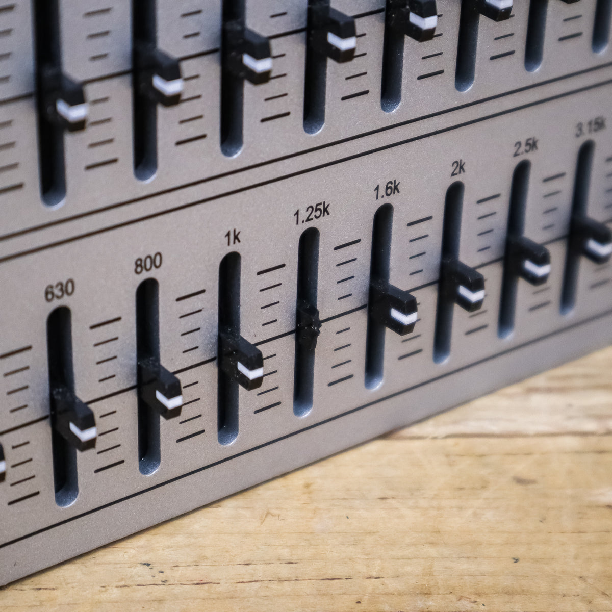 This equalizer is in good condition with normal cosmetic wear. One fader is chipped, but still works perfectly and still sticks out of the face of the unit so it adjust as easy as the other faders. This unit has been fully tested and works as it should. Please see pictures for details on item condition, only what is pictured is included.