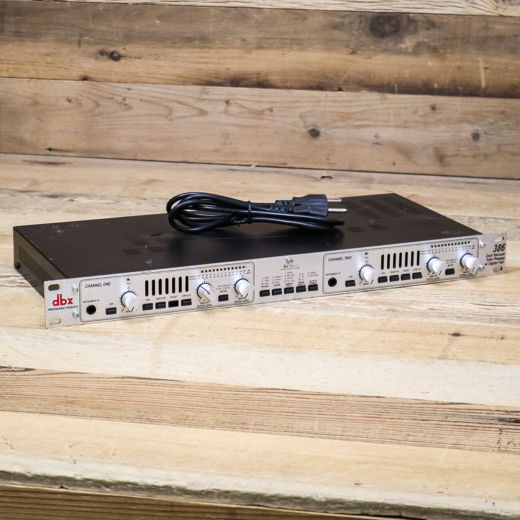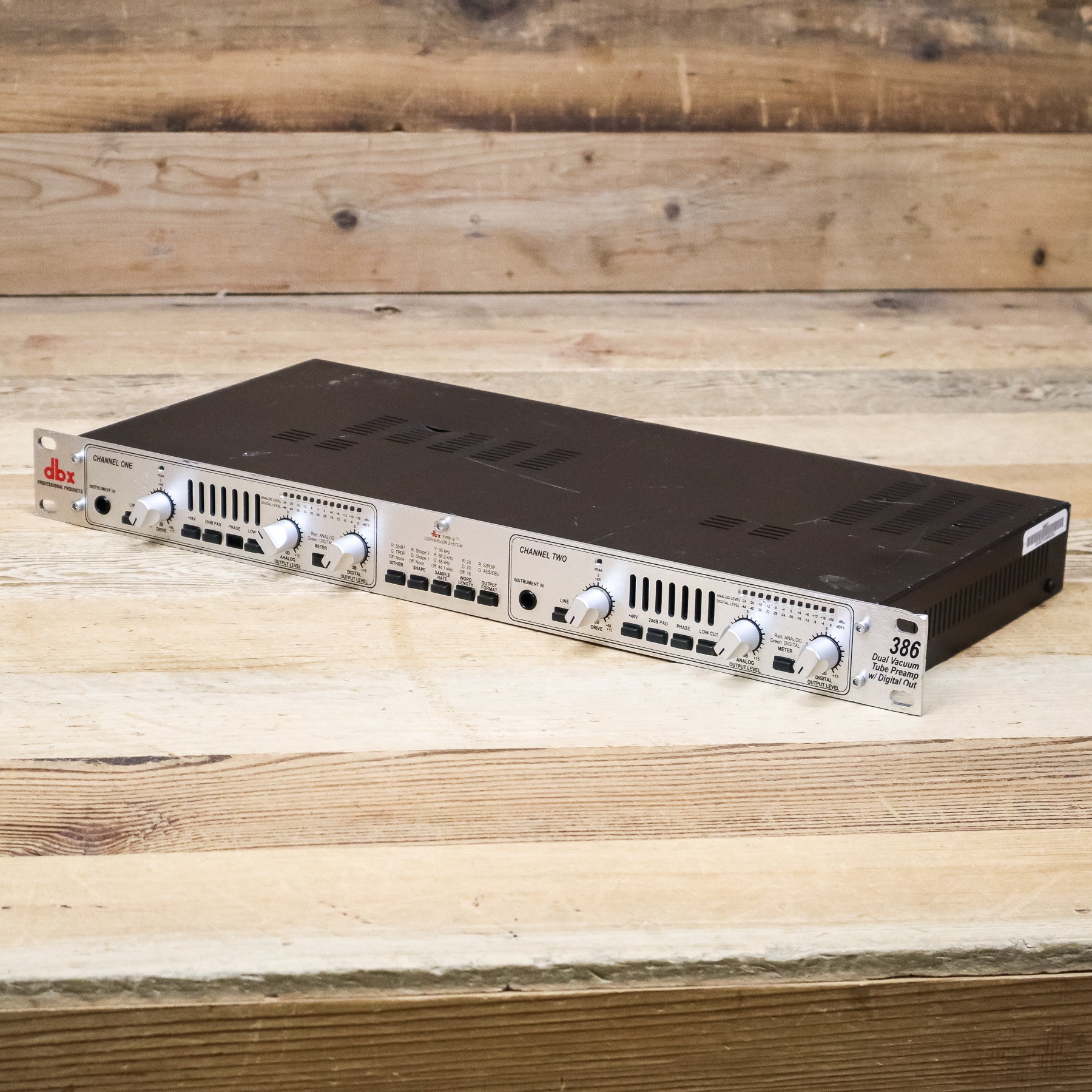 The Silver Series 386 dual channel tube mic preamp puts the best of both worlds into one affordable package by combining the warmth of the irreplaceable vacuum tube with the proprietary dbx Type IV conversion system. The 386 boasts many of the same features as other products in the Silver Series, such as +48V phantom power, a phase invert switch, and low cut filtering; but also includes digital outputs in both AES/EBU, and S/PDIF formats.