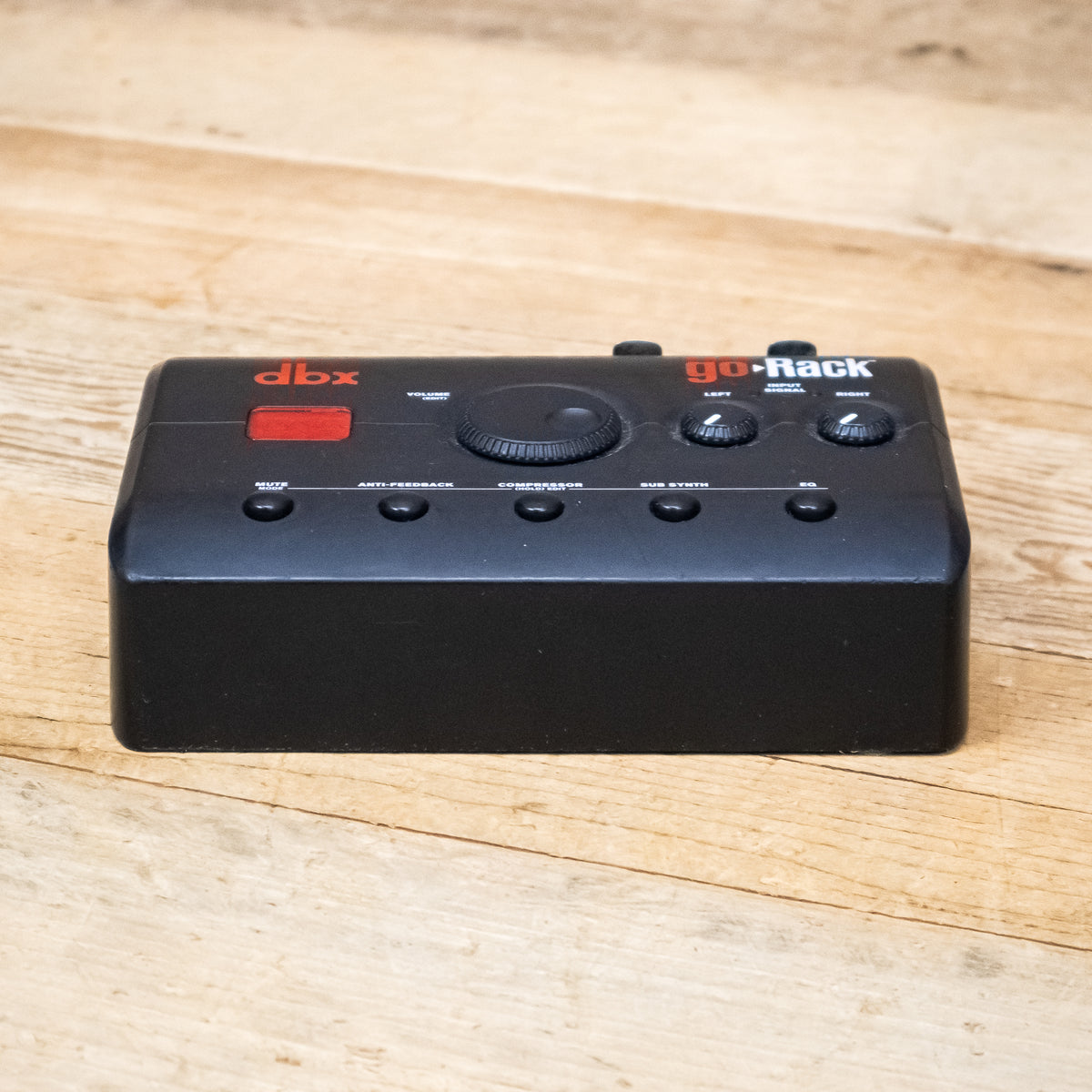 Historically, the convenience of portability in a PA System has meant a compromise in sound quality and fidelity. To answer that call, dbx is proud to introduce the all-new goRack™ Portable Performance Processor. The goRack is an easy-to-use portable speaker processor. Based on our industry-leading DriveRack® Series, the goRack sits next to a set of powered speakers and provides powerful signal processing including Anti-Feedback (based on our AFS™ Advanced Feedback Suppression algorithm), Compression, Sub-Harmonic Synth and EQ. Each processing function is easily enabled or disabled via the dedicated function buttons, and settings are adjusted via goRack's large data wheel.