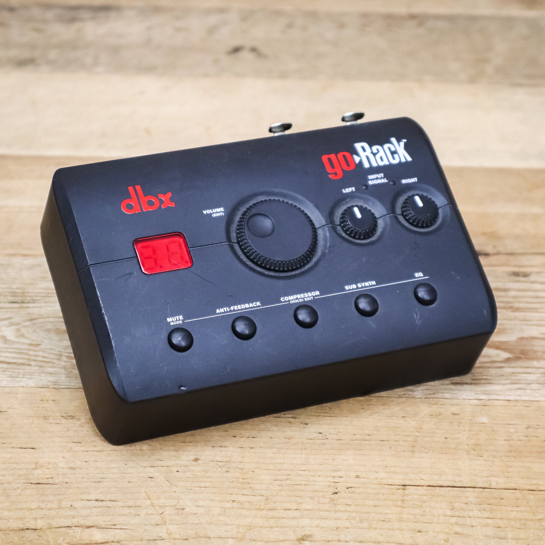 Historically, the convenience of portability in a PA System has meant a compromise in sound quality and fidelity. To answer that call, dbx is proud to introduce the all-new goRack™ Portable Performance Processor. The goRack is an easy-to-use portable speaker processor. Based on our industry-leading DriveRack® Series, the goRack sits next to a set of powered speakers and provides powerful signal processing including Anti-Feedback (based on our AFS™ Advanced Feedback Suppression algorithm), Compression, Sub-Harmonic Synth and EQ. Each processing function is easily enabled or disabled via the dedicated function buttons, and settings are adjusted via goRack's large data wheel.