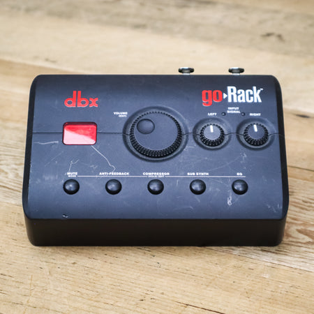 The goRack represents the best of dbx's DriveRack processing in its purest, most simplified form all housed in a sleek, compact form factor that fits in your hand, or back pocket. The goRack is perfect for applications from a mixer, or with its dual XLR inputs and Aux input, it can be used as a standalone performance processor/mixer for the solo artist.