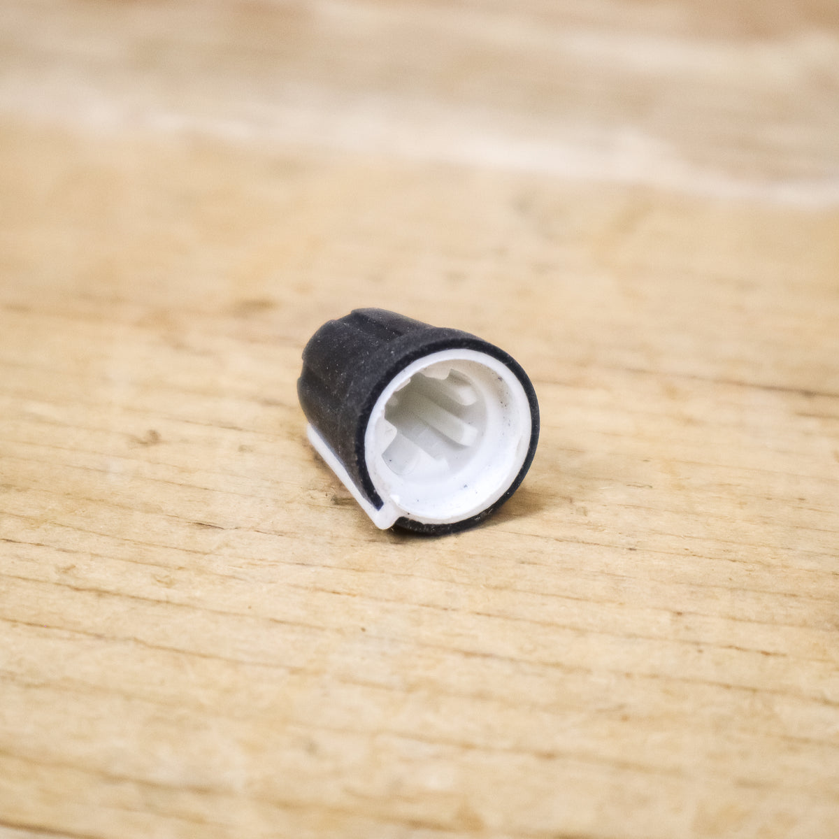This is an original replacement Black Knob with White Indicator Line.