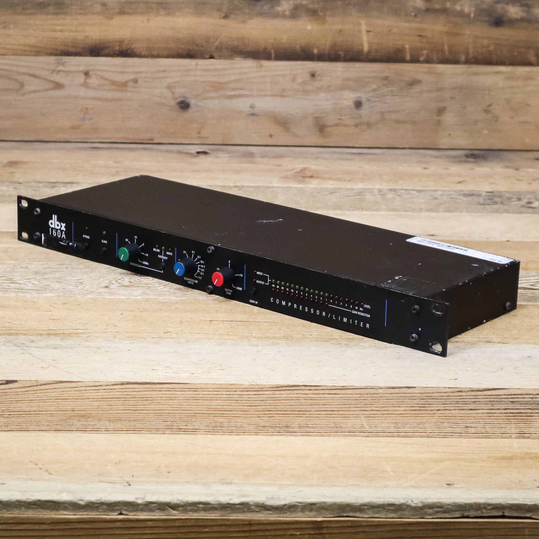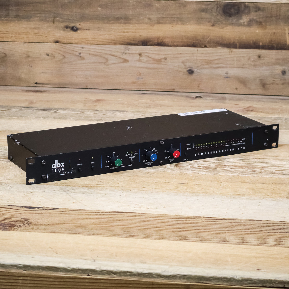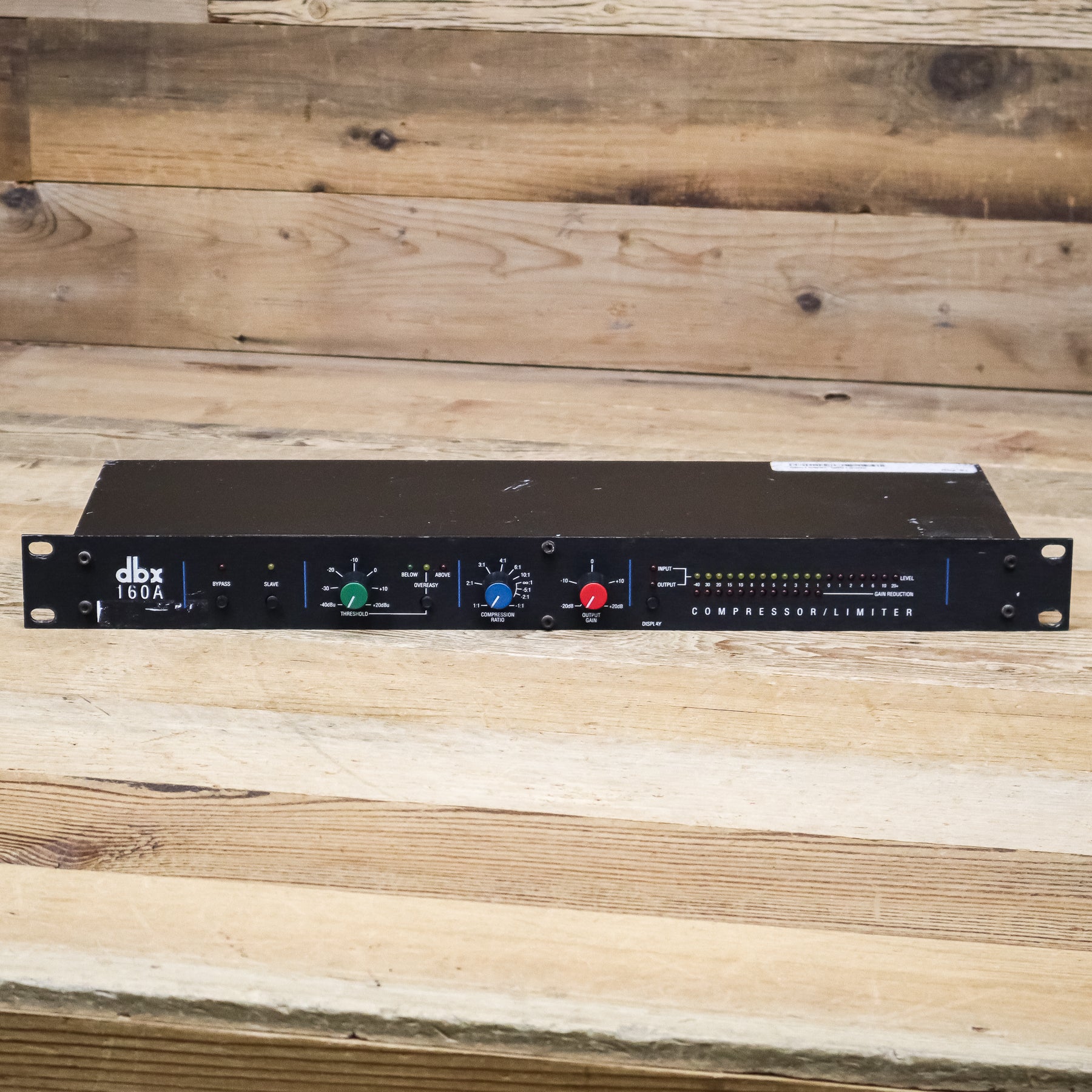 Featuring switch-selectable OverEasy and Hard Knee compression curves along with extremely wide-ranging threshold, ratio and output controls, the dbx 160A is up to any task. True RMS level detection provides the most natural-sounding dynamics processing available, from subtle compression to "brick wall" peak limiting. Choose low ratios and OverEasy compression to transparently smooth out fluctuating vocal and instrumental levels. Or use the 160A's Hard Knee compression and high ratios (up to and beyond :1 and over 60dB gain reduction) for bombproof protection against overload distortion in digital recording, P.A. systems and broadcast signals. The 160A is fully compatible with +4/-10dB and balanced/ unbalanced systems, and its electronically balanced output stage is an outstanding line driver for long cable runs (an output transformer is optional). The 19-segment, switchable input/ output LED metering can be easily calibrated to any operating level. 12-segment gain reduction LEDs provide precise analysis at a glance.