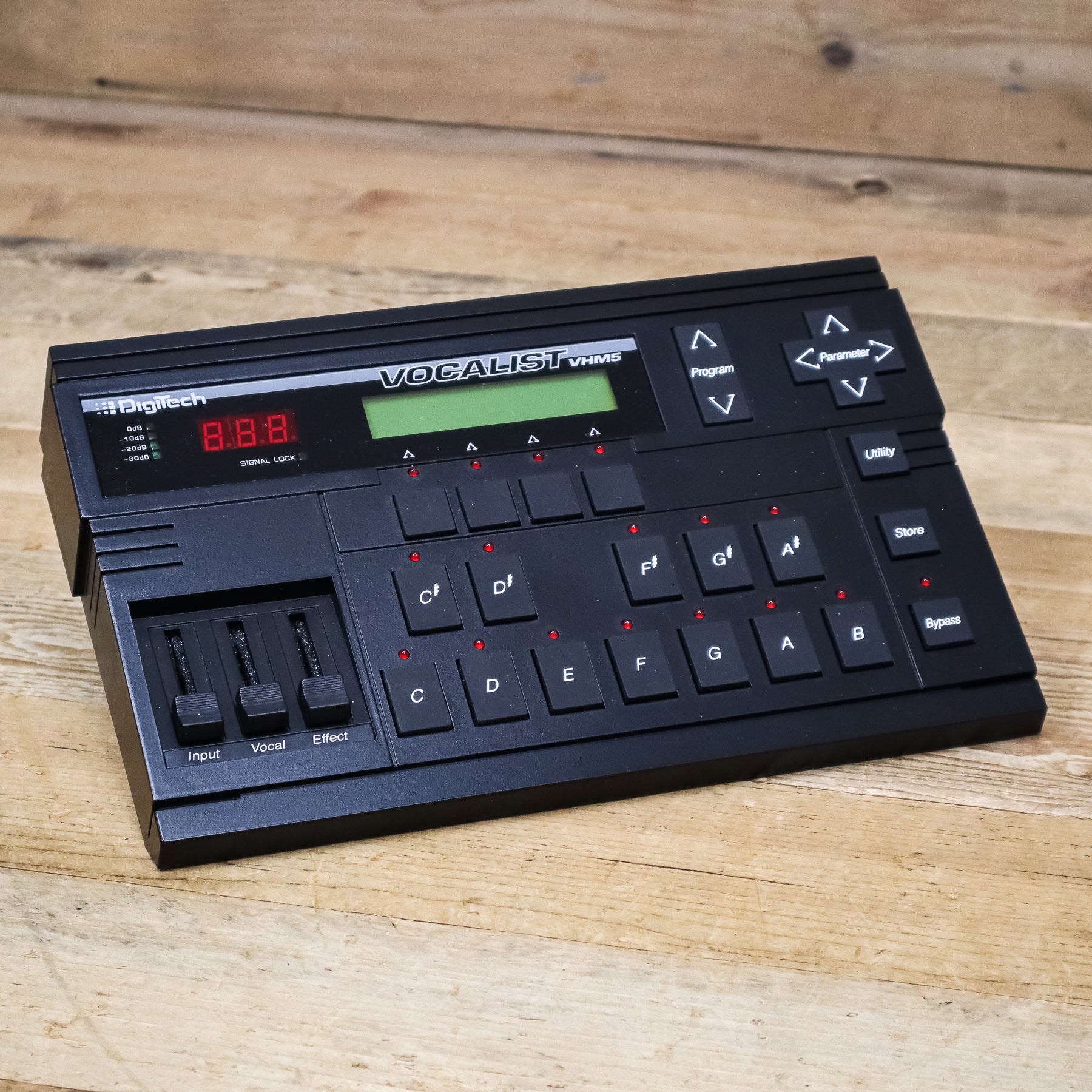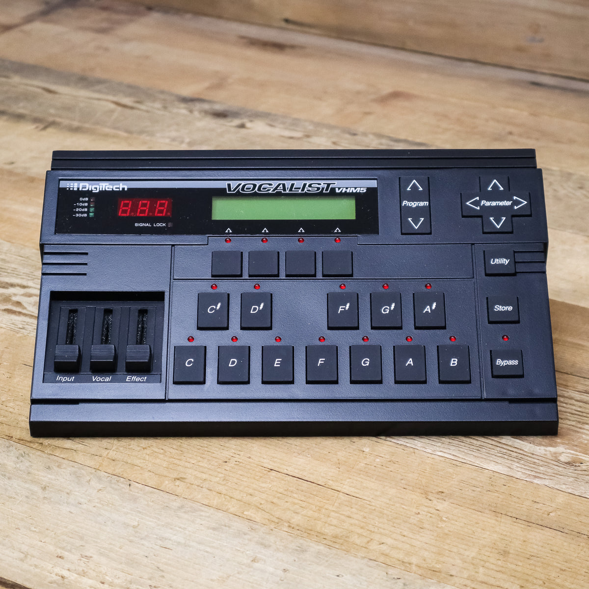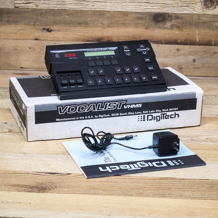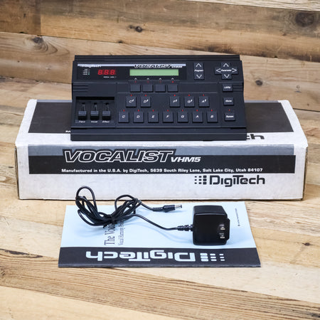 This used Digitech Vocalist VHM5 5-part Digital Vocal Harmony Processor comes with the Original Box, Manual, and a Power Adapter.