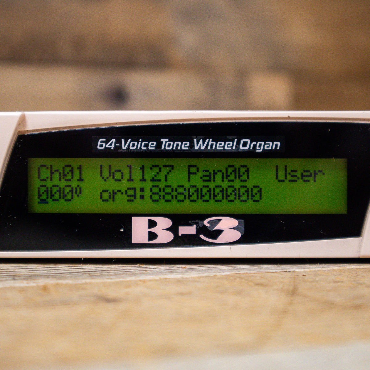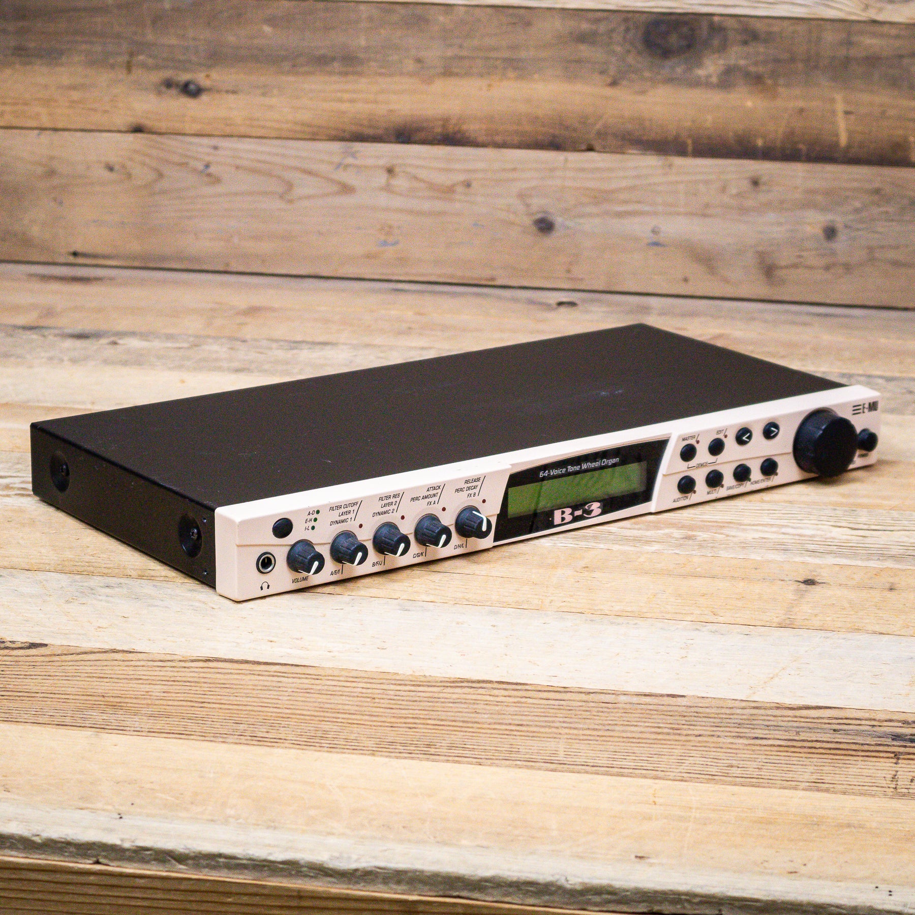 This module is designed to deliver the classic sound of the B-3 Tonewheel Organ in a programmable rack module. It does this via 32MB of sampled B-3 sounds at a lot of different drawbar settings. Authentic sounds are completed by the addition of distortion and a rotary speaker (Leslie) emulator, with B-3 like real-time control! There are also 12 assignable real-time front panel controls, and the B-3 is expandable with an additional ROM slot for adding more sounds. This is the best B-3 hardware solution available.