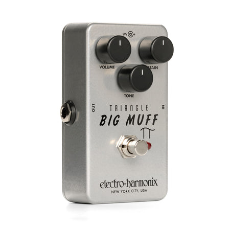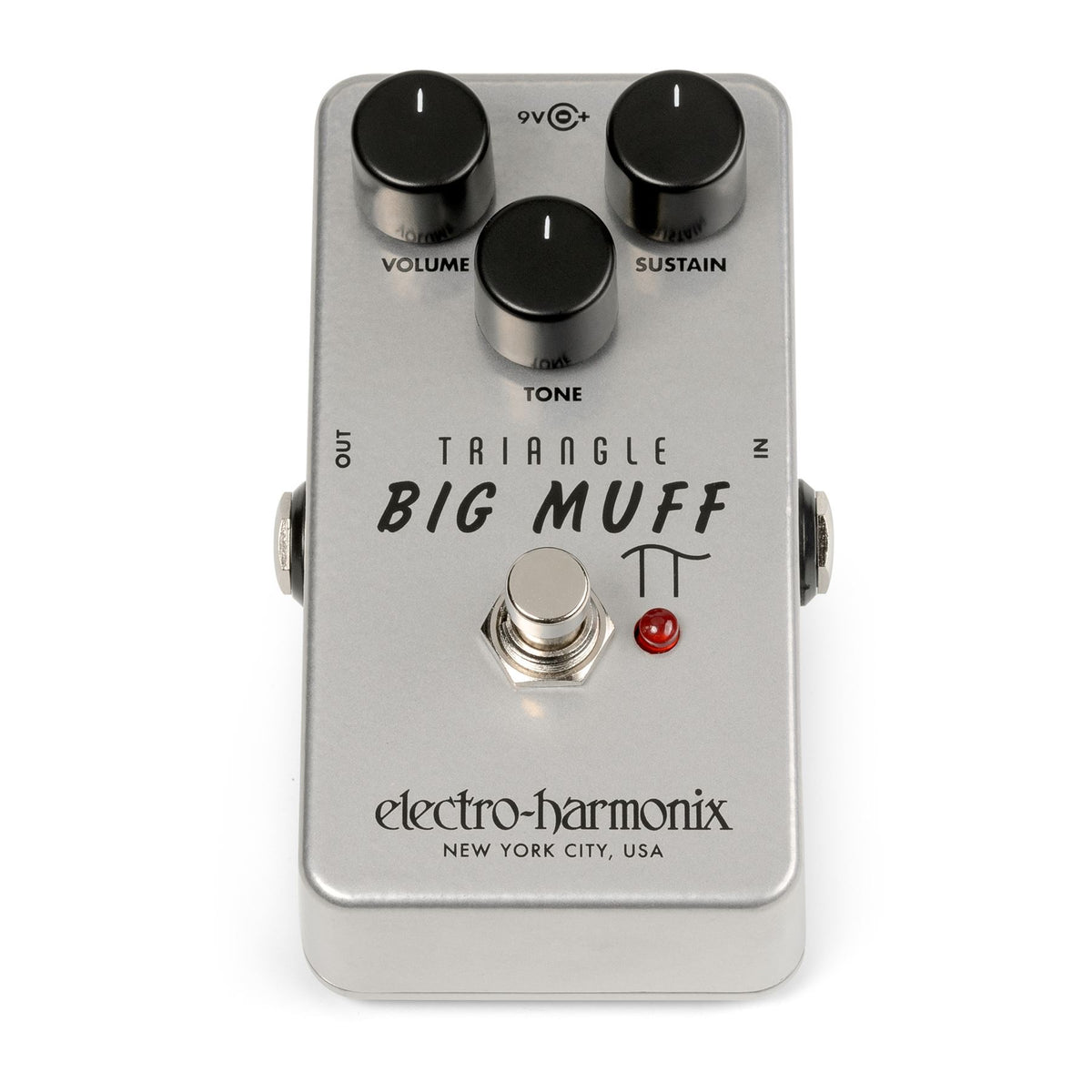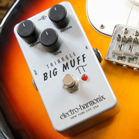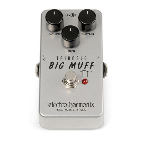 We have reissued the original Version 1 Big Muff and it's dripping with vintage Electro-Harmonix DNA and tone. Dubbed the Triangle Big Muff because of the layout of its Volume, Sustain and Tone controls, this is the one that started it all. The new EHX Triangle Big Muff is a faithful re-creation of the original circa 1969 circuit now housed in a pedalboard friendly, die-cast chassis.