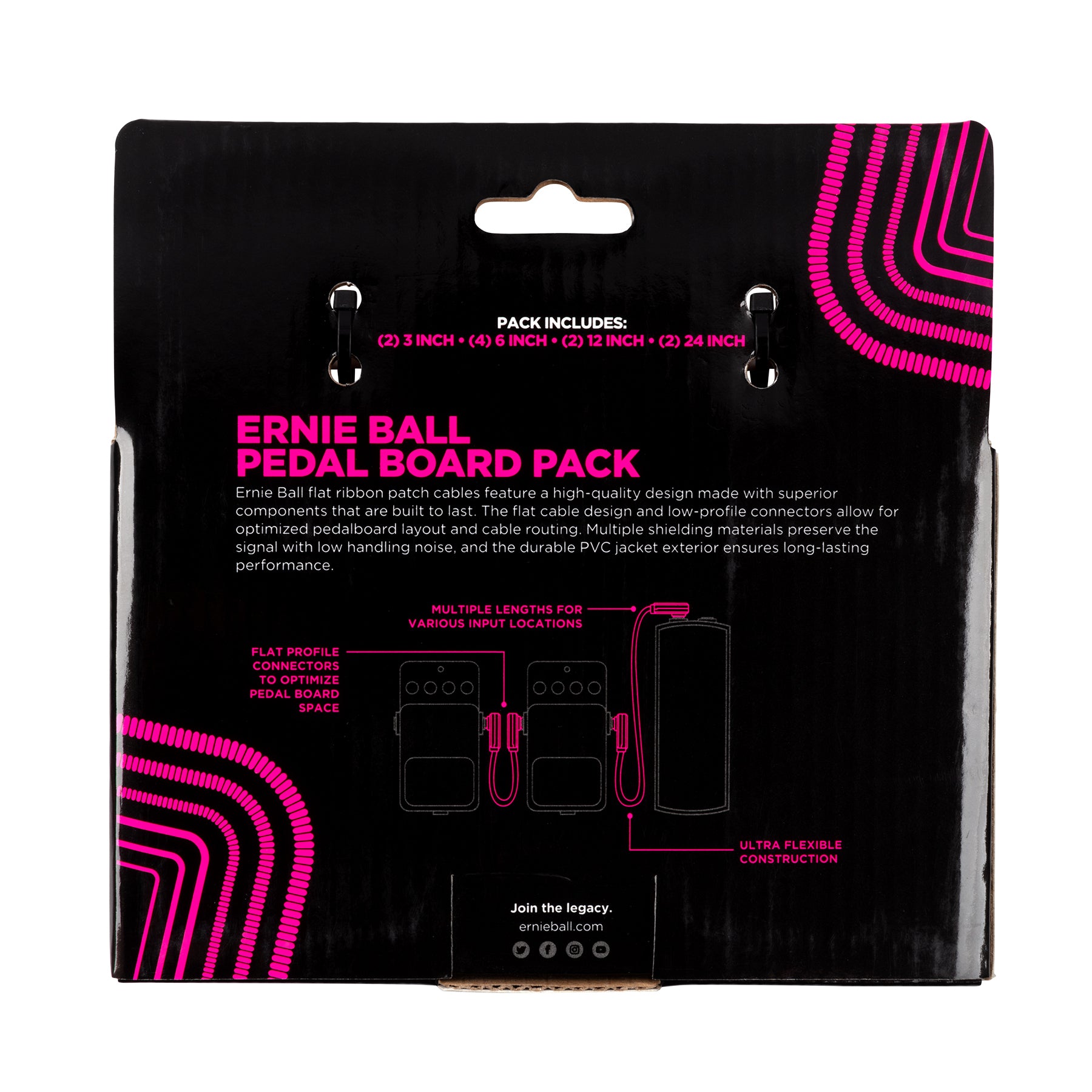 Align them, stack them, bend them, and twist them without compromising these cables’ integrity. Whether you need to make a right turn on the pedal, maneuver around the pedal or underneath it, each little hole and crevice on your pedalboard can be utilized.