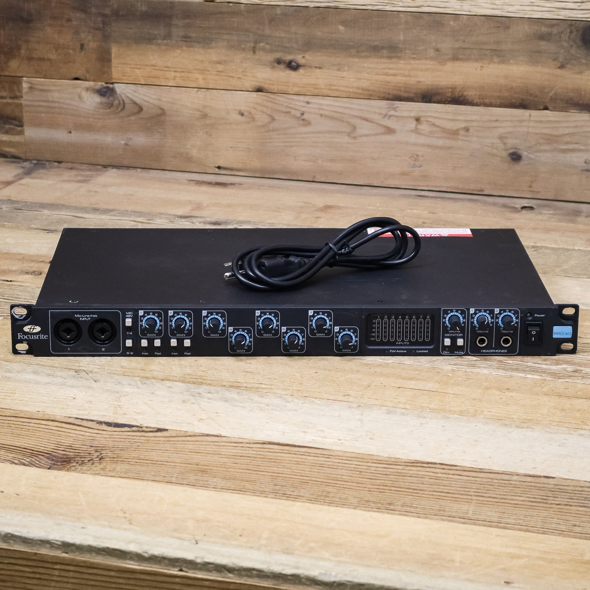 This used Focusrite Saffire Pro 40 FireWire Audio Interface has Neutrik connectors and comes with an Optical Cable and a Power Cable. No software is included.