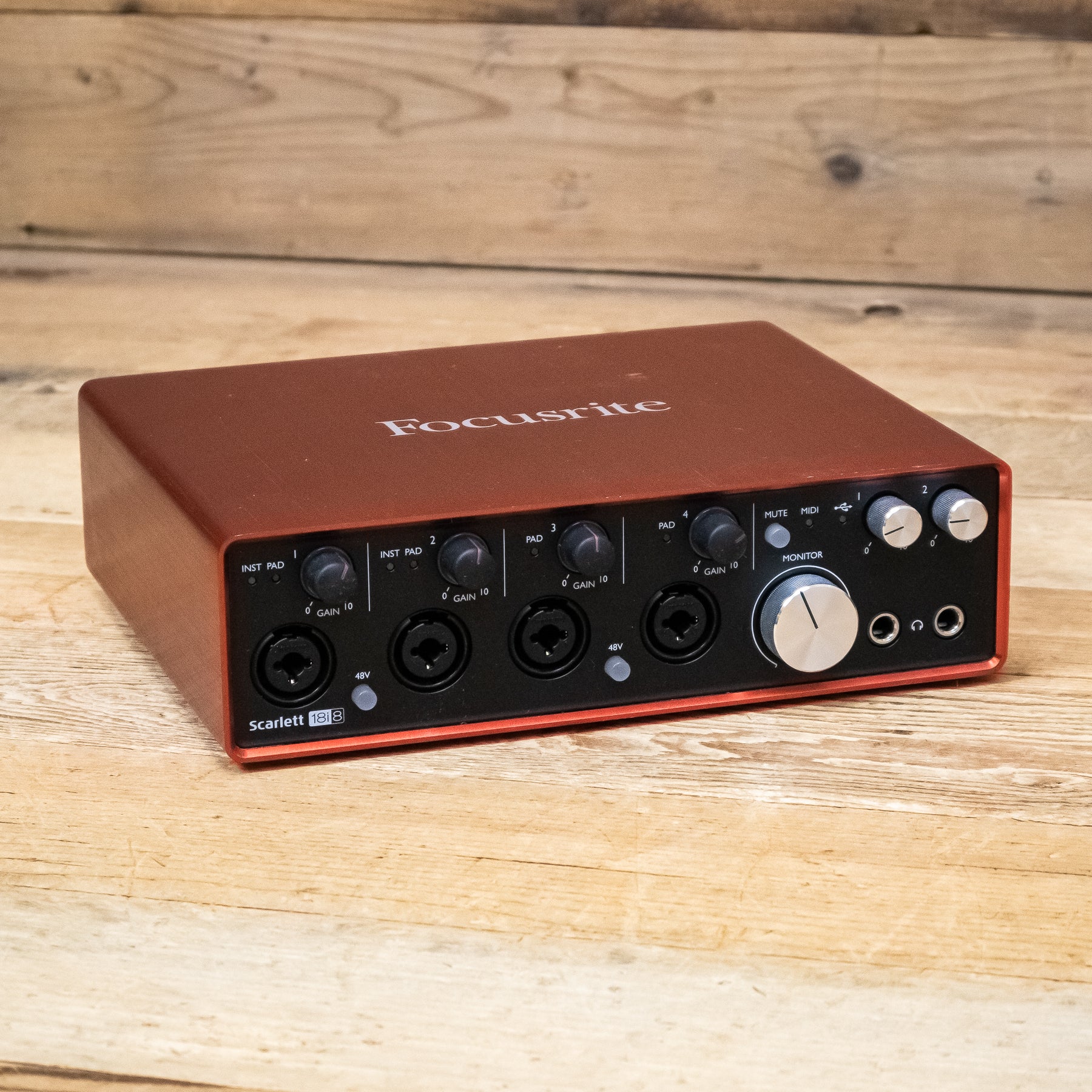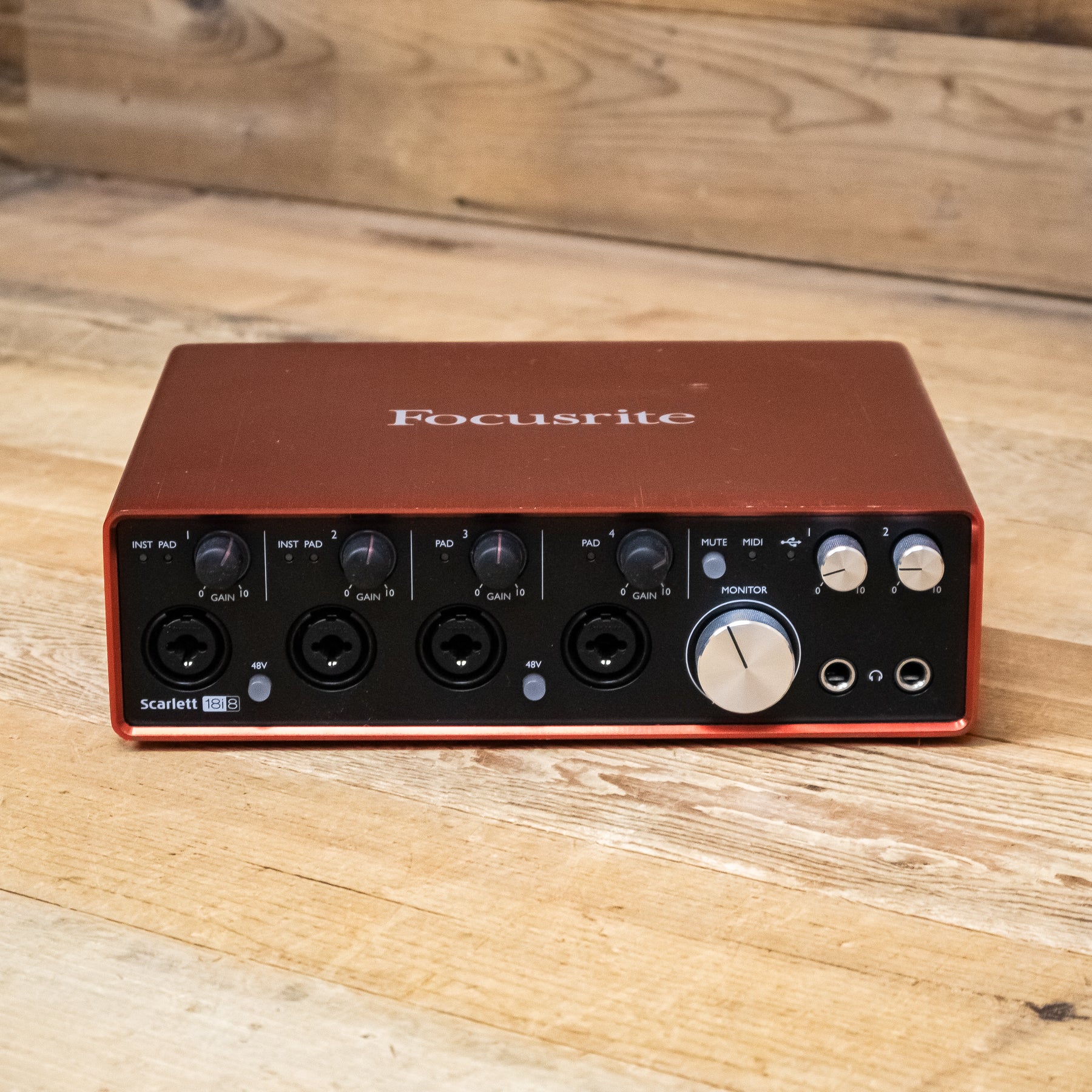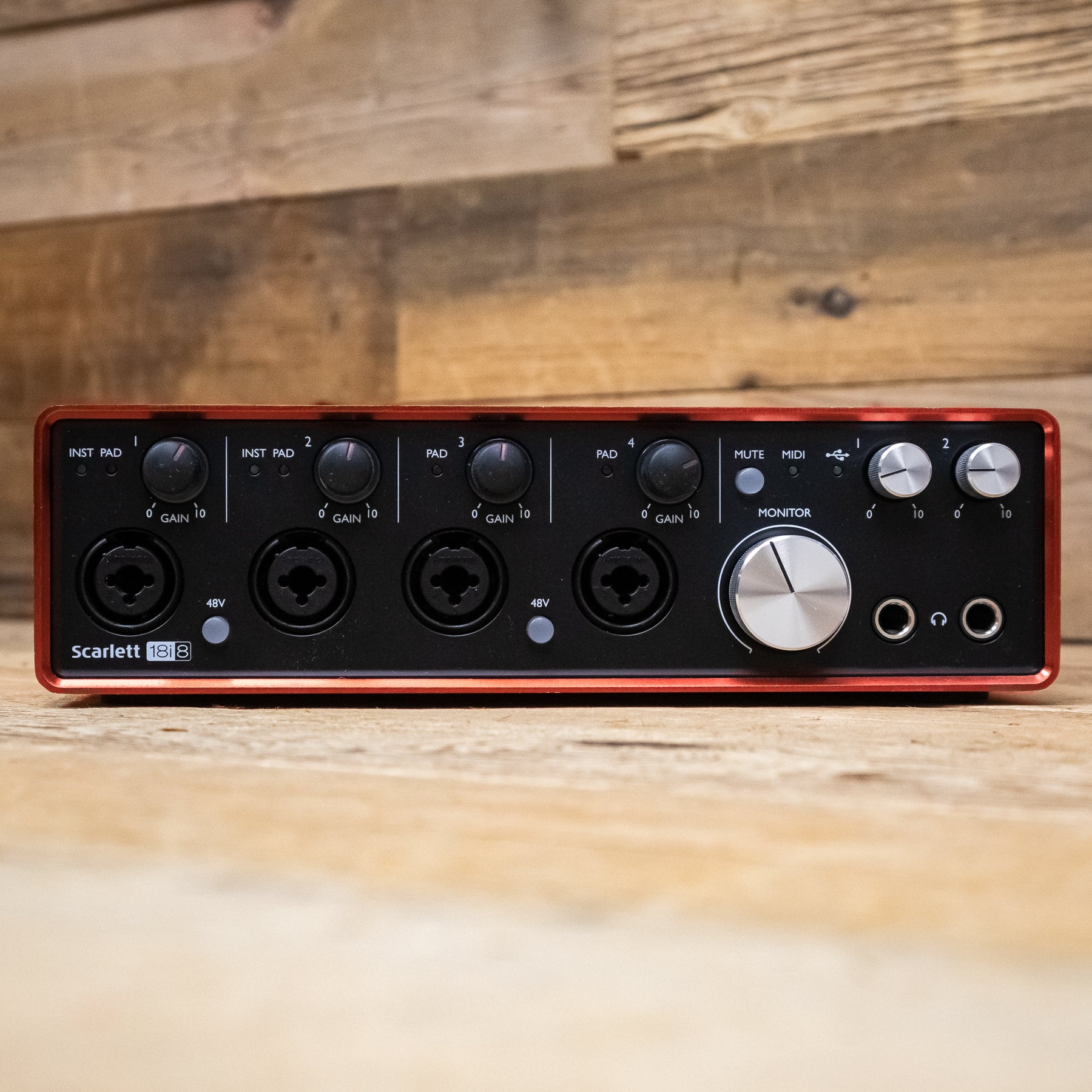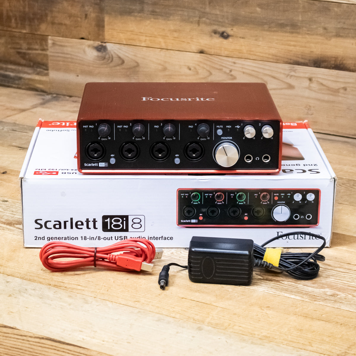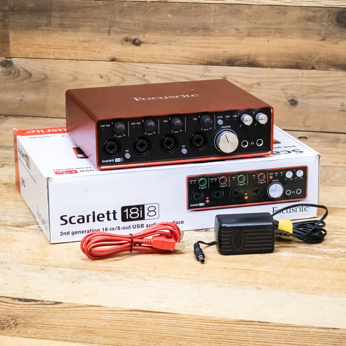 This used Focusrite Scarlett 18i8 2nd Gen USB Audio Interface comes with the Original Box, USB Cable, and a Power Adapter.