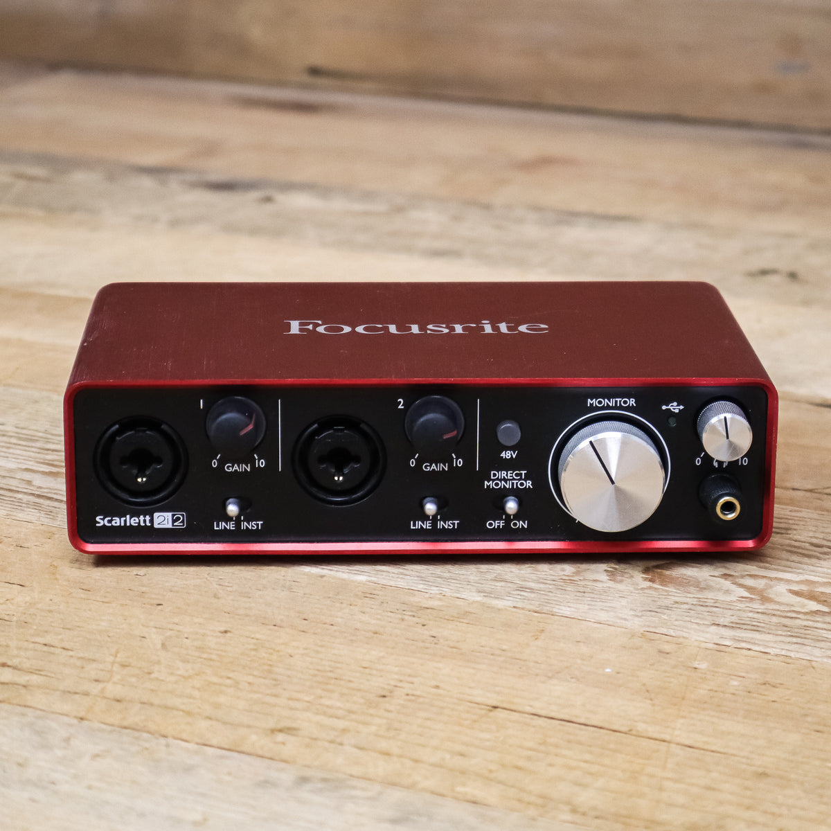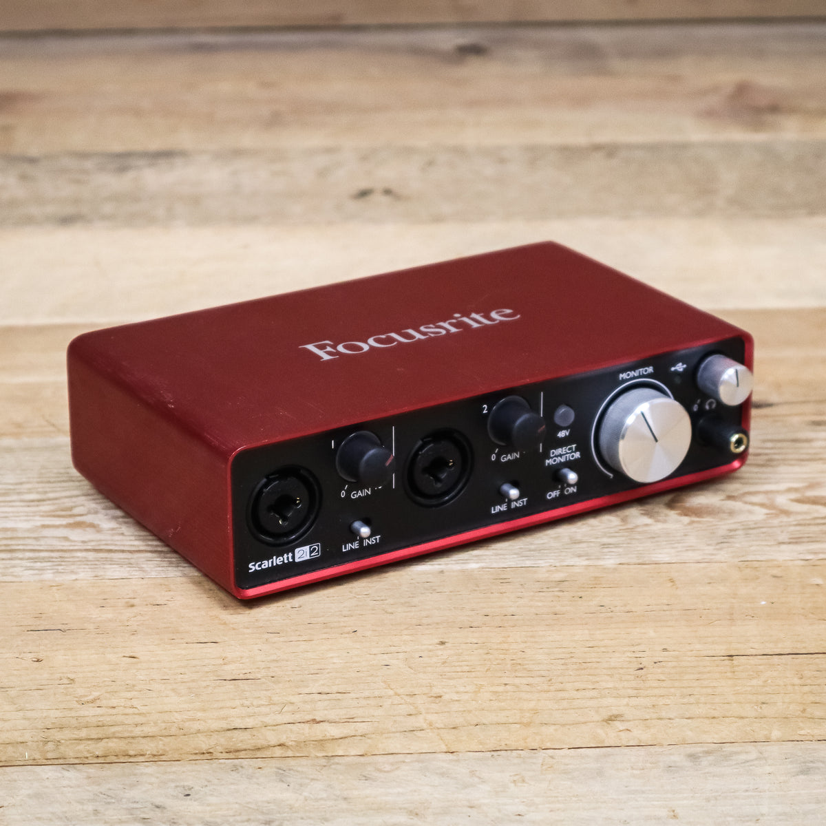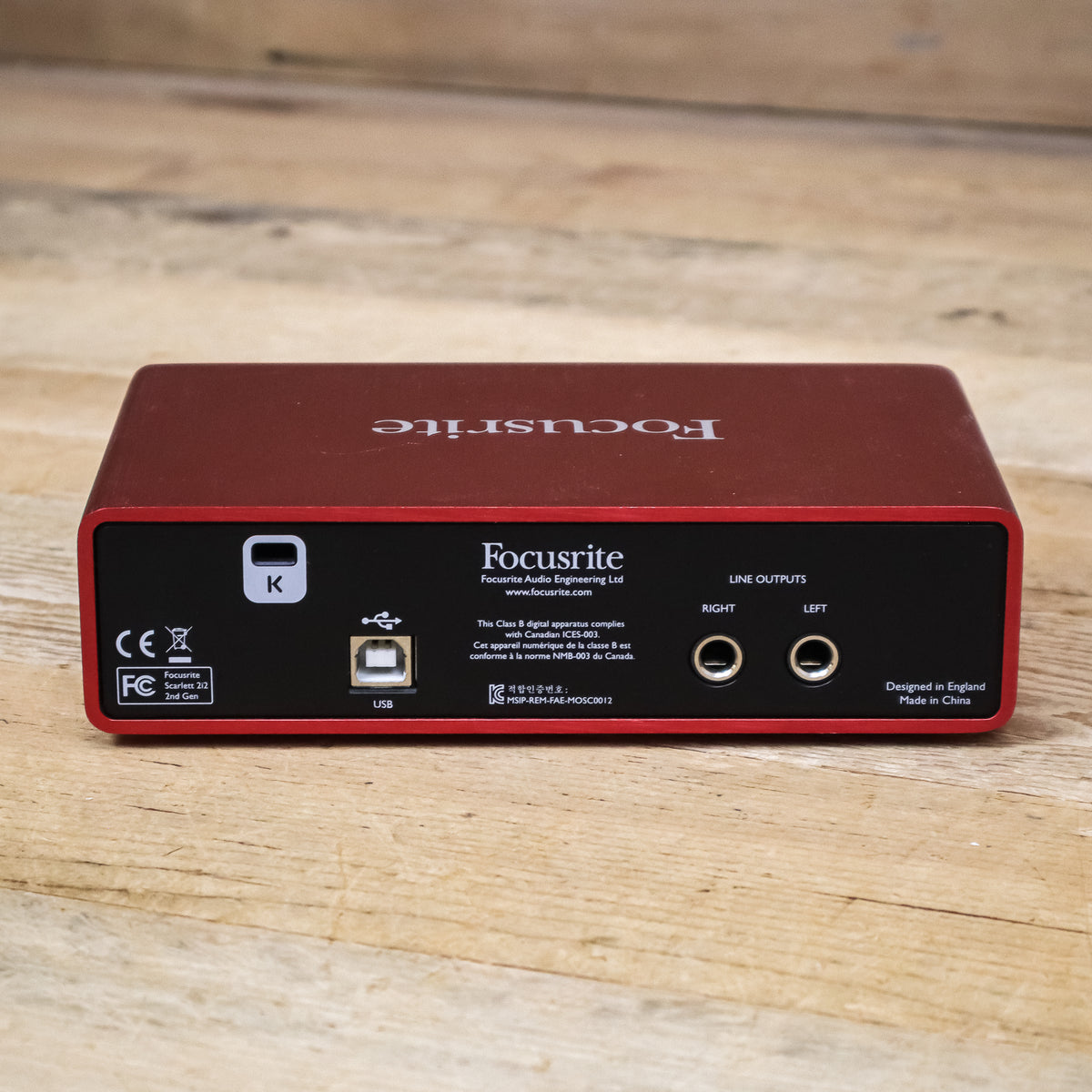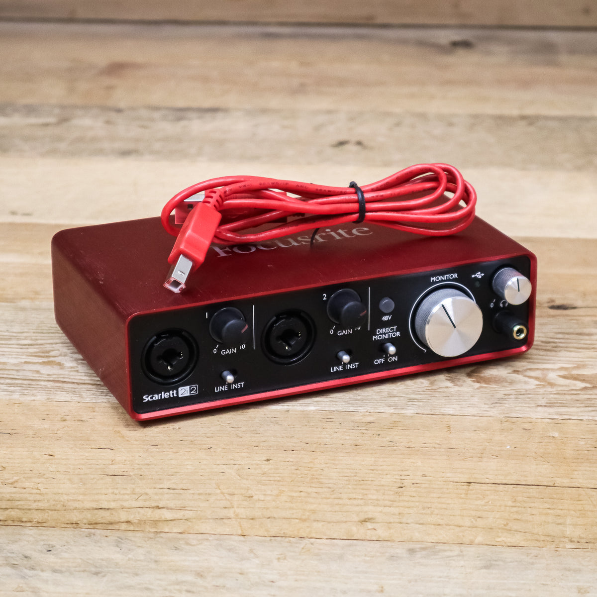 This used Focusrite Scarlett 2i2 2nd Gen USB Audio Interface comes with a USB Cable.