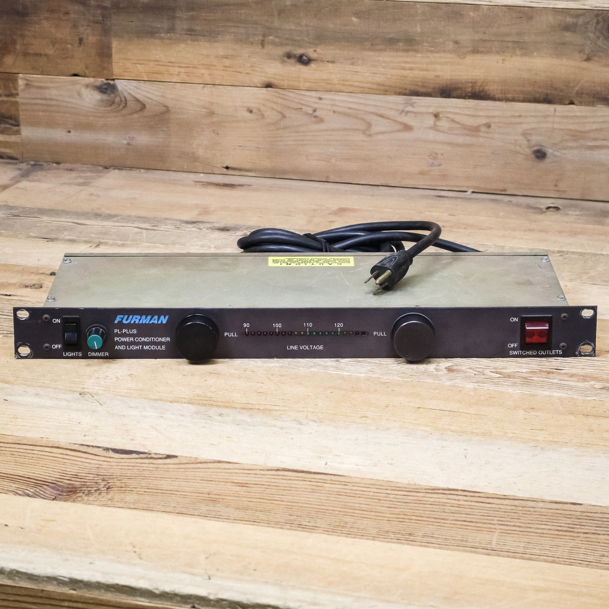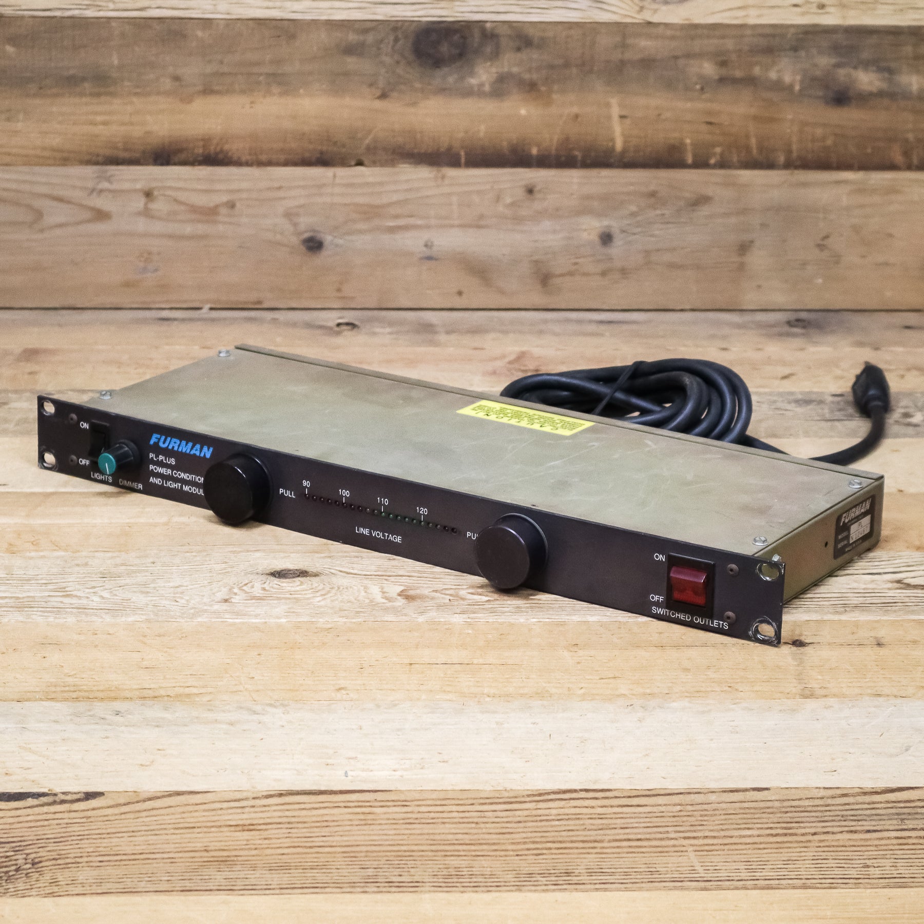 This used Furman PL Plus Power Conditioner comes with an attached Power Cable.