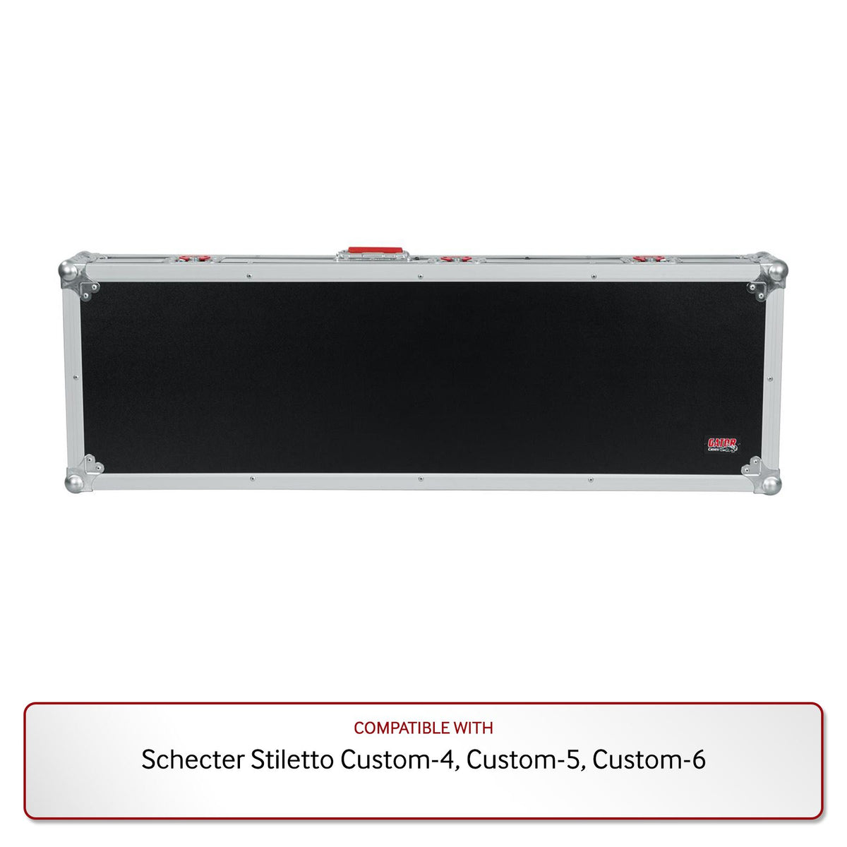 This Gator Bass Road Case is compatible with Schecter Stiletto Custom-4, Custom-5, and Custom-6.