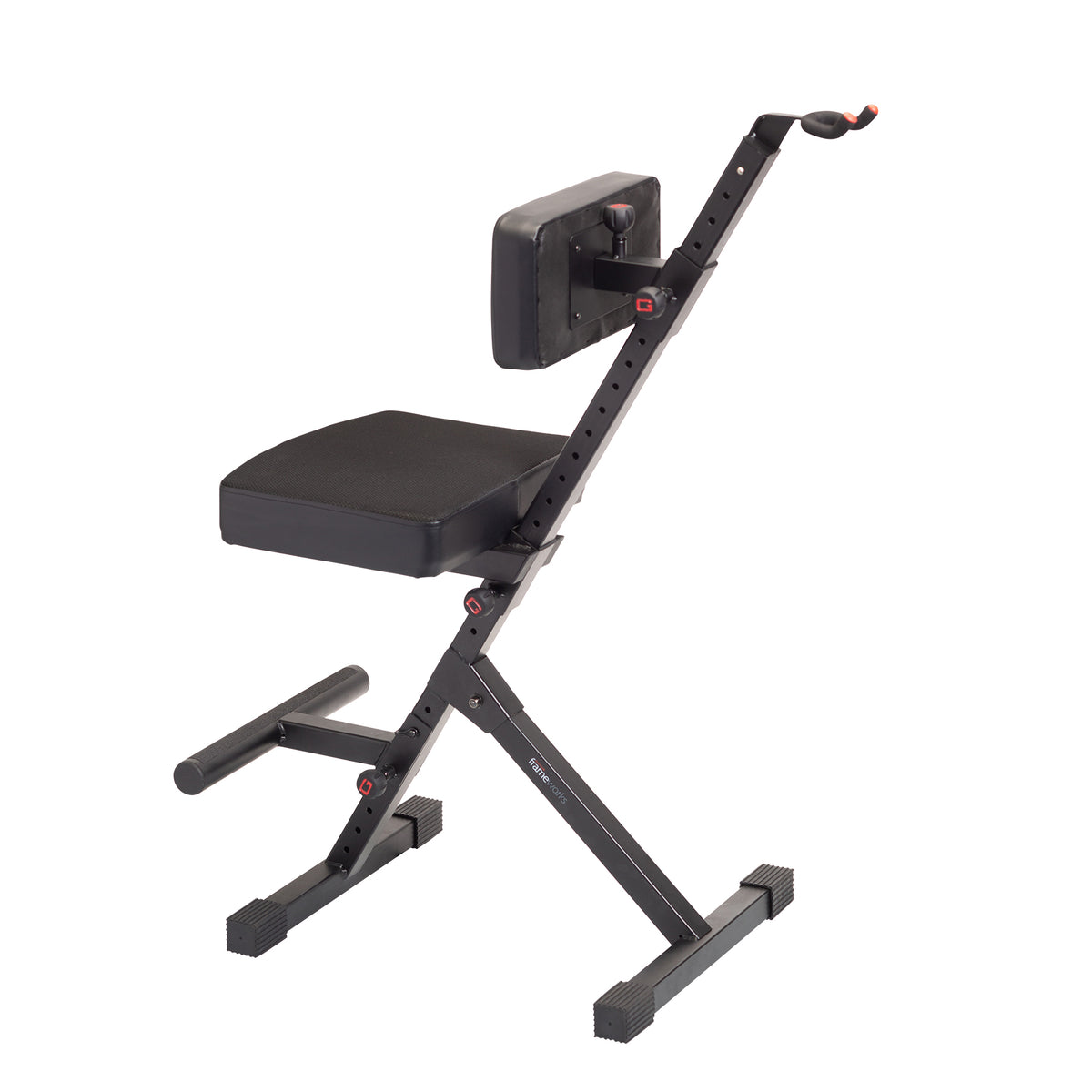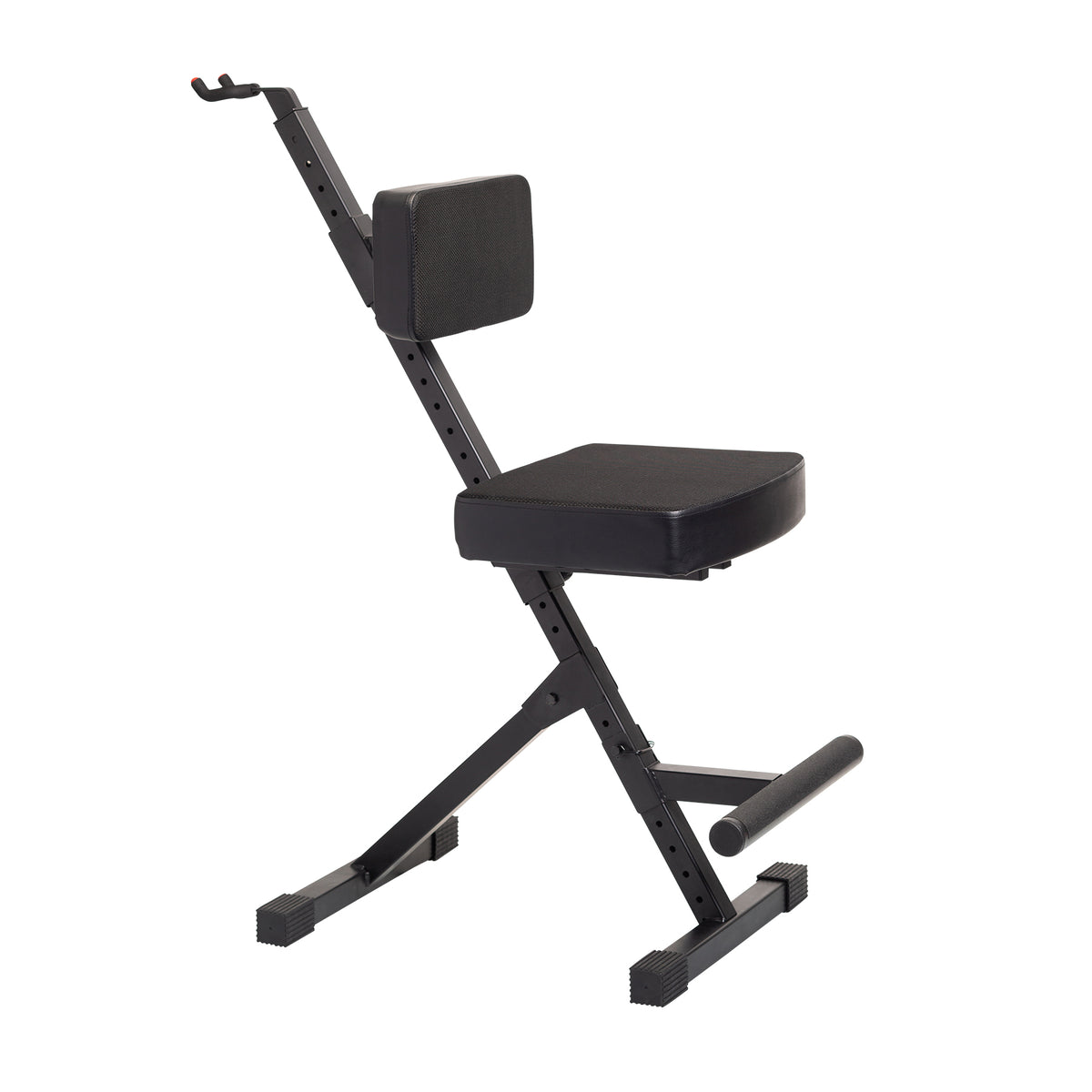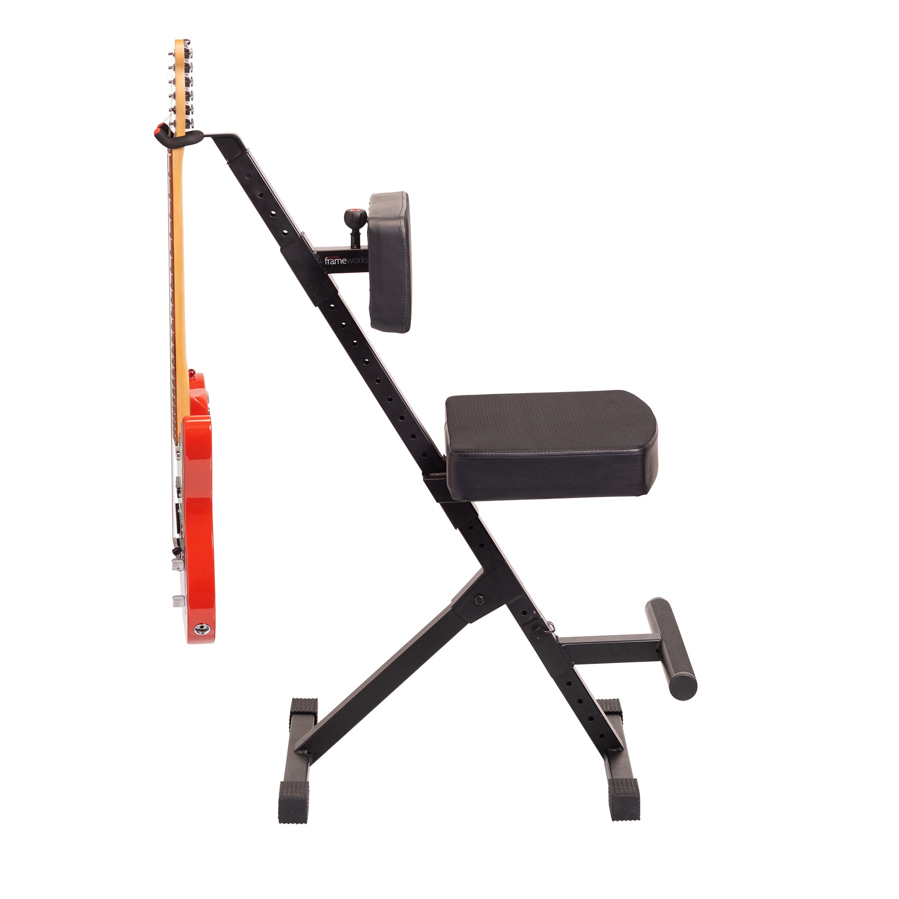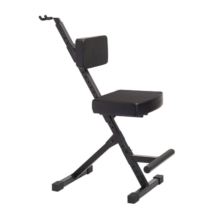 Deluxe Guitar Player Seat with 3-Point Height-Adjustment System and Rear Guitar Hanger.