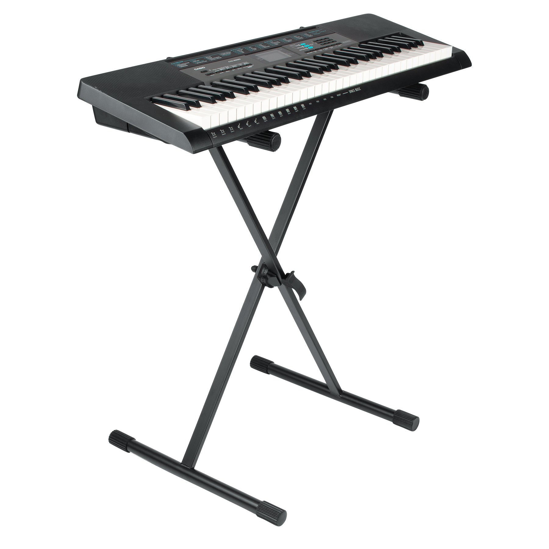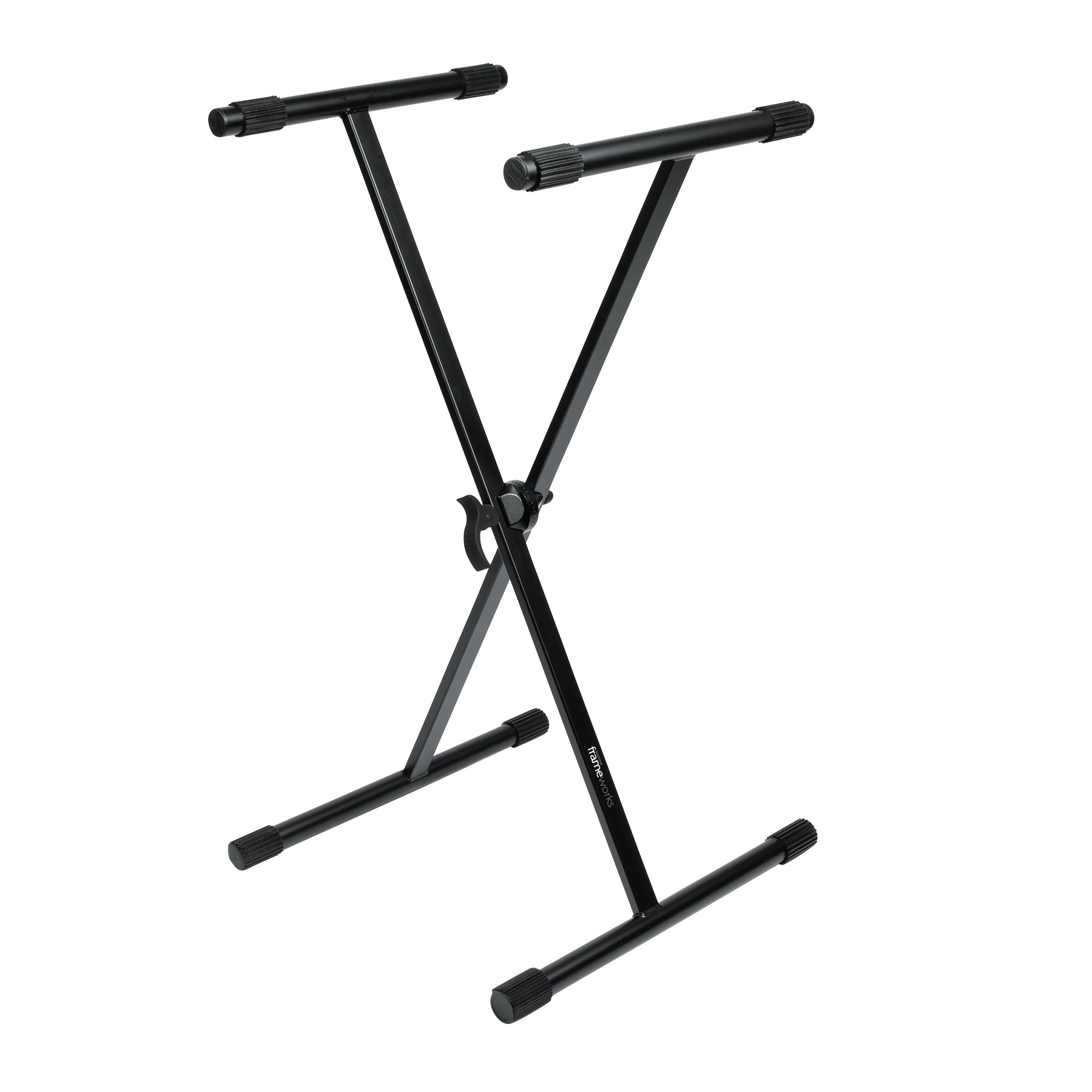 Frameworks adjustable "X" style keyboard stand with rubberized leveling foot.