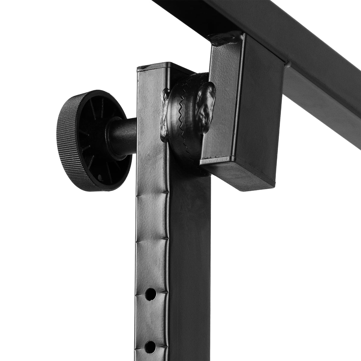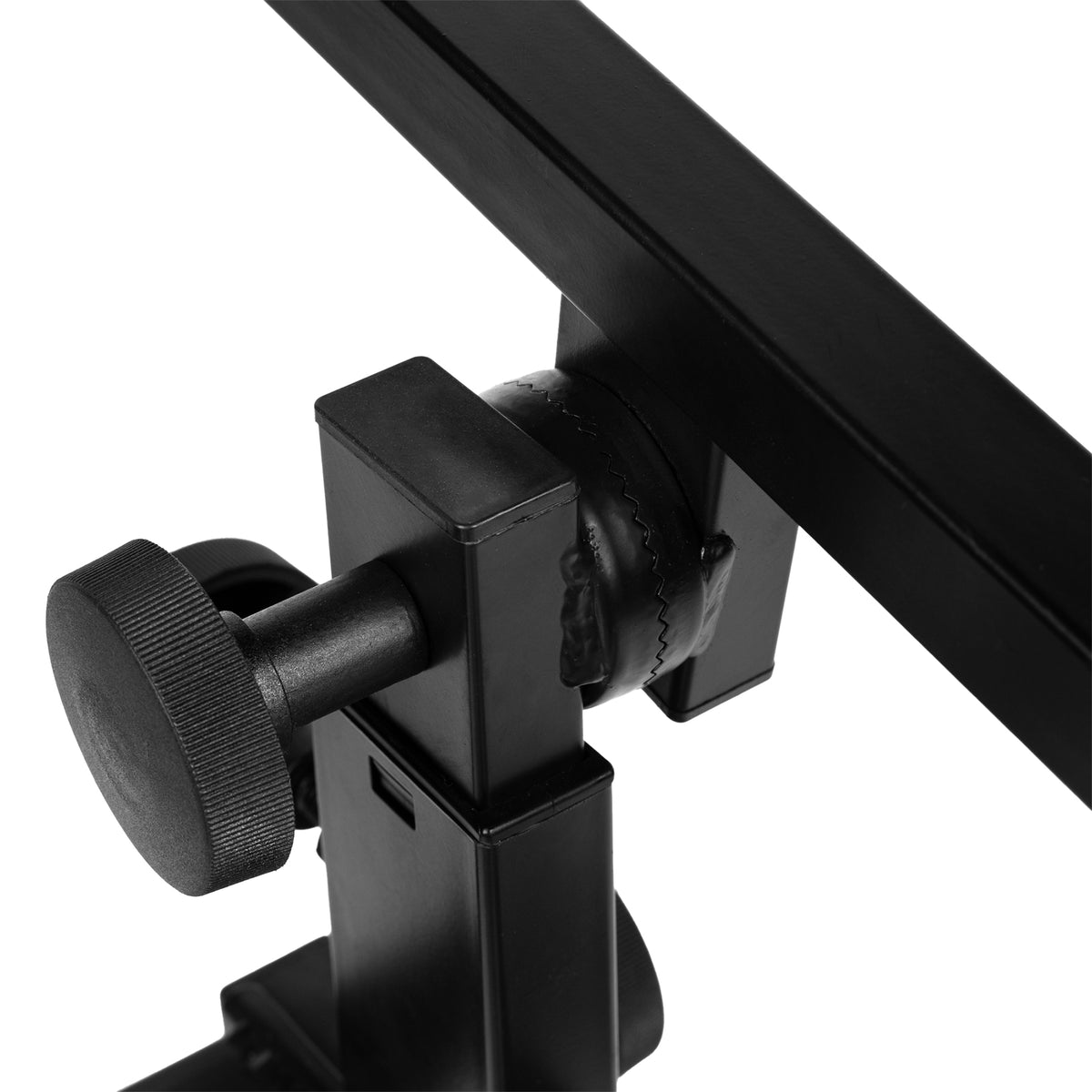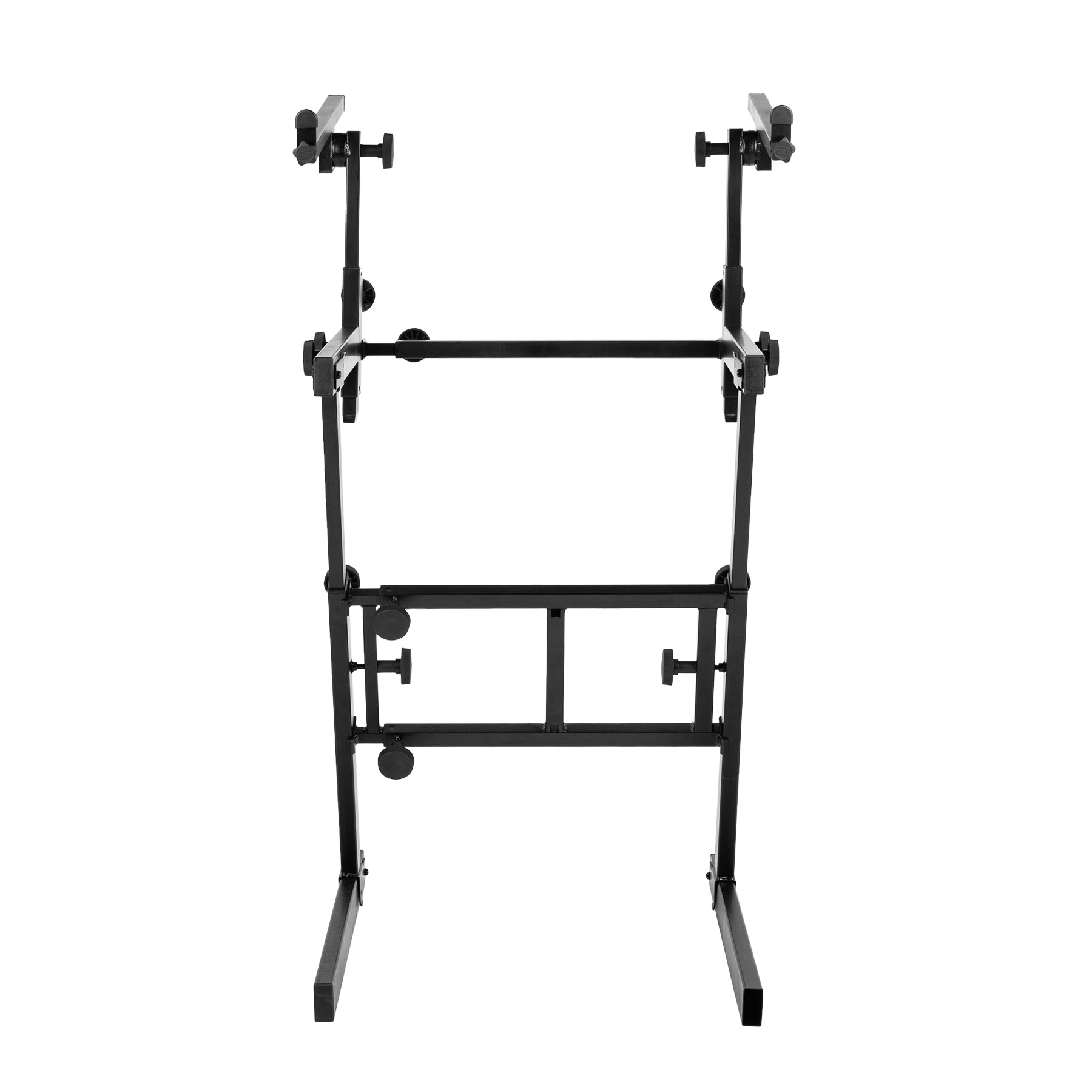 The Frameworks GFW-KEY-Z2000 Adjustable Z-Style Keyboard Stand with 2nd Tier is the ultimate 2-tier solution for musicians seeking a versatile and robust setup. This stand features height adjustability from 24” to 38” (61 - 96.5 cm), accommodating both seated and standing playing positions for maximum comfort. Its width adjusts from 20" to 35" (50.8 - 88.9 cm), making it compatible with most keyboards wider than 20” (50.8 cm). The second tier adds another layer of functionality, with a height adjustable from 7" to 12" (17.8 - 30.5 cm) above the lower tier, perfect for stacking multiple keyboards or other gear. EVA foam padding on all contact surfaces ensures your instruments are protected from scratches and stay securely in place. Constructed from black powder-coated square aluminum tubing, this stand is as durable as it is sleek, with the first tier supporting up to 375 lb (170 kg) and the second tier up to 60 lb (27.2 kg). Whether you're performing live or setting up in the studio, the GFW-KEY-Z2000 delivers reliable stability and customizable versatility to meet your needs..