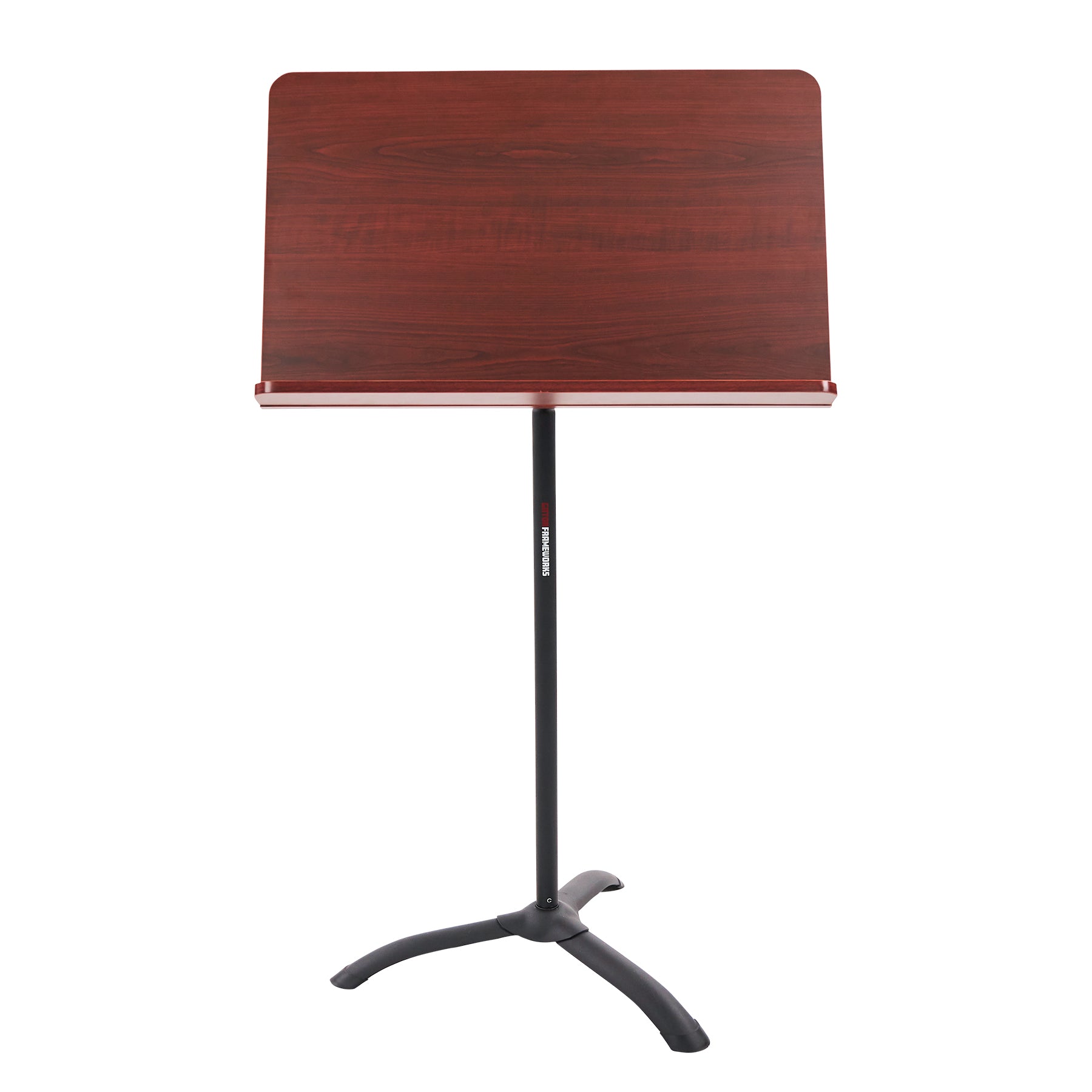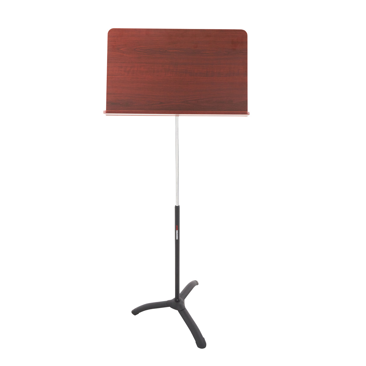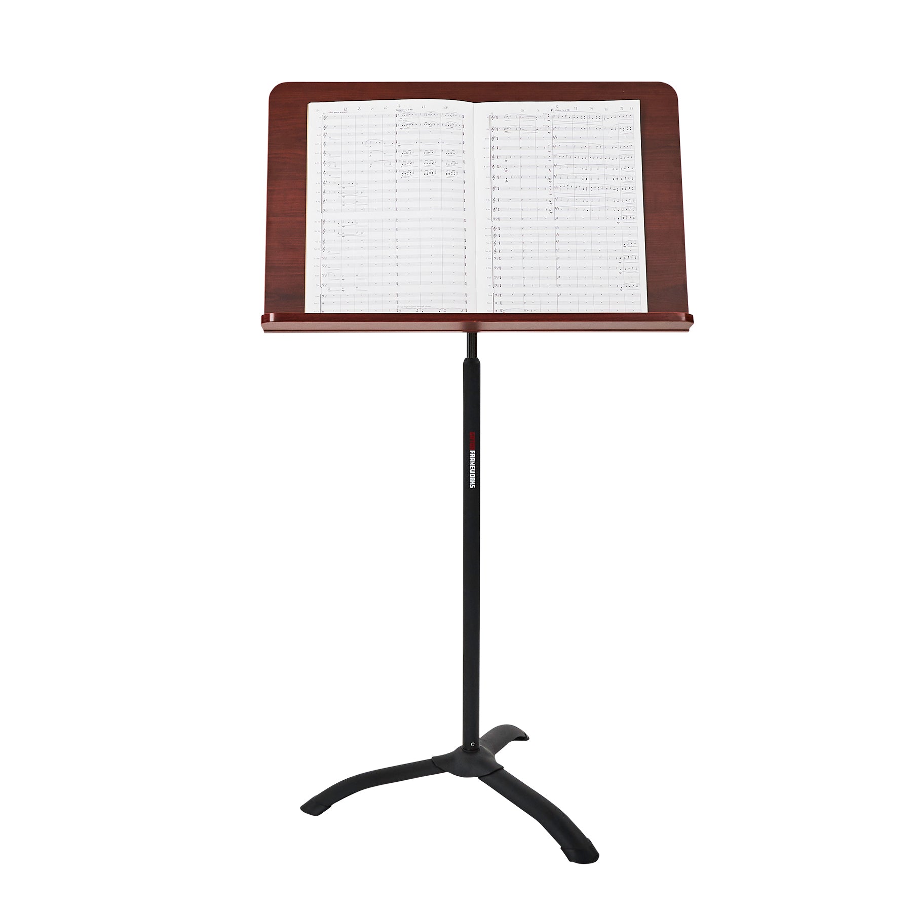 Meeting both elegance and superior functionality, the Frameworks Wood Conductor Music Stand with Tripod Base sets the standard for both recitals and concert halls. Featuring a beautiful red wood finish, this stand stands out on the stage, while maintaining a professional and classic look. The oversized bookplate provides ample room for both scores and recital sheet music, helping to reduce page turns. The collapsible tripod base offers a convenient and lightweight solution for quickly and effortlessly moving your stand from the practice room to performance hall. This wooden conductor music stand is a must for every ensemble director and solo performer..